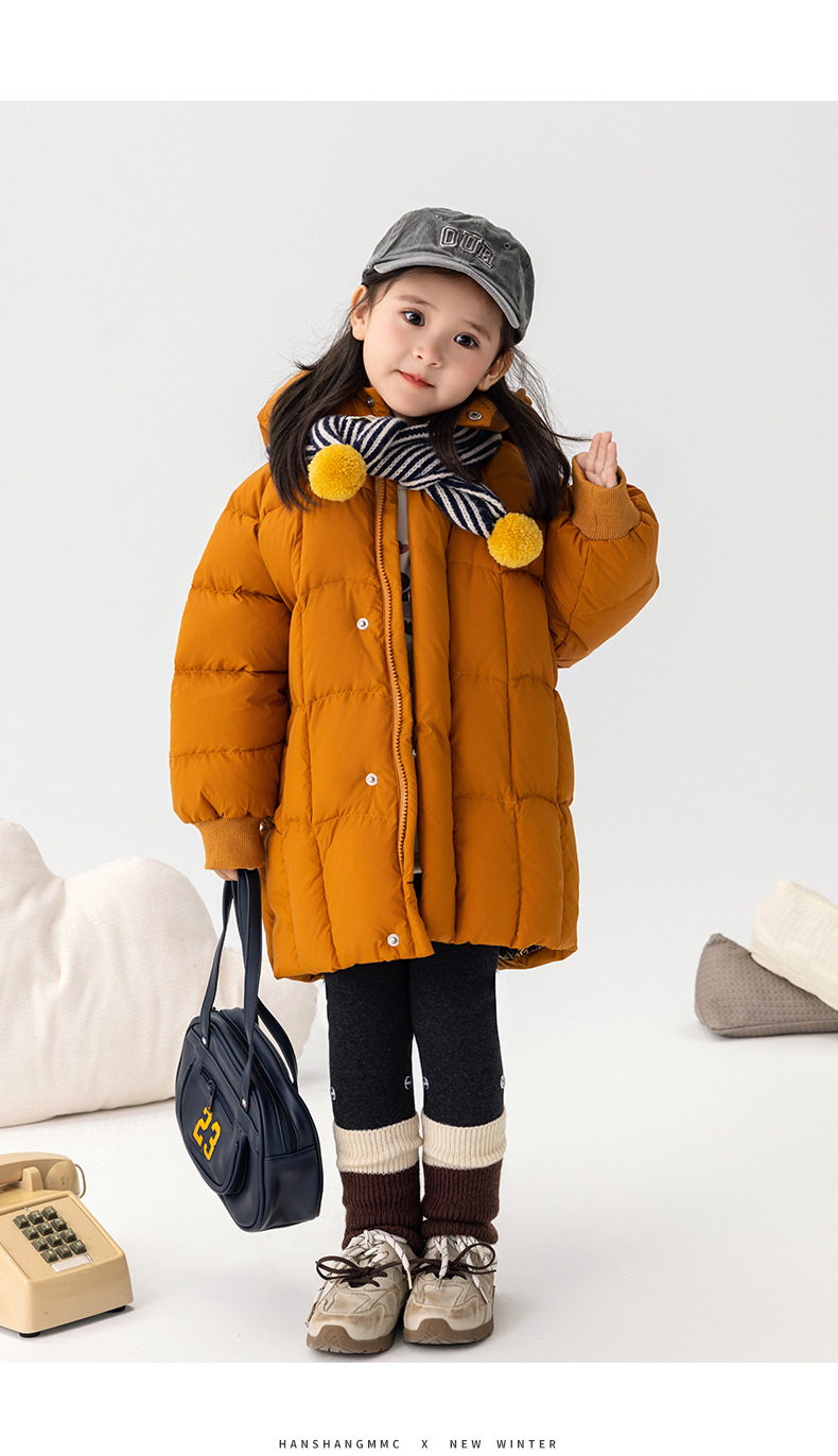 【现货】儿童羽绒服2025冬新款女童加厚保暖衣服白鸭绒中长款外套