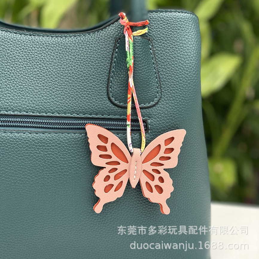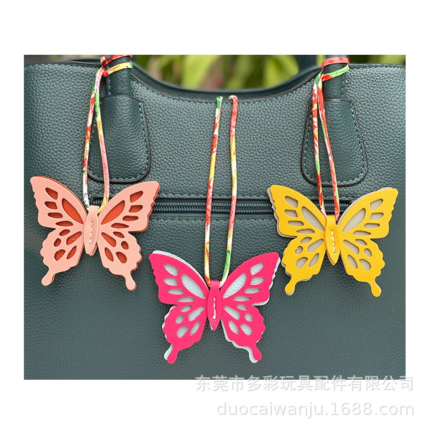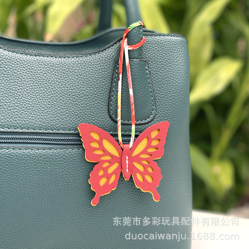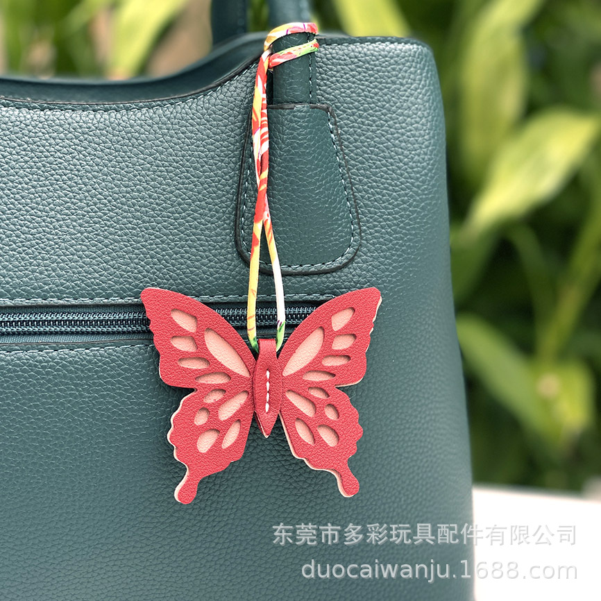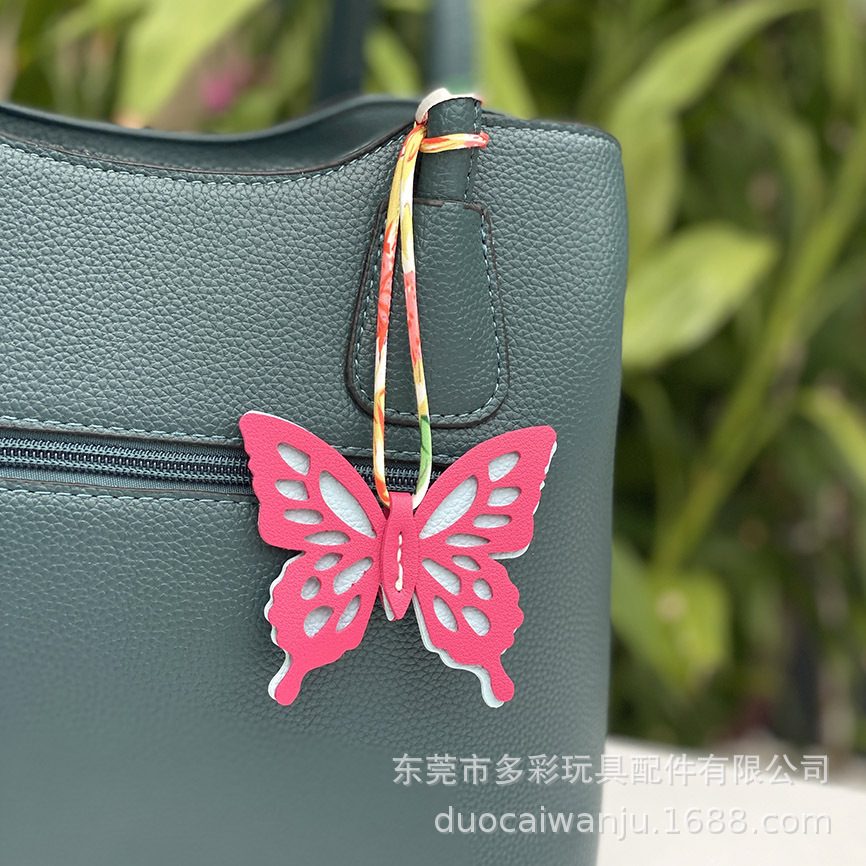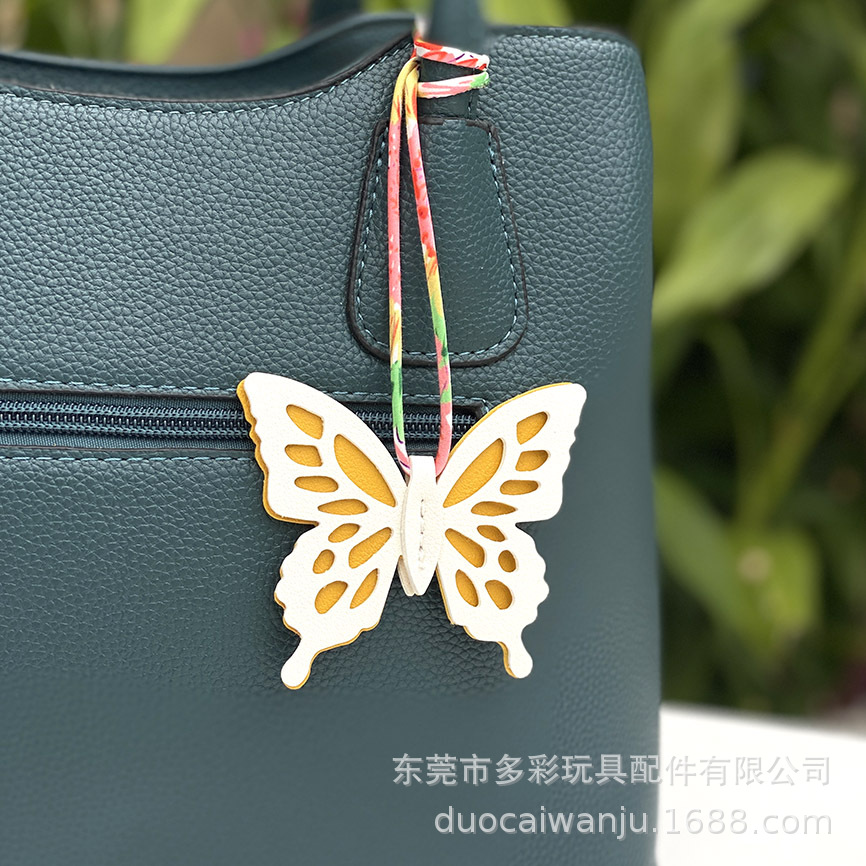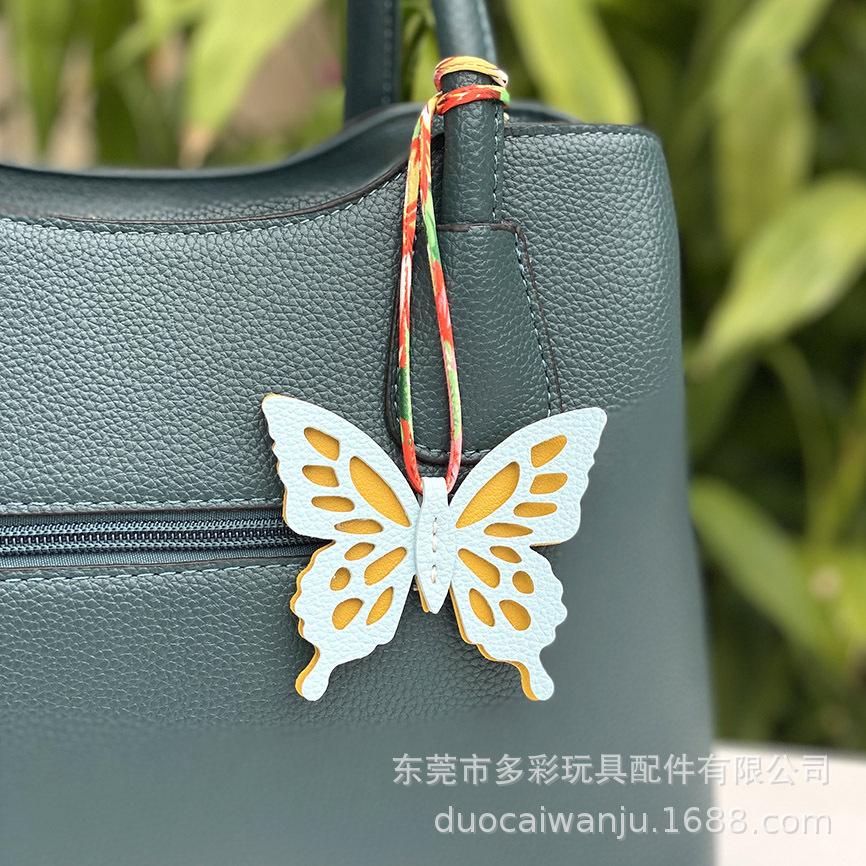 新款蝴蝶包包吊饰创意五彩蝴蝶皮绳挂饰棉绳个性动物拼色皮革挂件