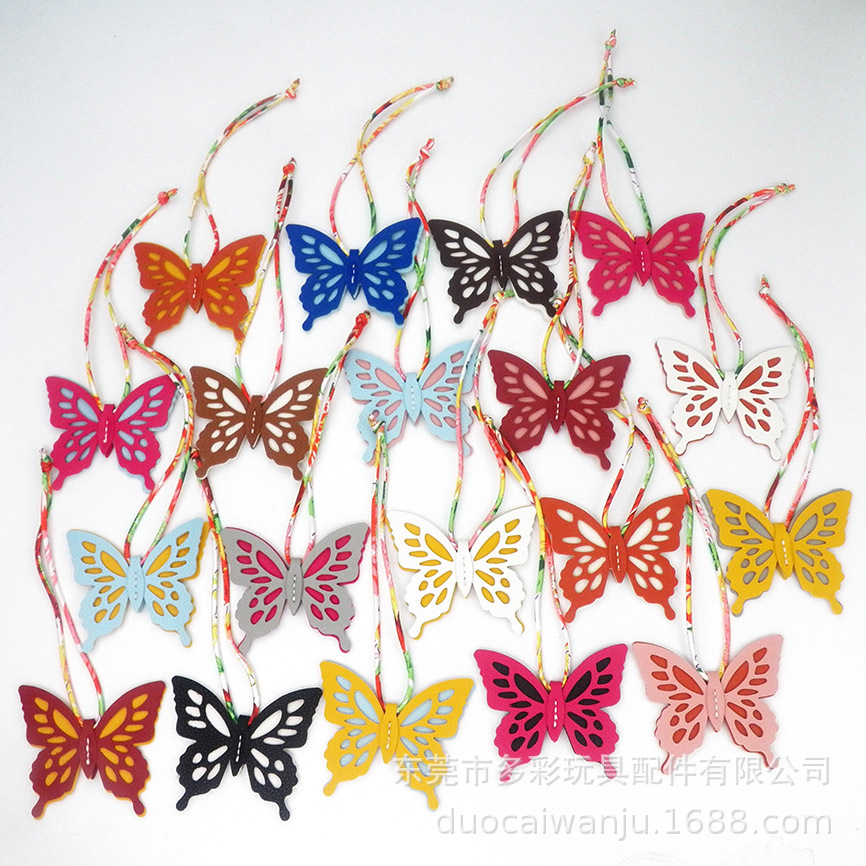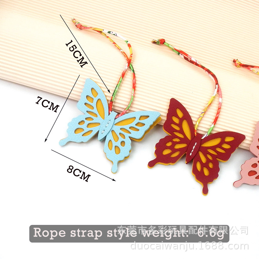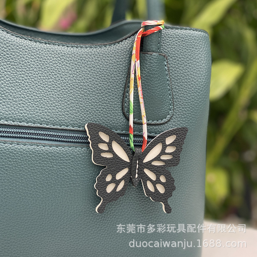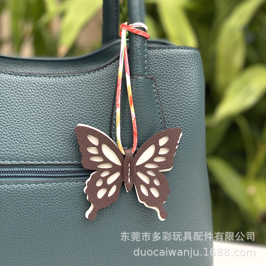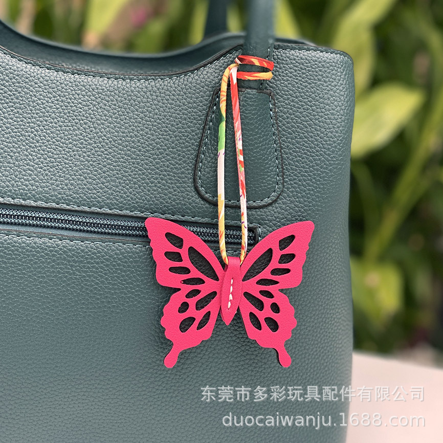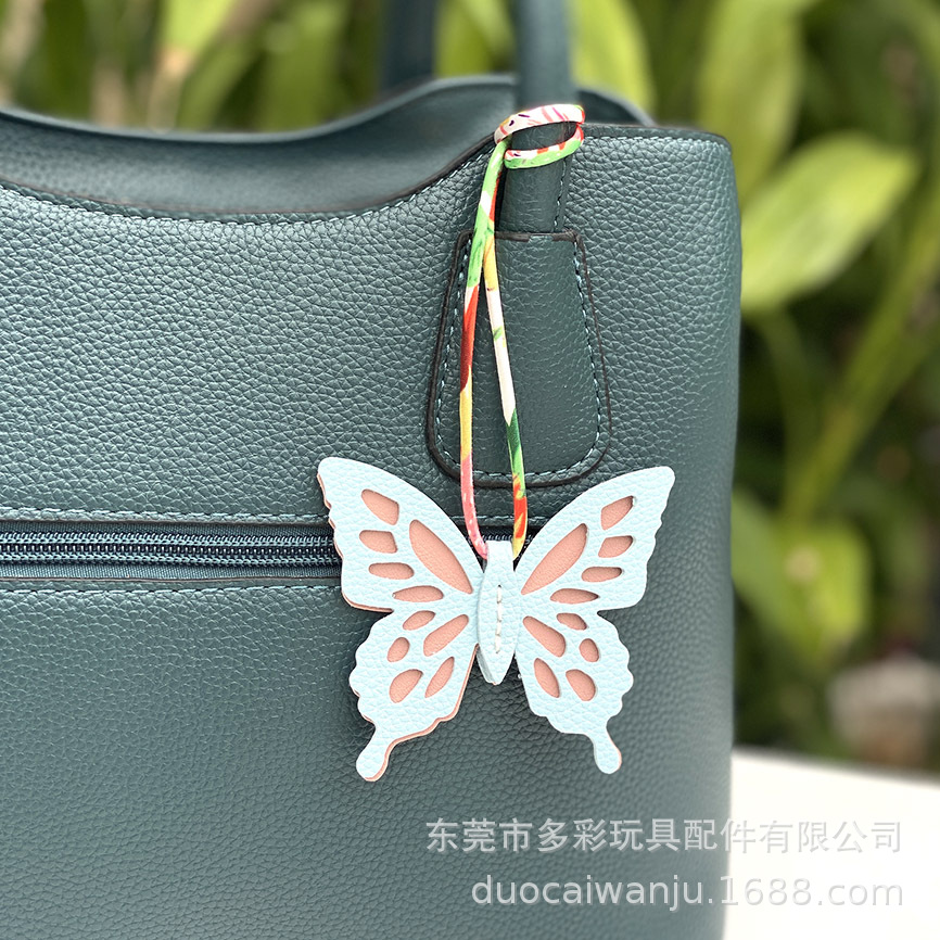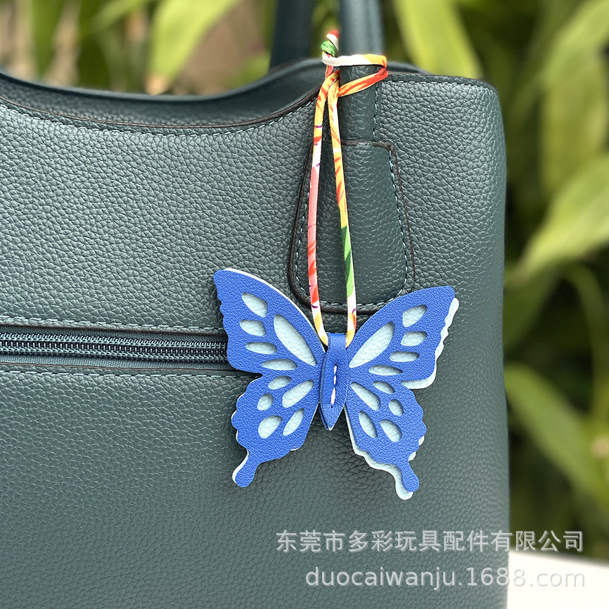 新款蝴蝶包包吊饰创意五彩蝴蝶皮绳挂饰棉绳个性动物拼色皮革挂件
