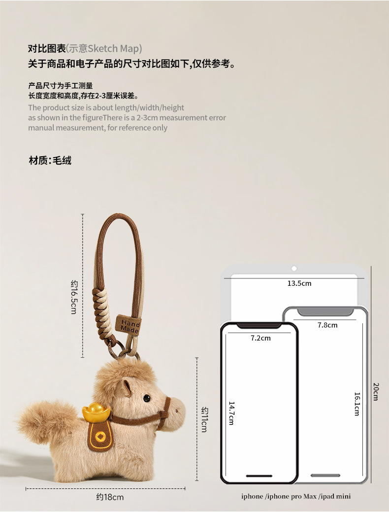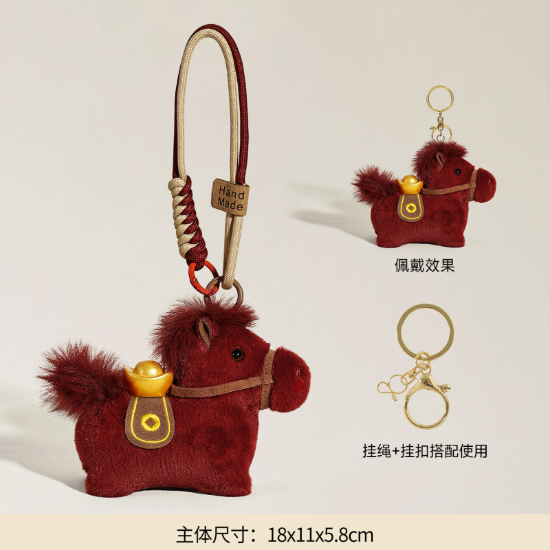 2026马年系列吉祥物毛绒皮质挂件钥匙扣可爱卡通新年送人礼物批发