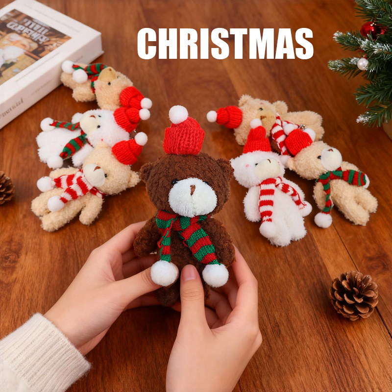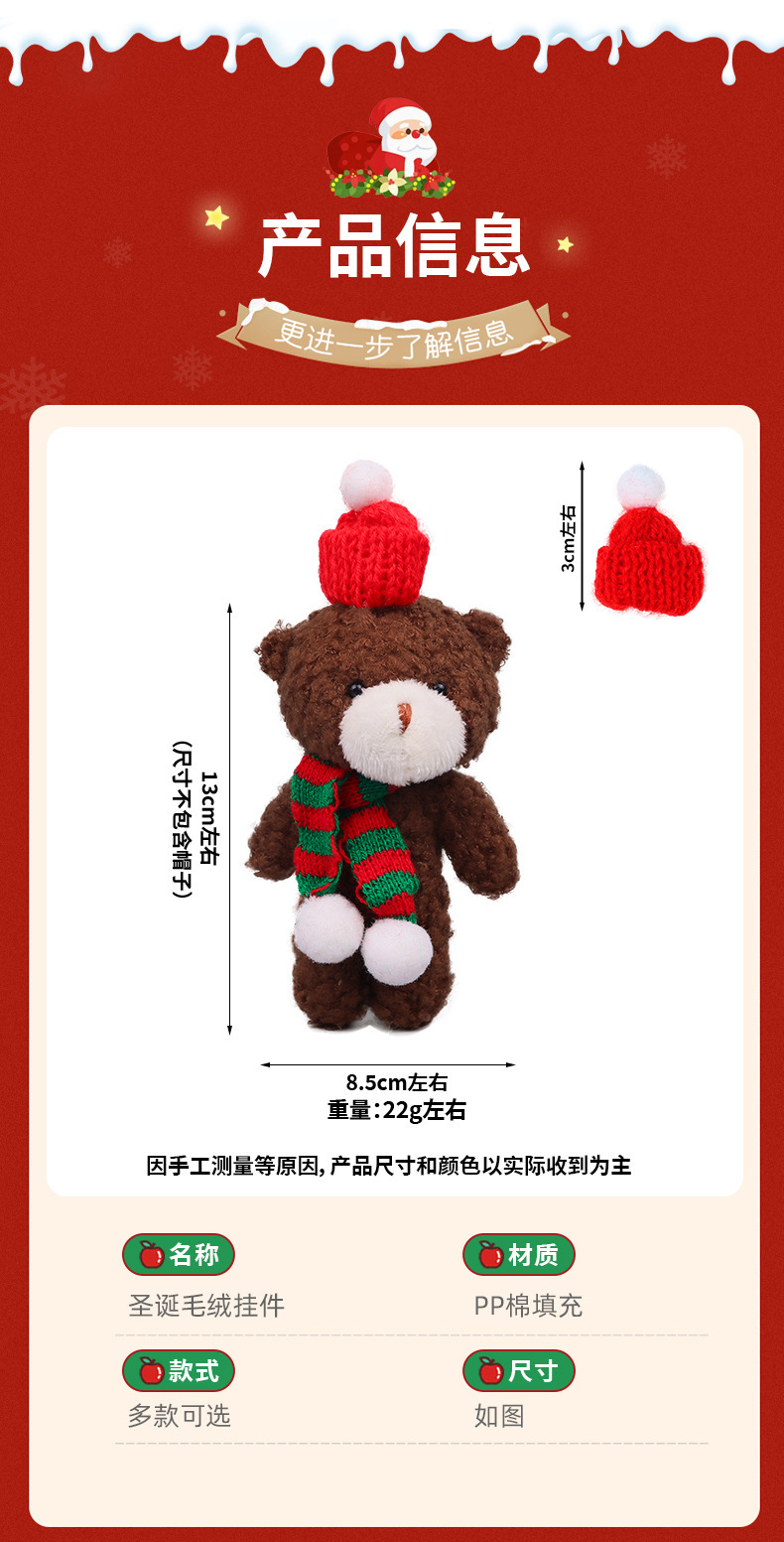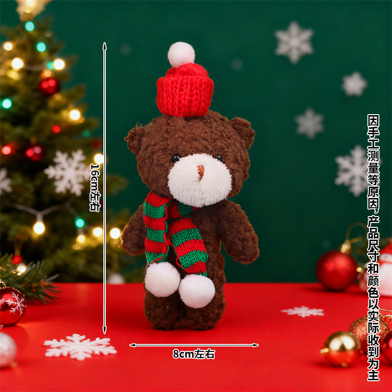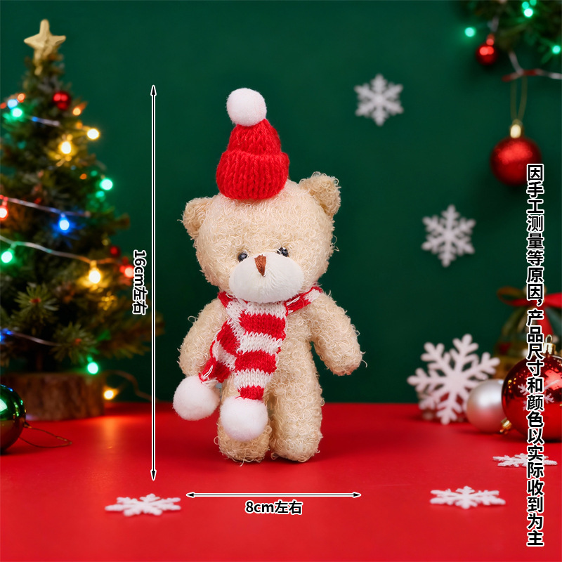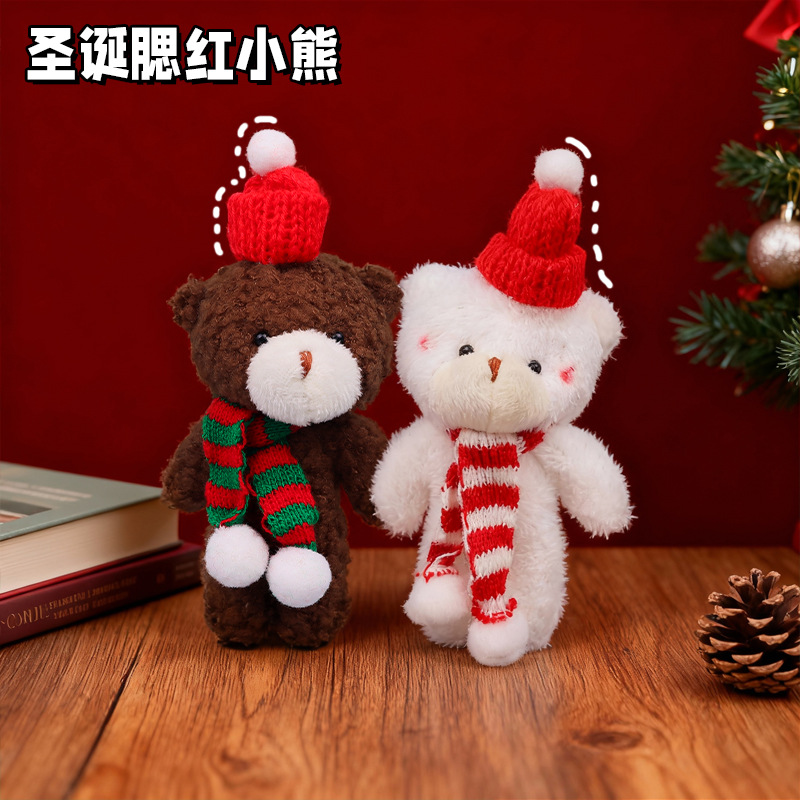 可爱圣诞节泰迪腮红小熊毛绒玩偶连体熊背包挂件钥匙扣节日小礼物