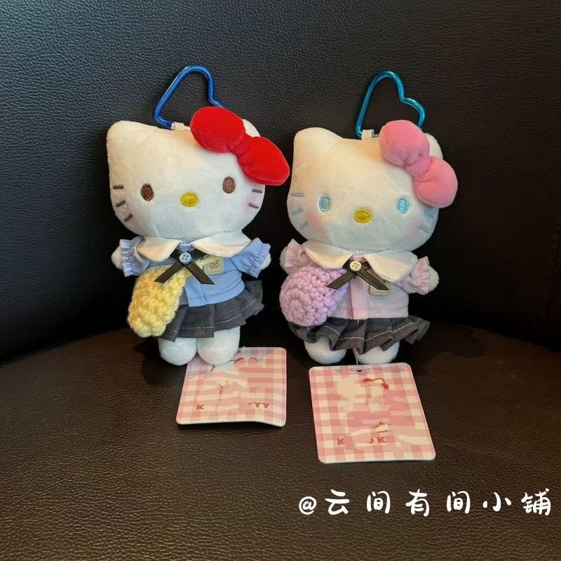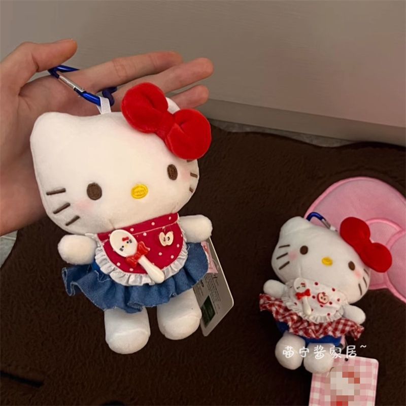 可爱苹果围兜kt猫ins风包包挂件毛绒公仔玩偶少女礼物挂饰钥匙扣