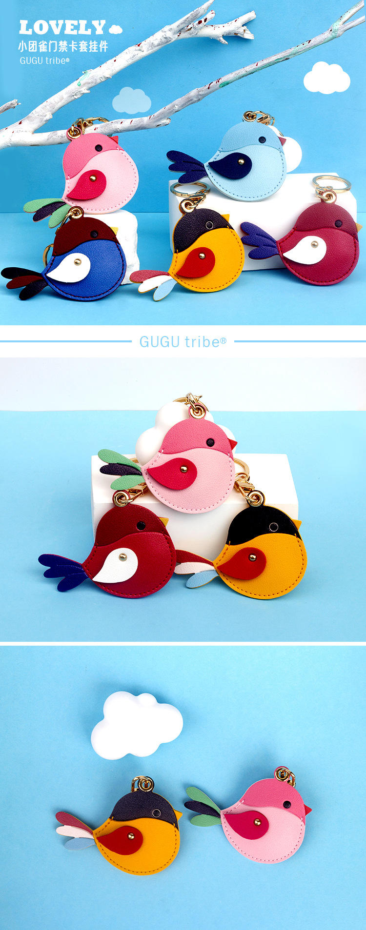 原创团雀可爱门禁卡套钥匙扣皮革挂件创意小礼物书包挂件礼品批发