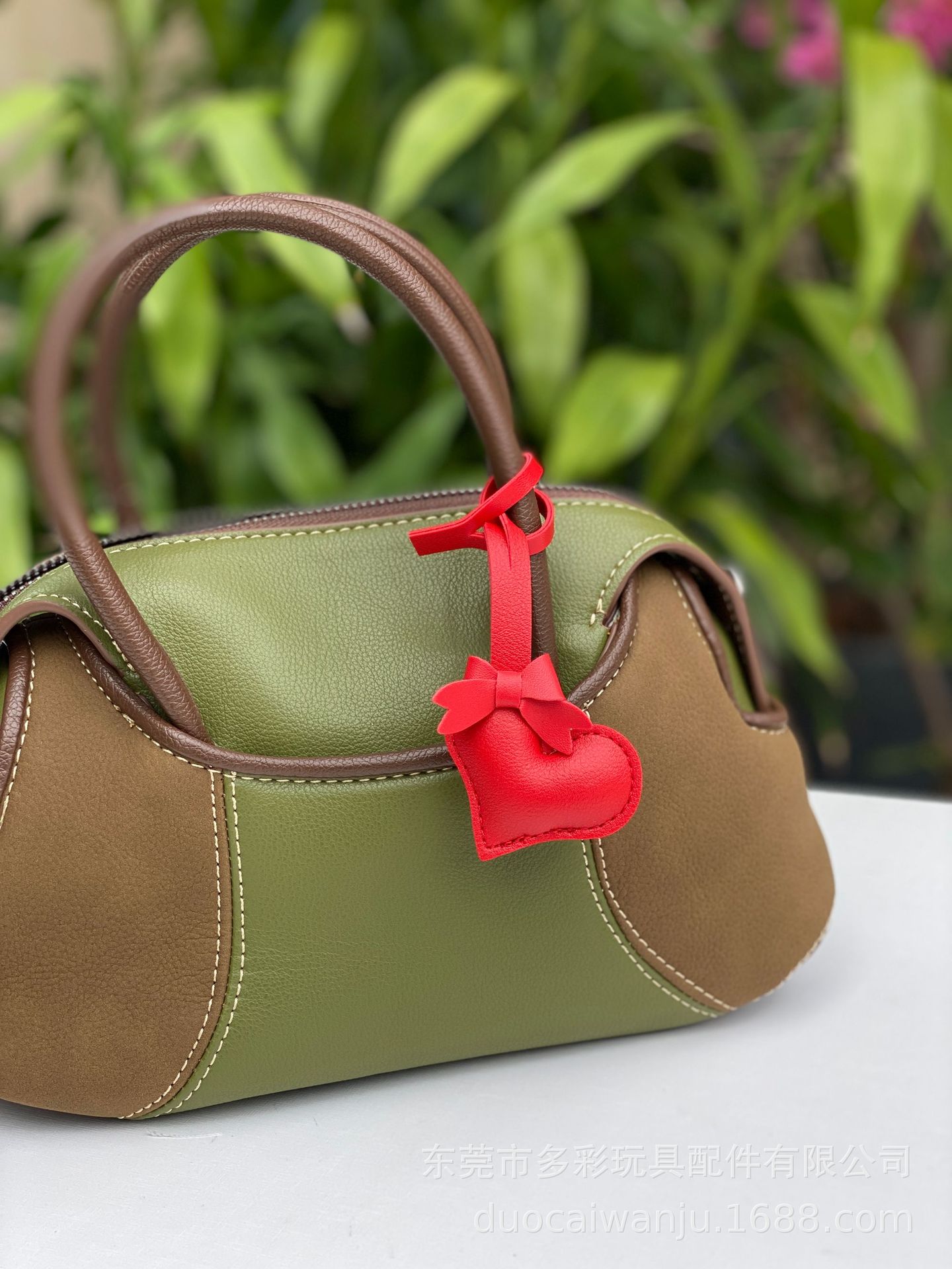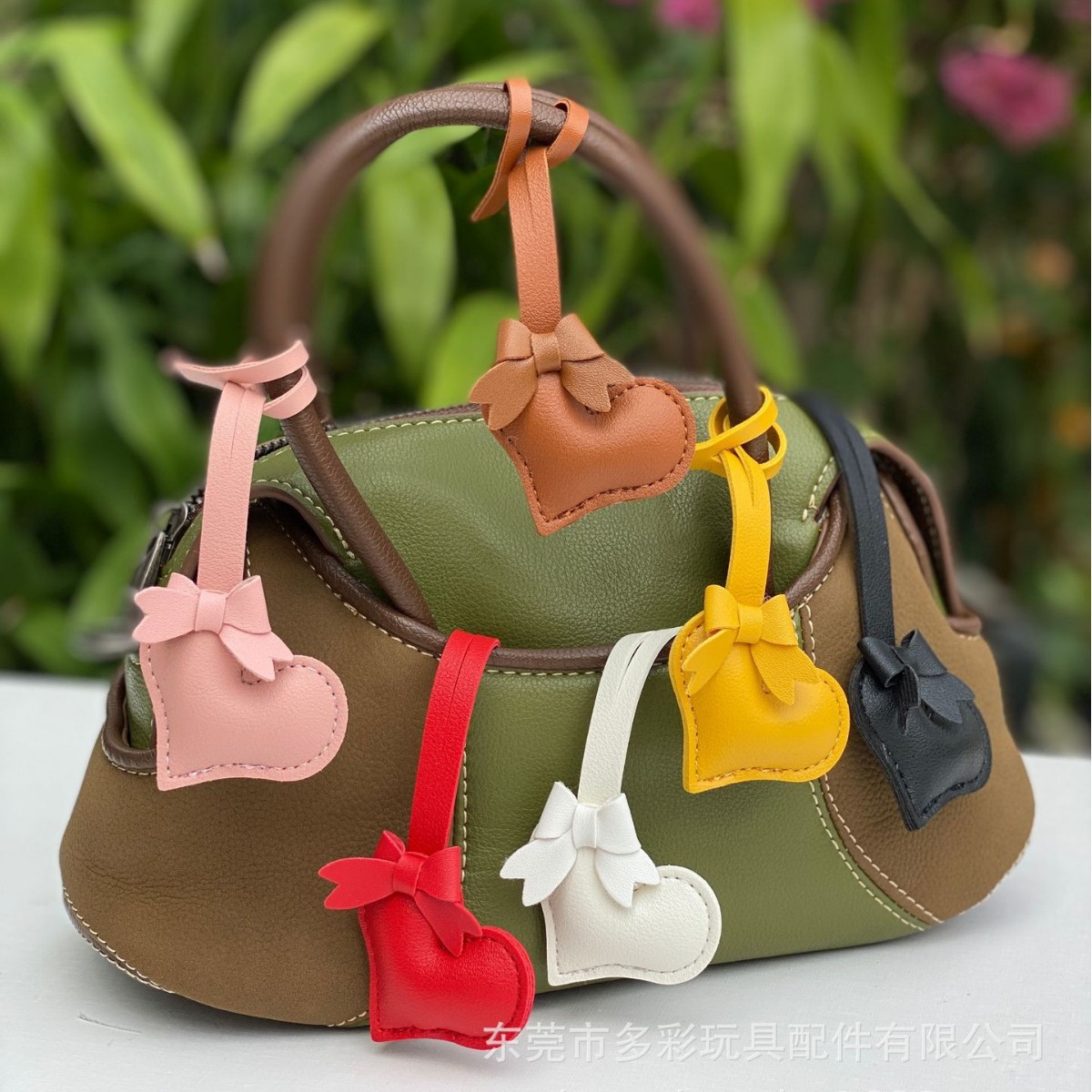 新款纯色爱心蝴蝶结包包挂件可爱桃心钥匙扣吊饰百搭心形皮革挂件