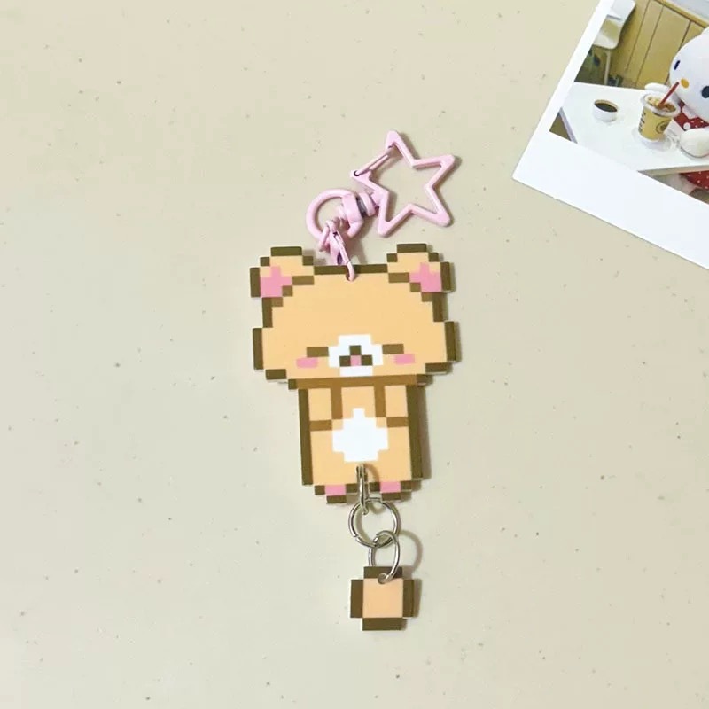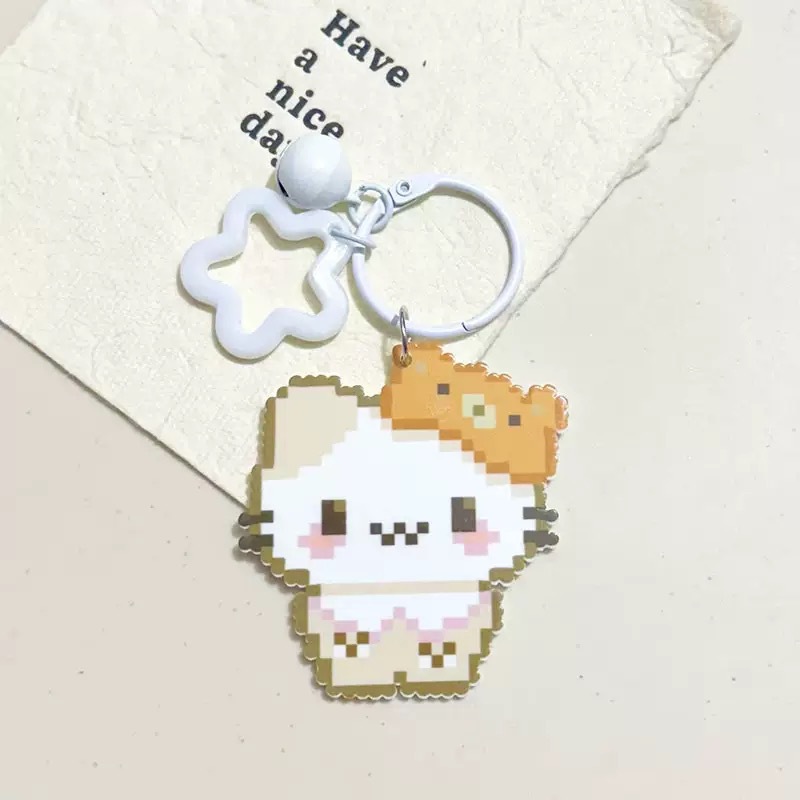 小猫像素卡通钥匙扣书包萌物可爱学生亚克力挂饰包包闺蜜挂件礼物