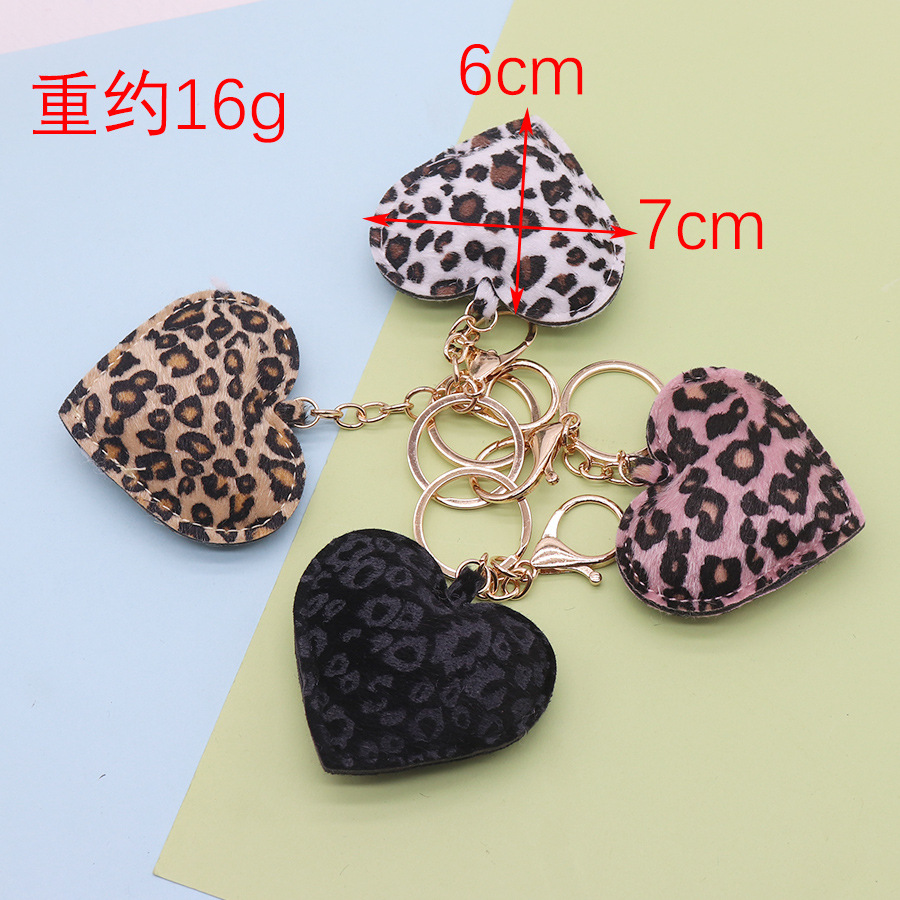 跨境欧美新款情侣PU豹纹爱心钥匙扣桃心车载挂件包包挂件配饰批发