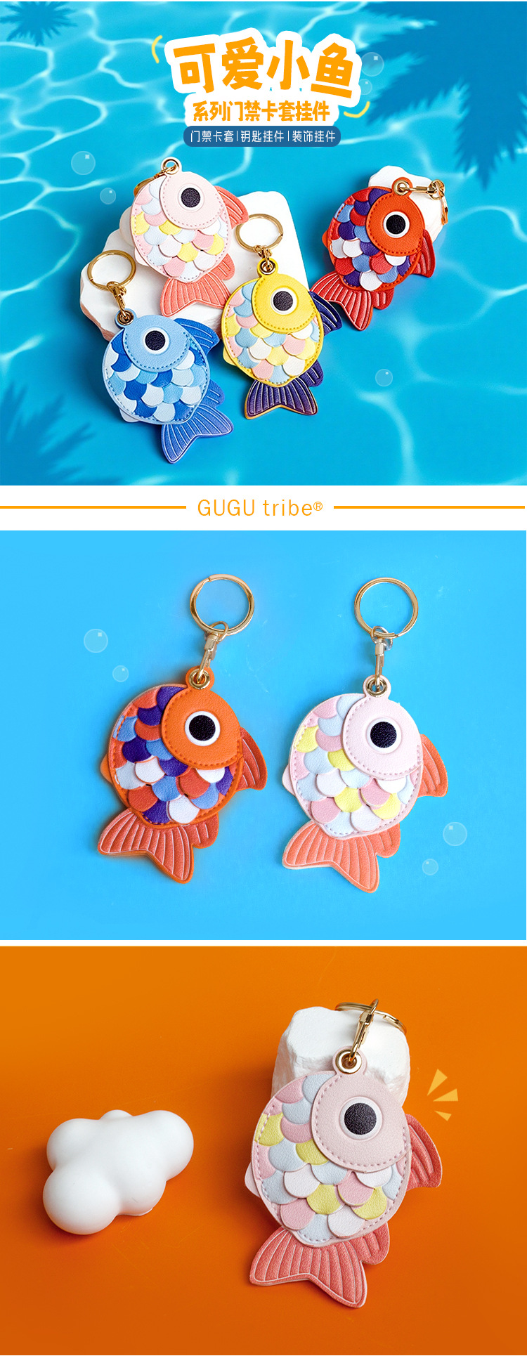 原创小鱼可爱门禁卡套钥匙扣创意小礼物挂件书包配件礼品批发