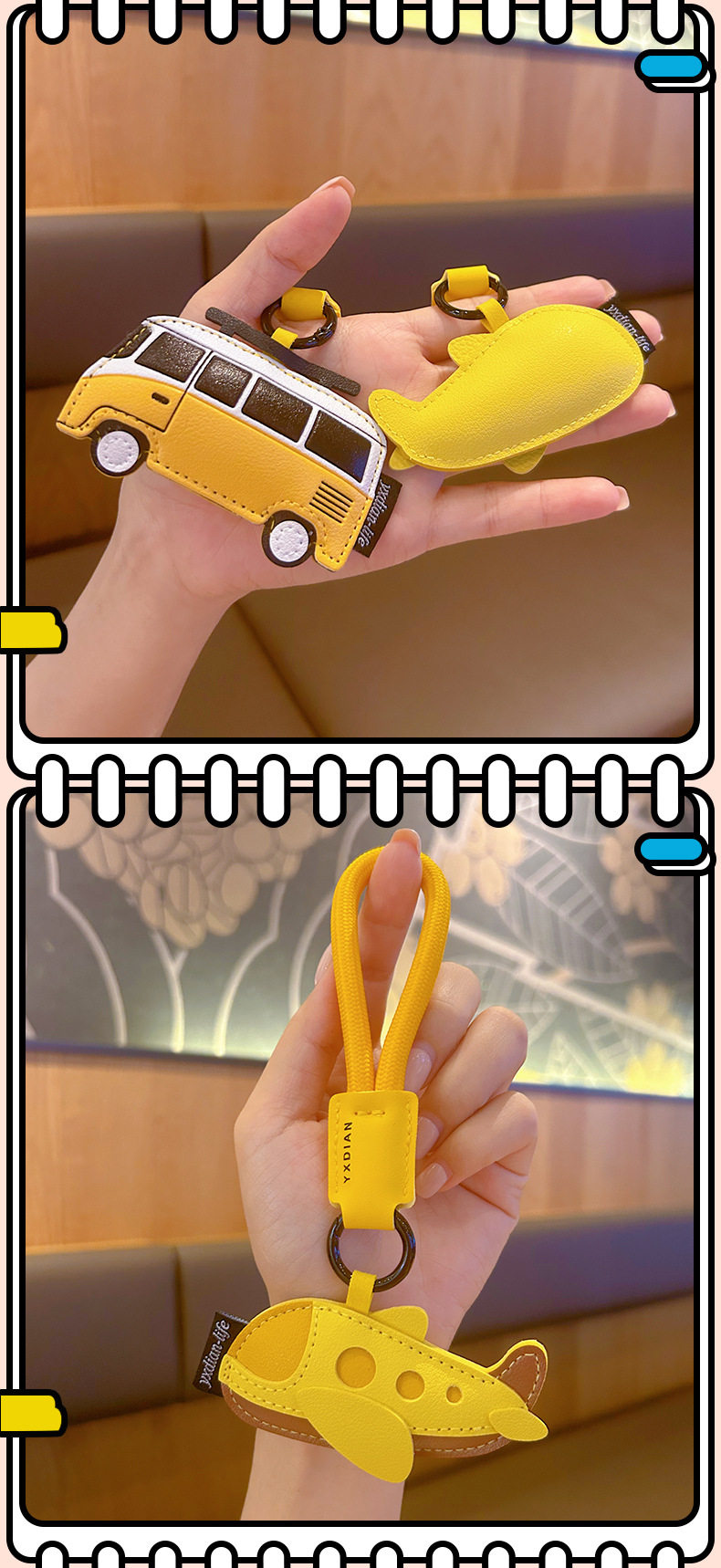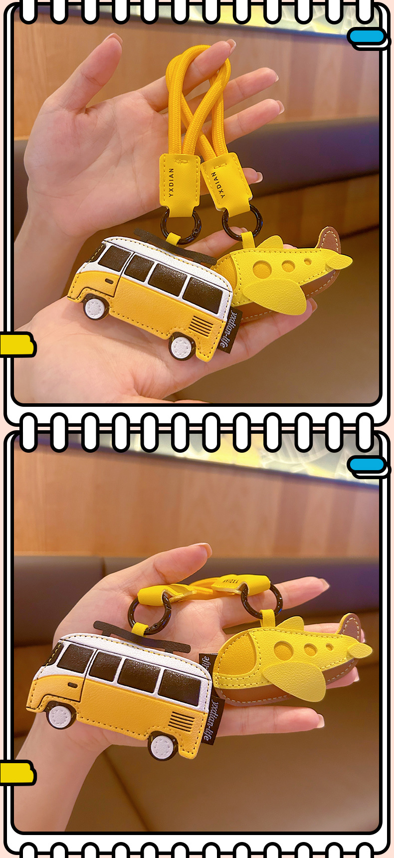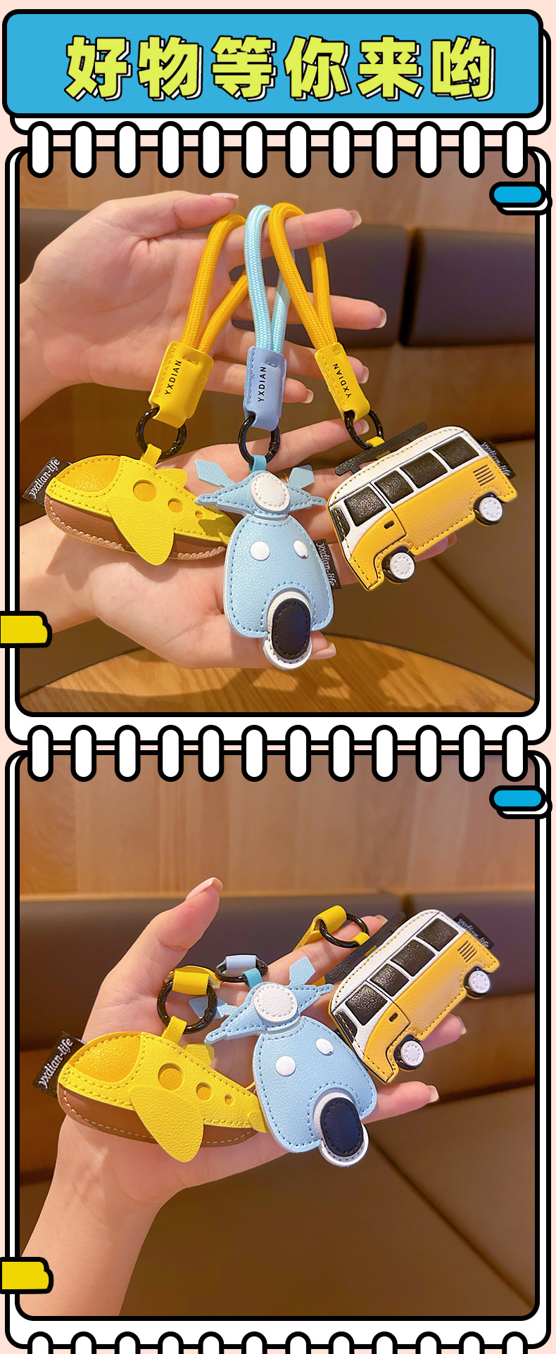 创意皮革钥匙扣交通工具挂件交通卡通飞机巴士皮质包包挂件小礼物