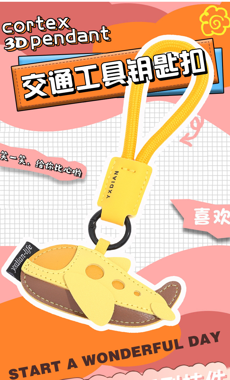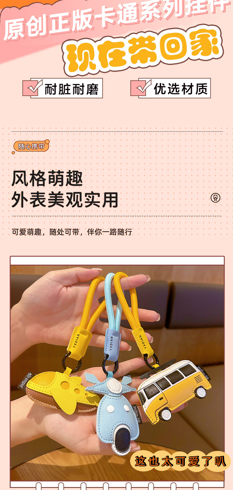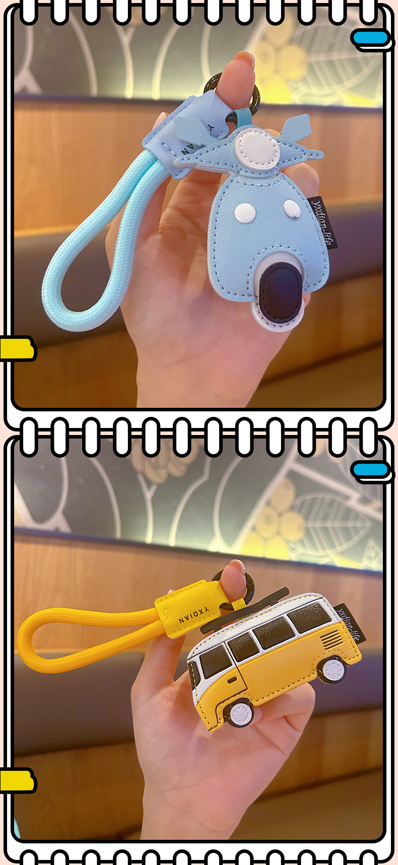 创意皮革钥匙扣交通工具挂件交通卡通飞机巴士皮质包包挂件小礼物