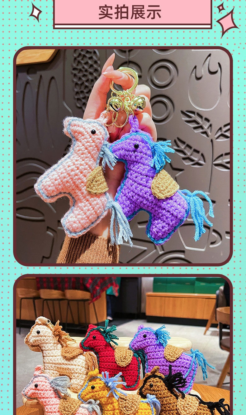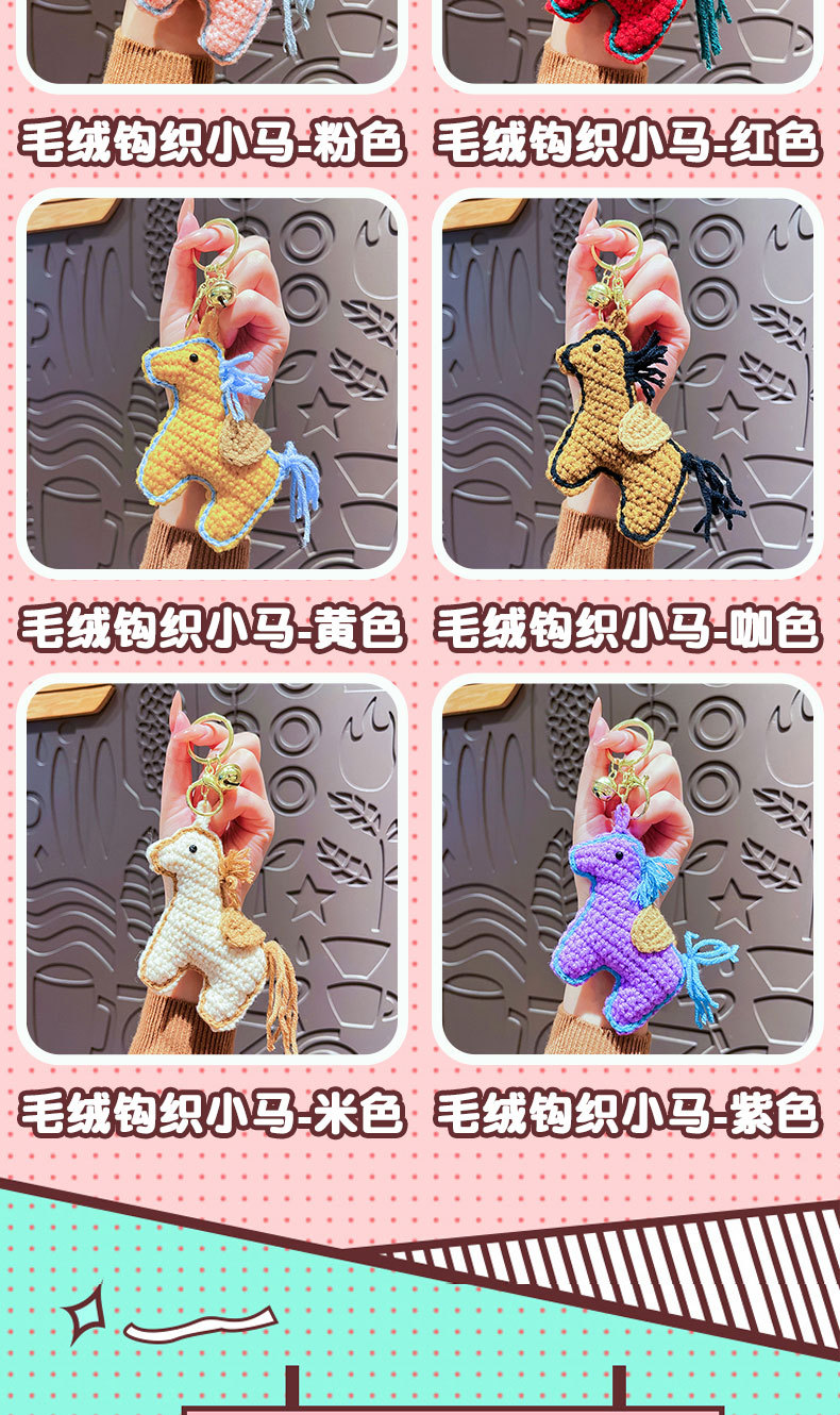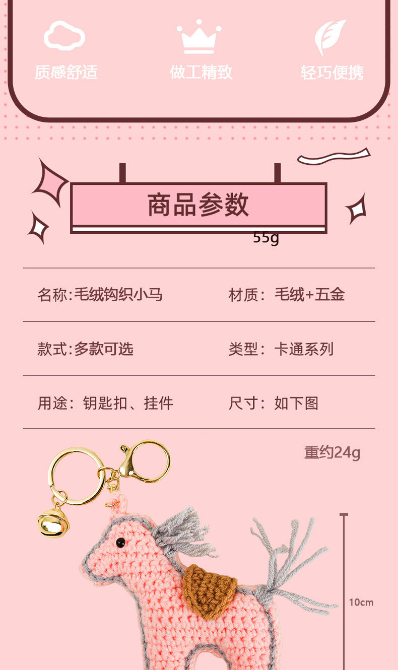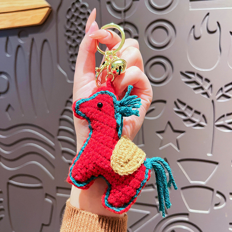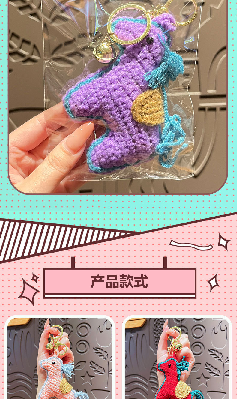 原创毛绒钩织小马钥匙扣女可爱卡通马年吉祥物包包挂件新年小礼品