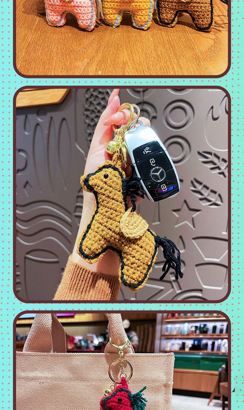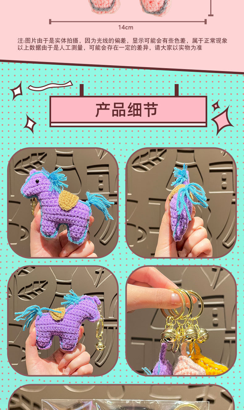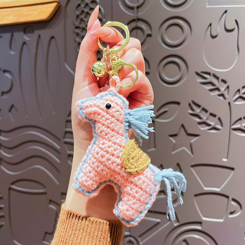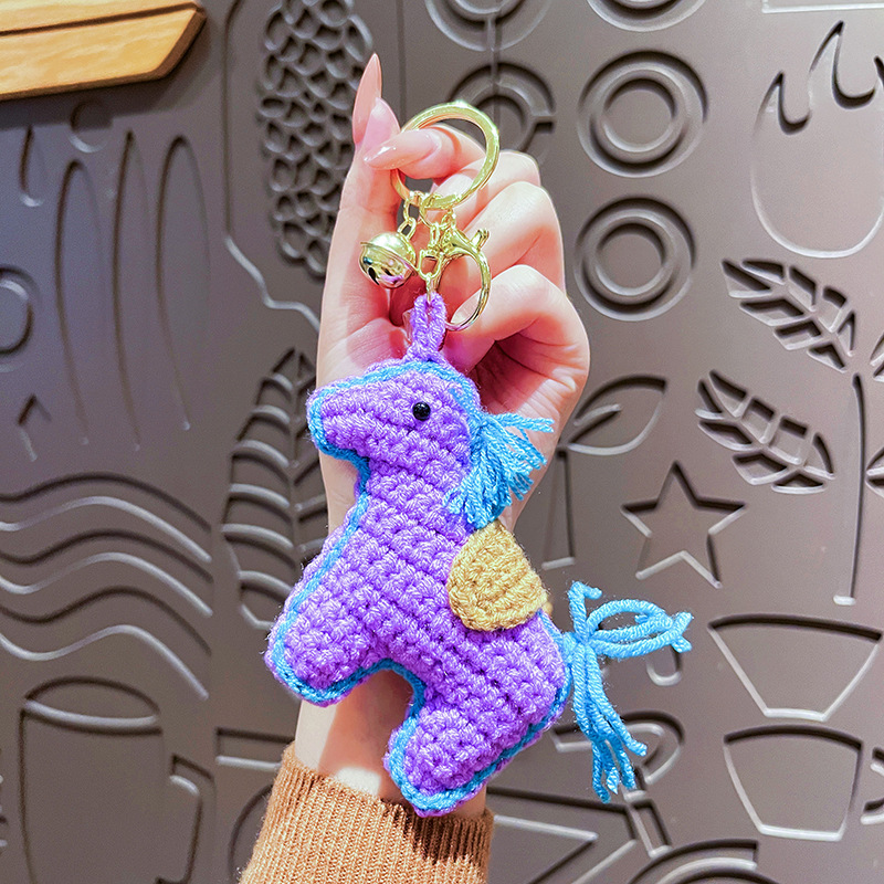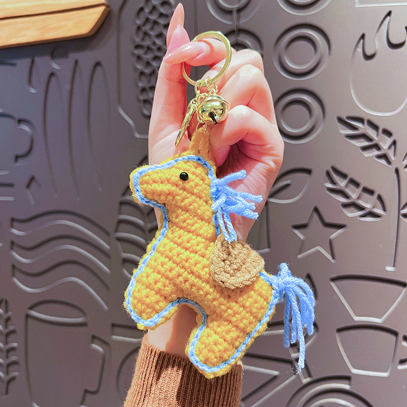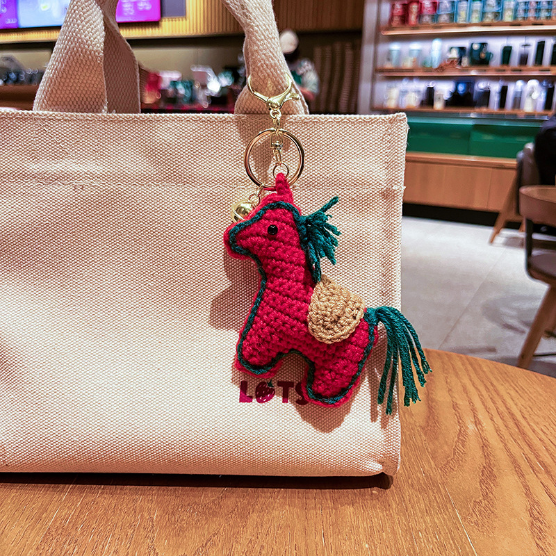 原创毛绒钩织小马钥匙扣女可爱卡通马年吉祥物包包挂件新年小礼品