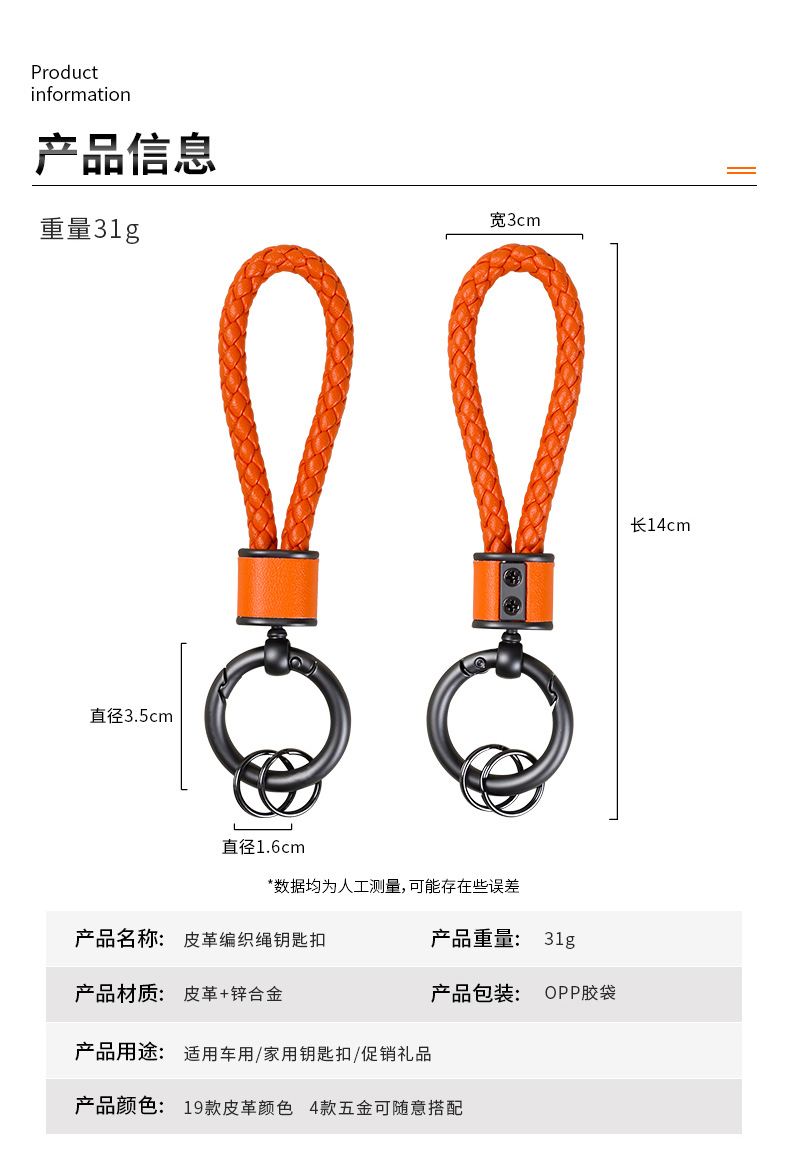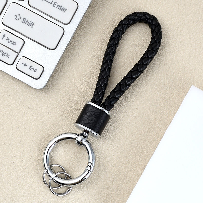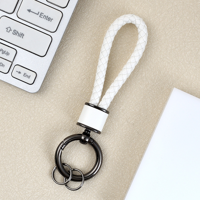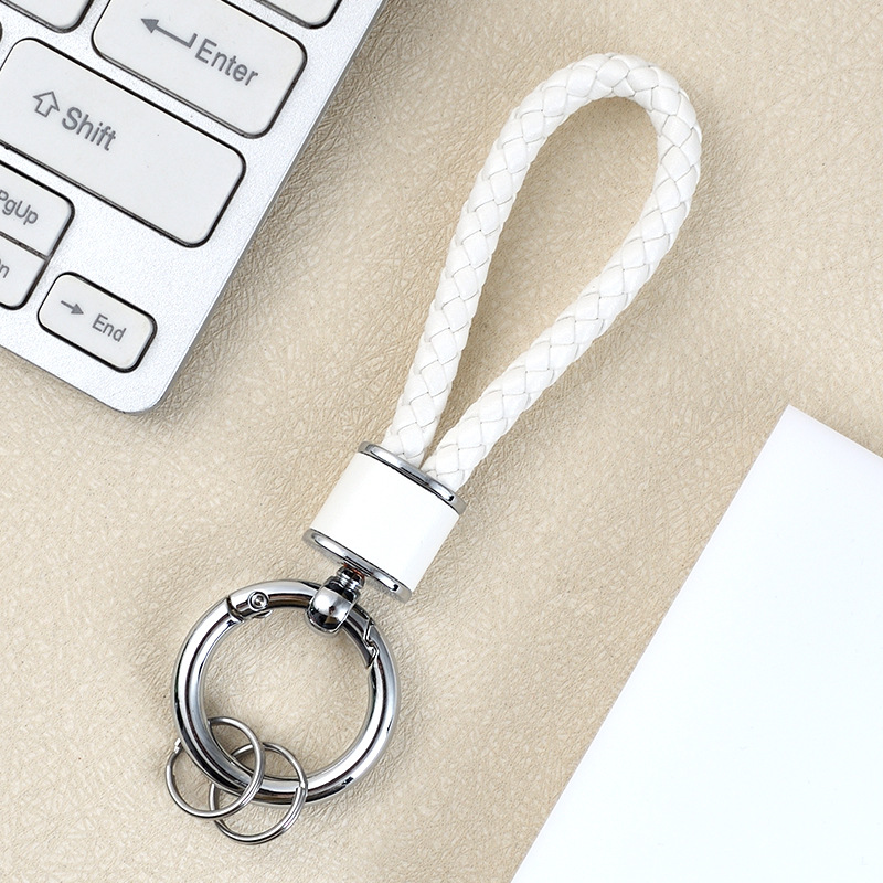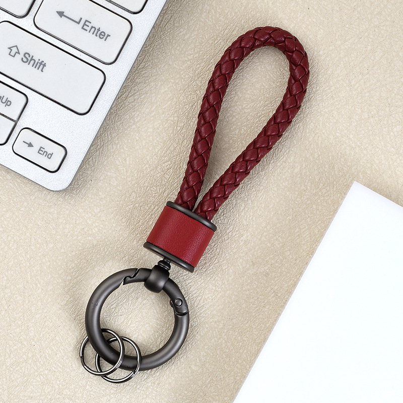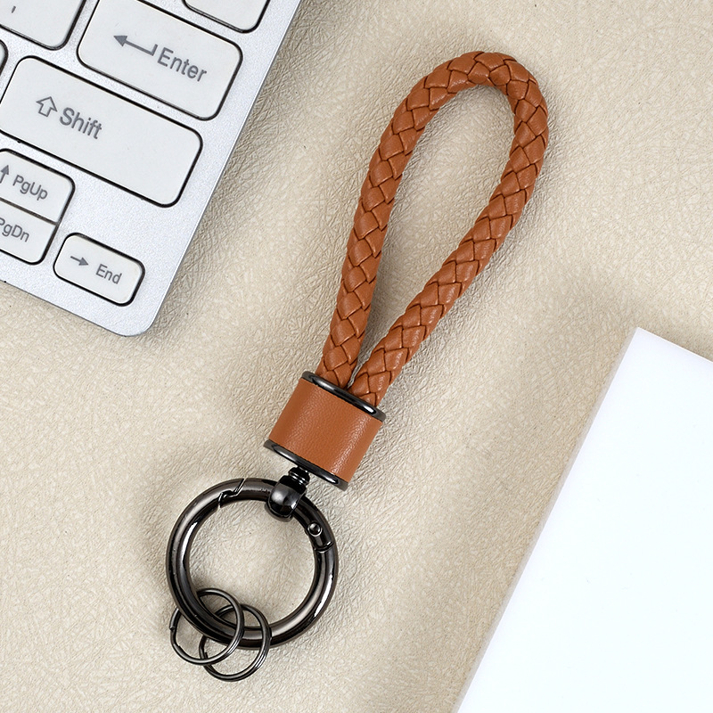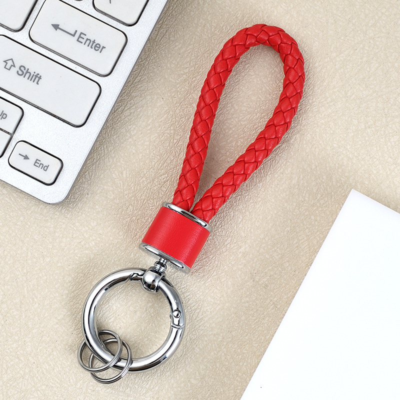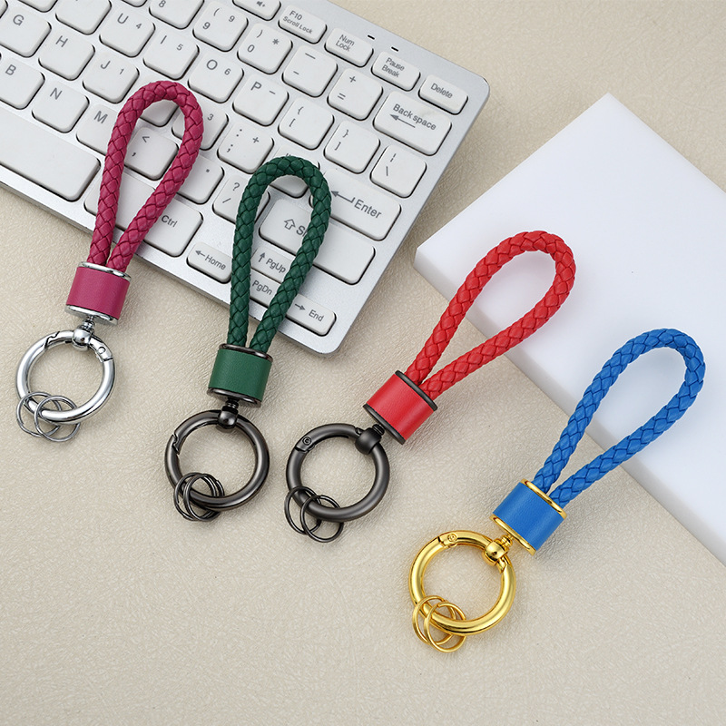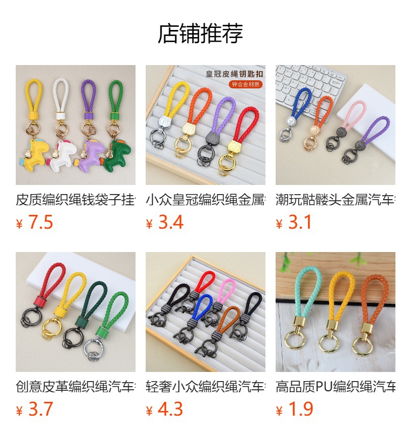 创意手工皮革编织绳汽车钥匙扣情侣包包挂件多功能电动车钥匙链圈