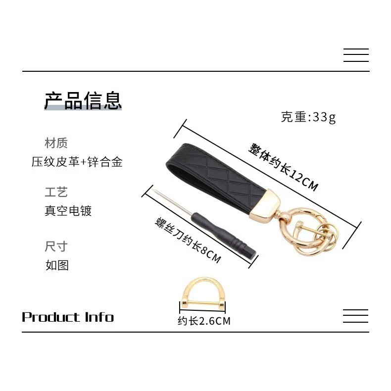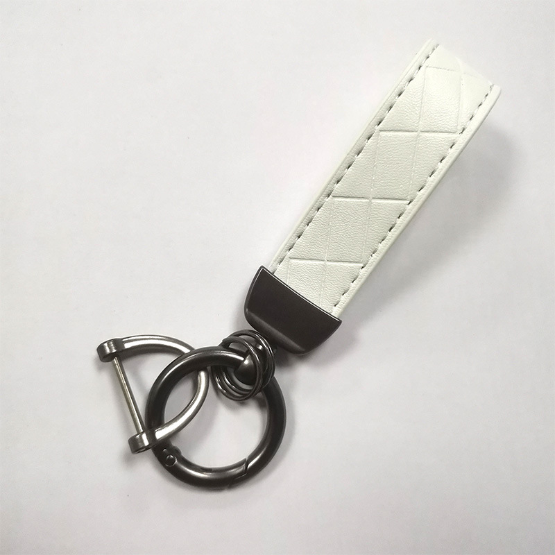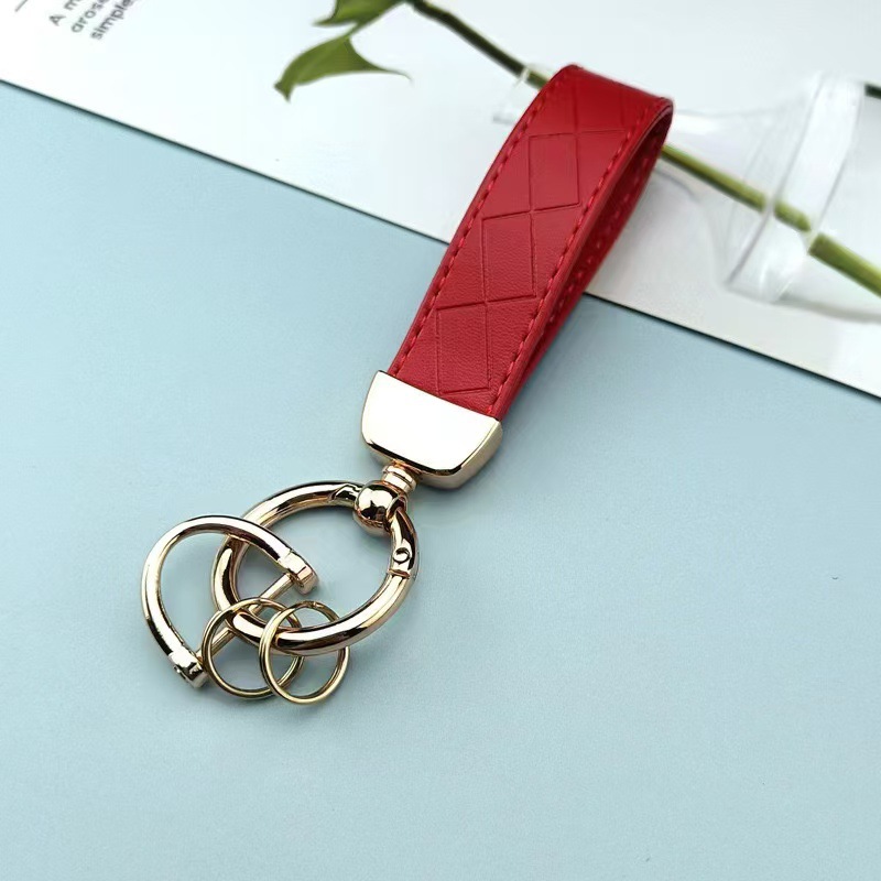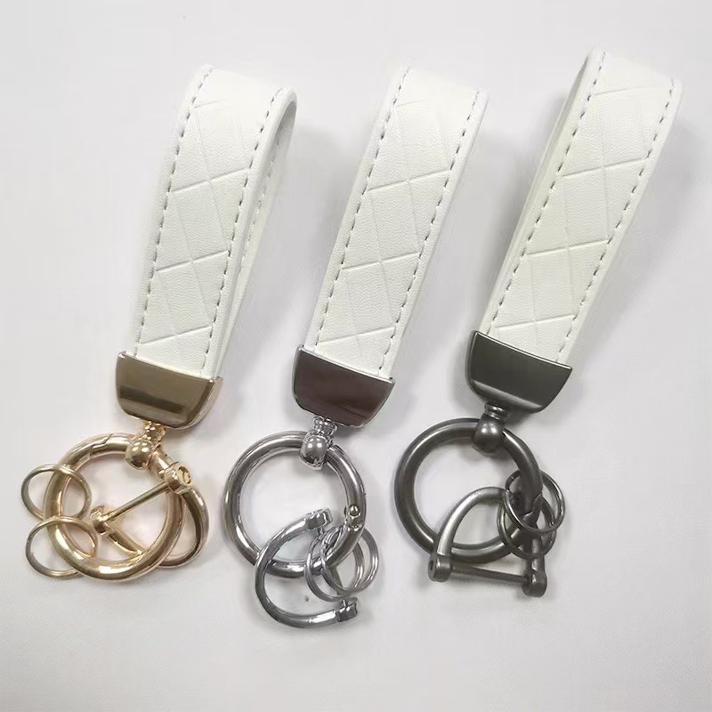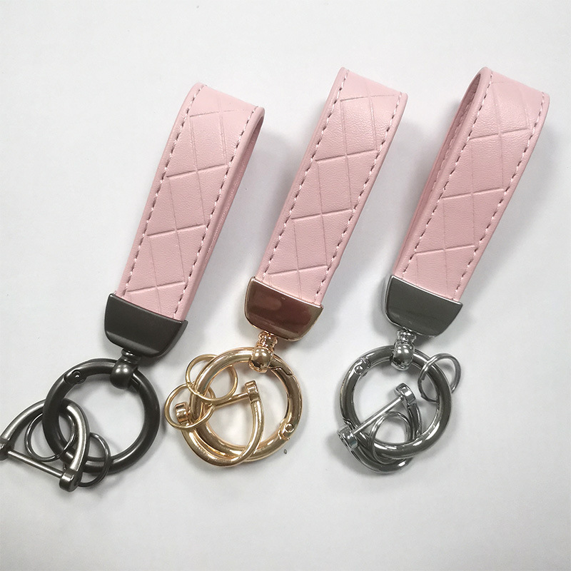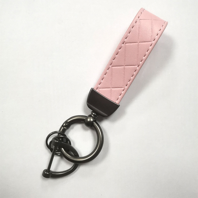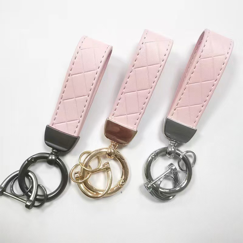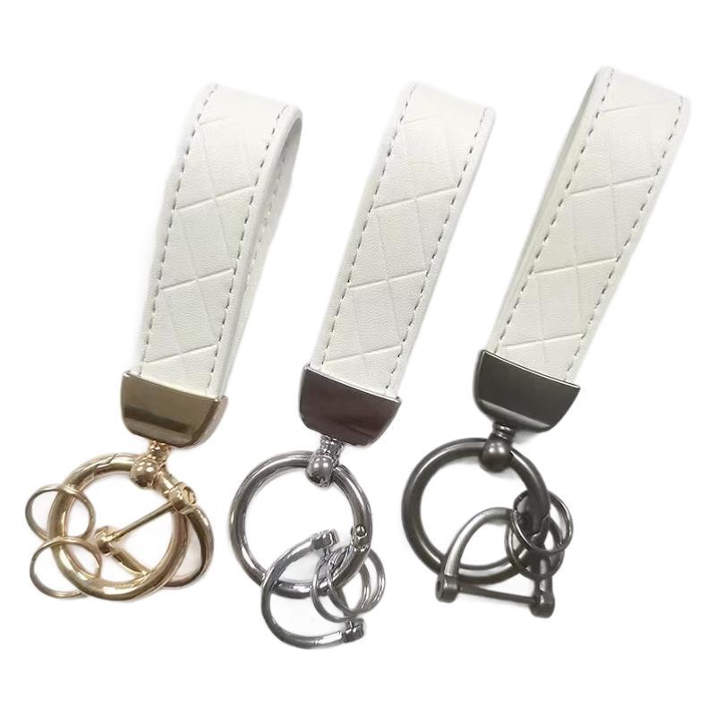 新款菱形格纹汽车钥匙扣皮革压花简约男女防丢腰挂钥匙绳情侣钥匙