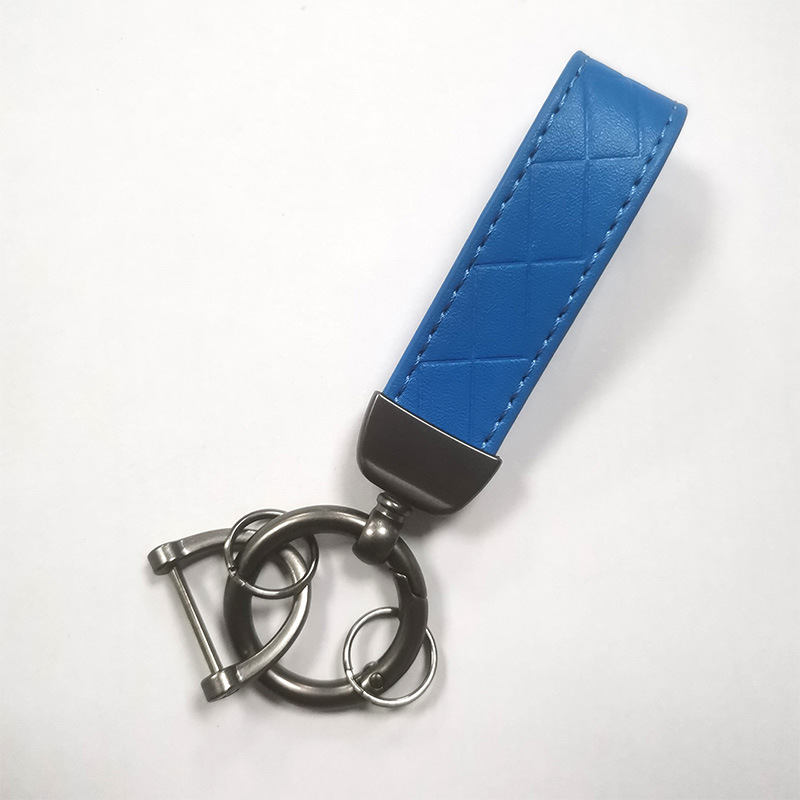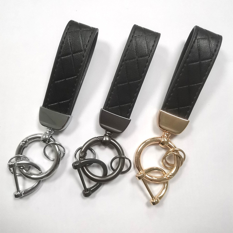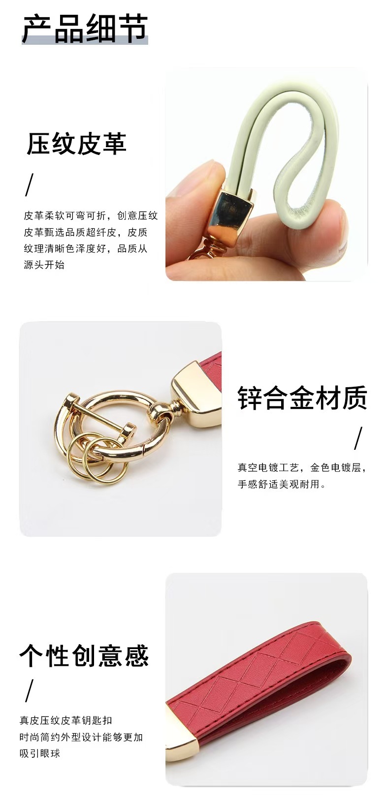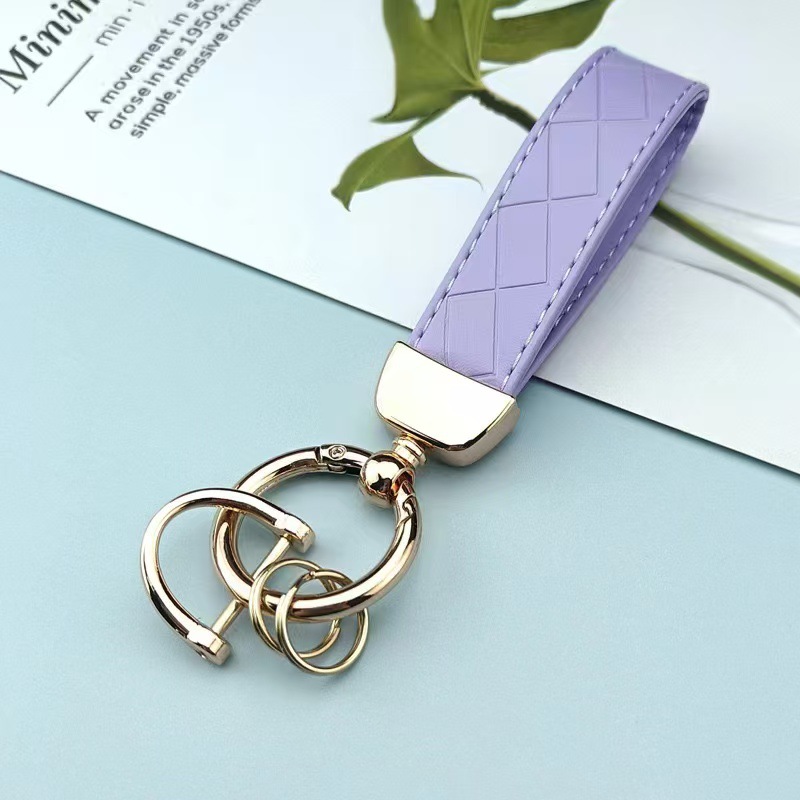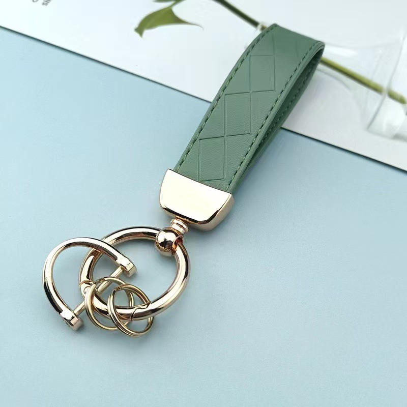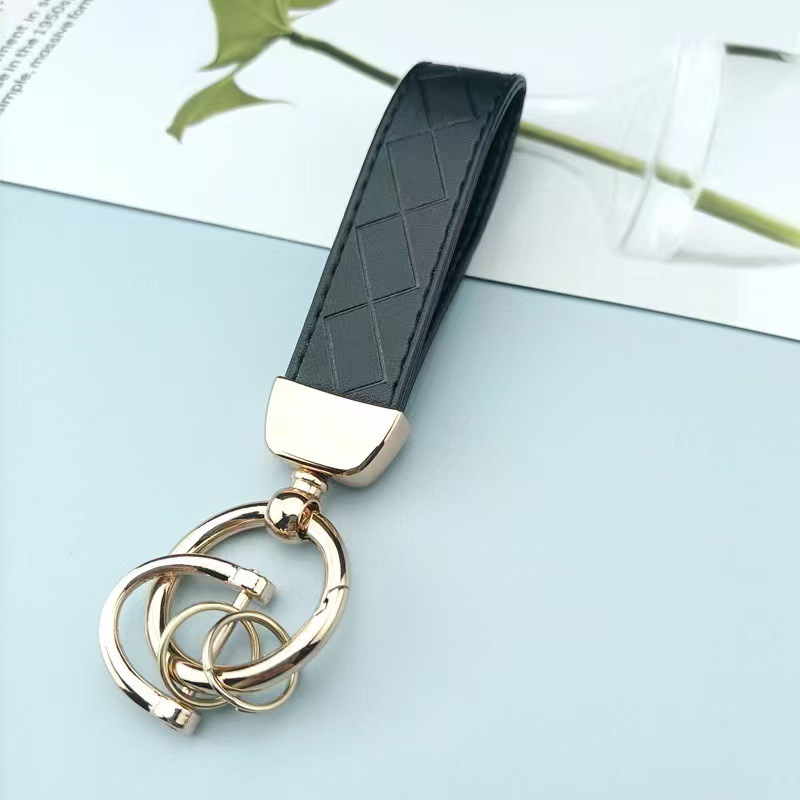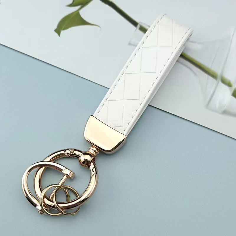 新款菱形格纹汽车钥匙扣皮革压花简约男女防丢腰挂钥匙绳情侣钥匙