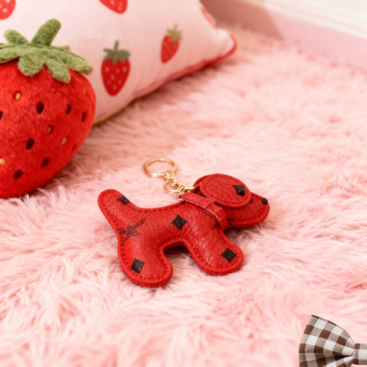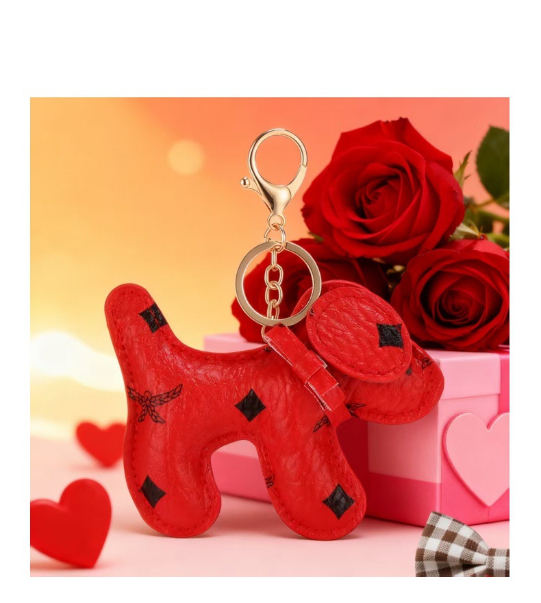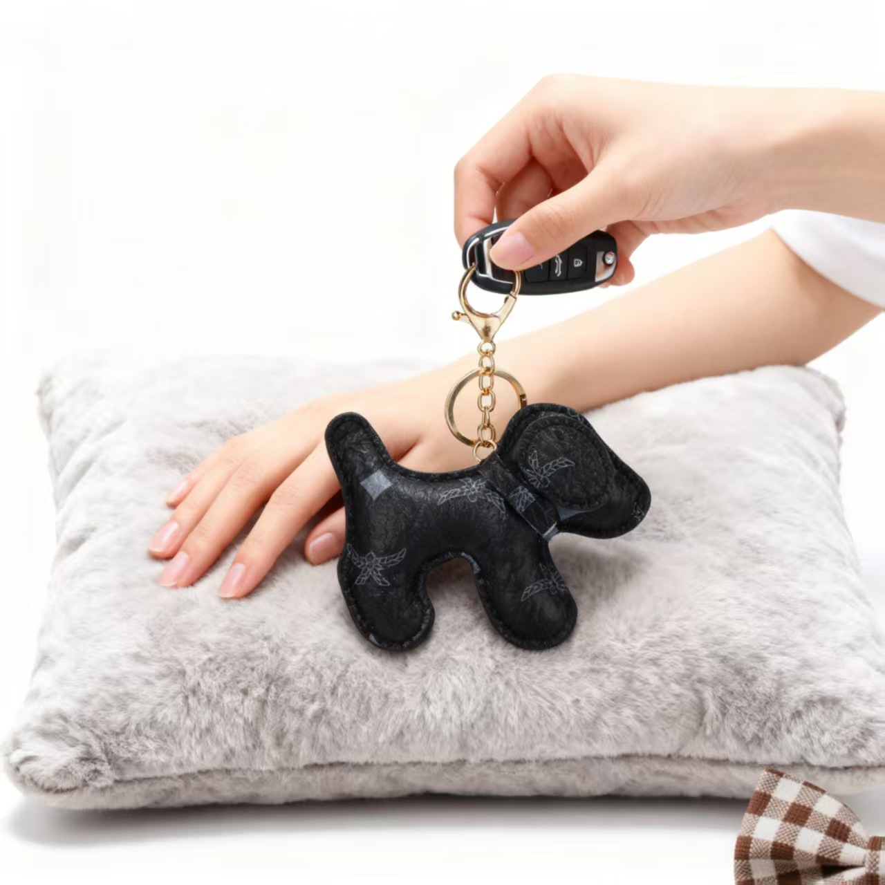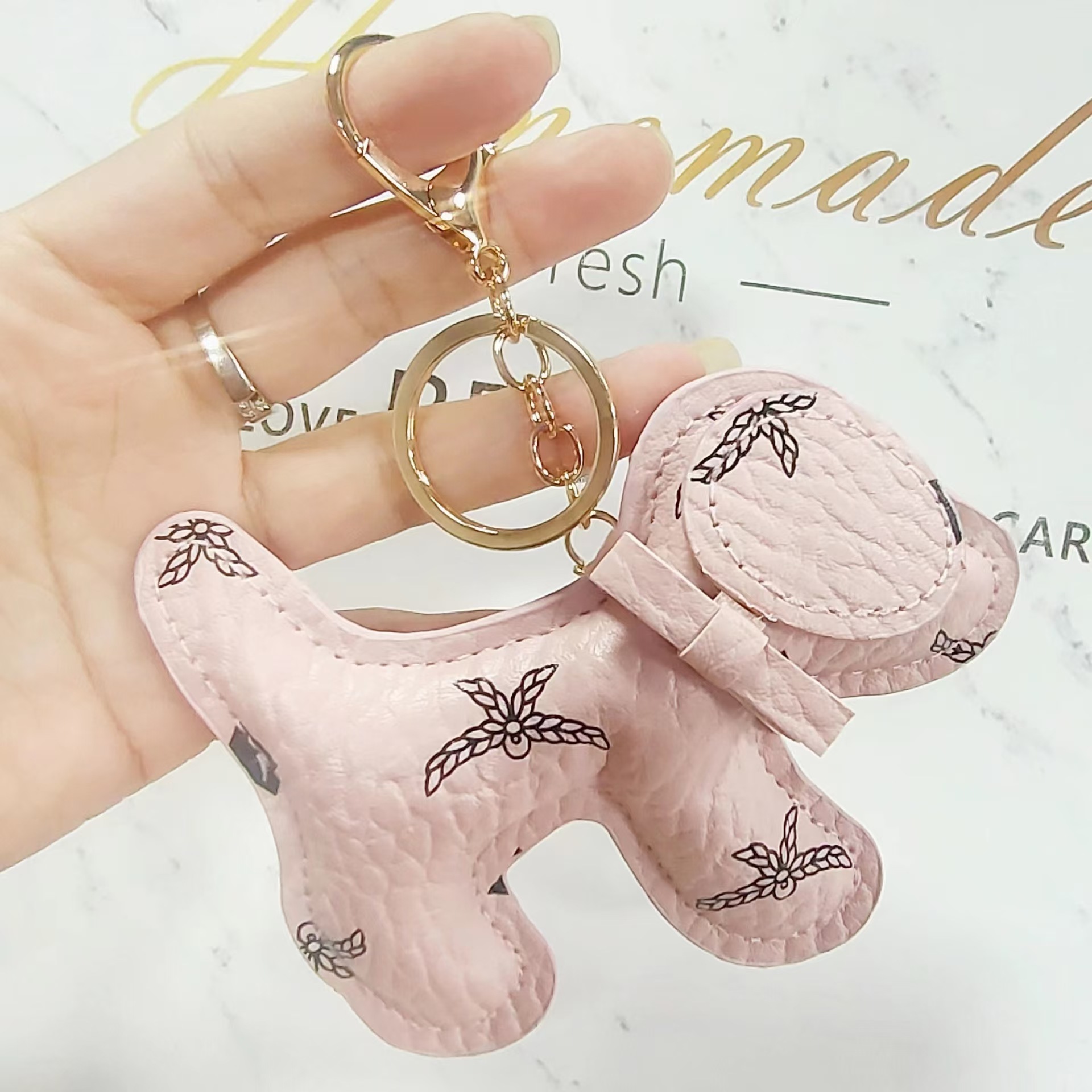 创意印花皮质狗狗钥匙扣多色可爱小狗挂件包包汽车挂饰个性配饰批