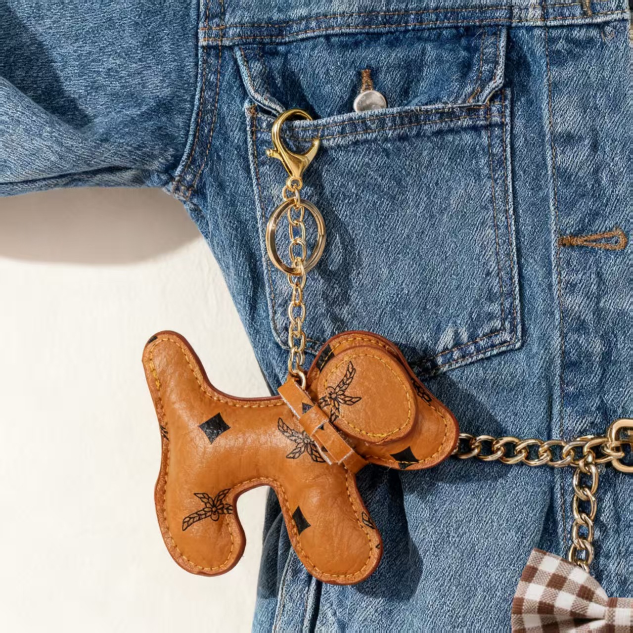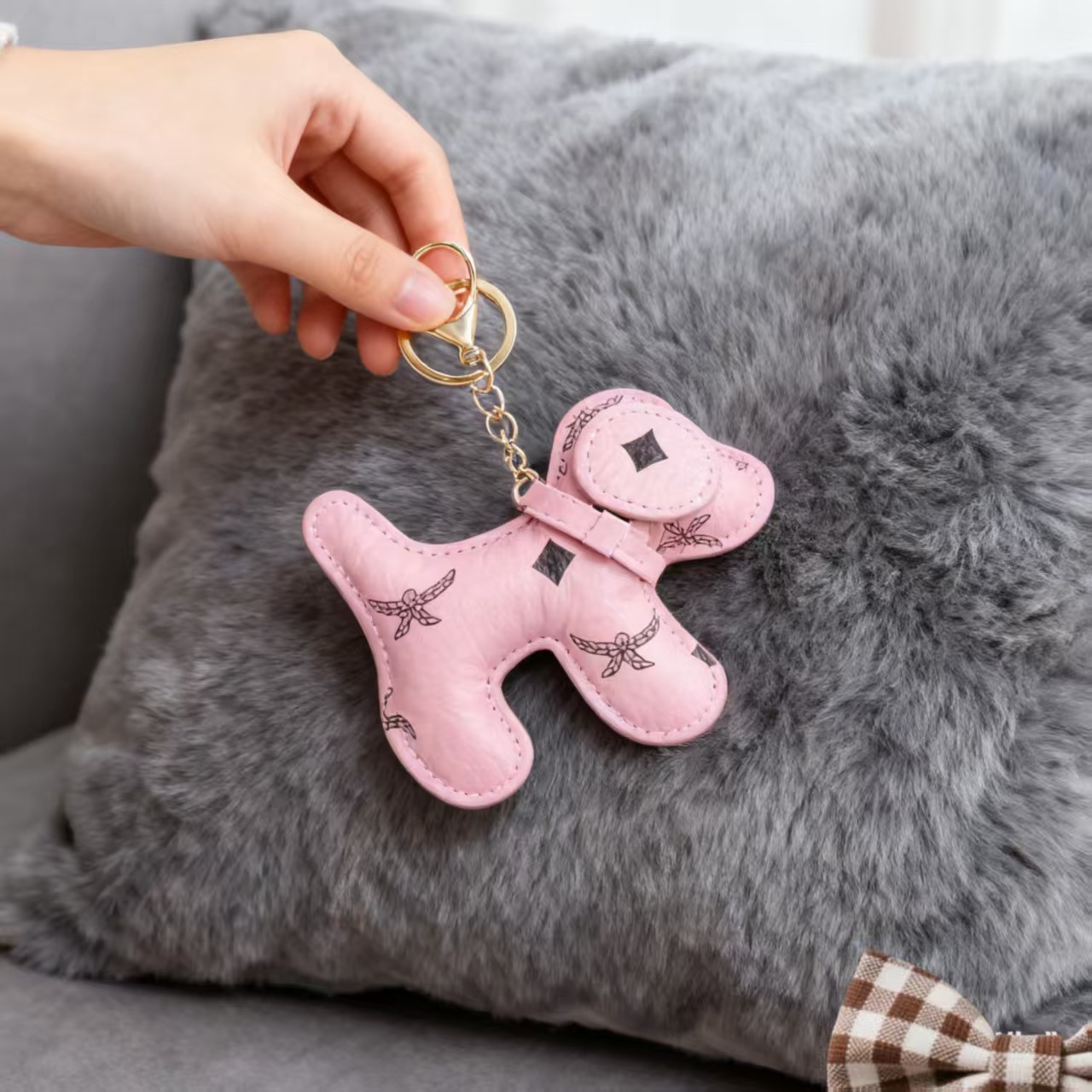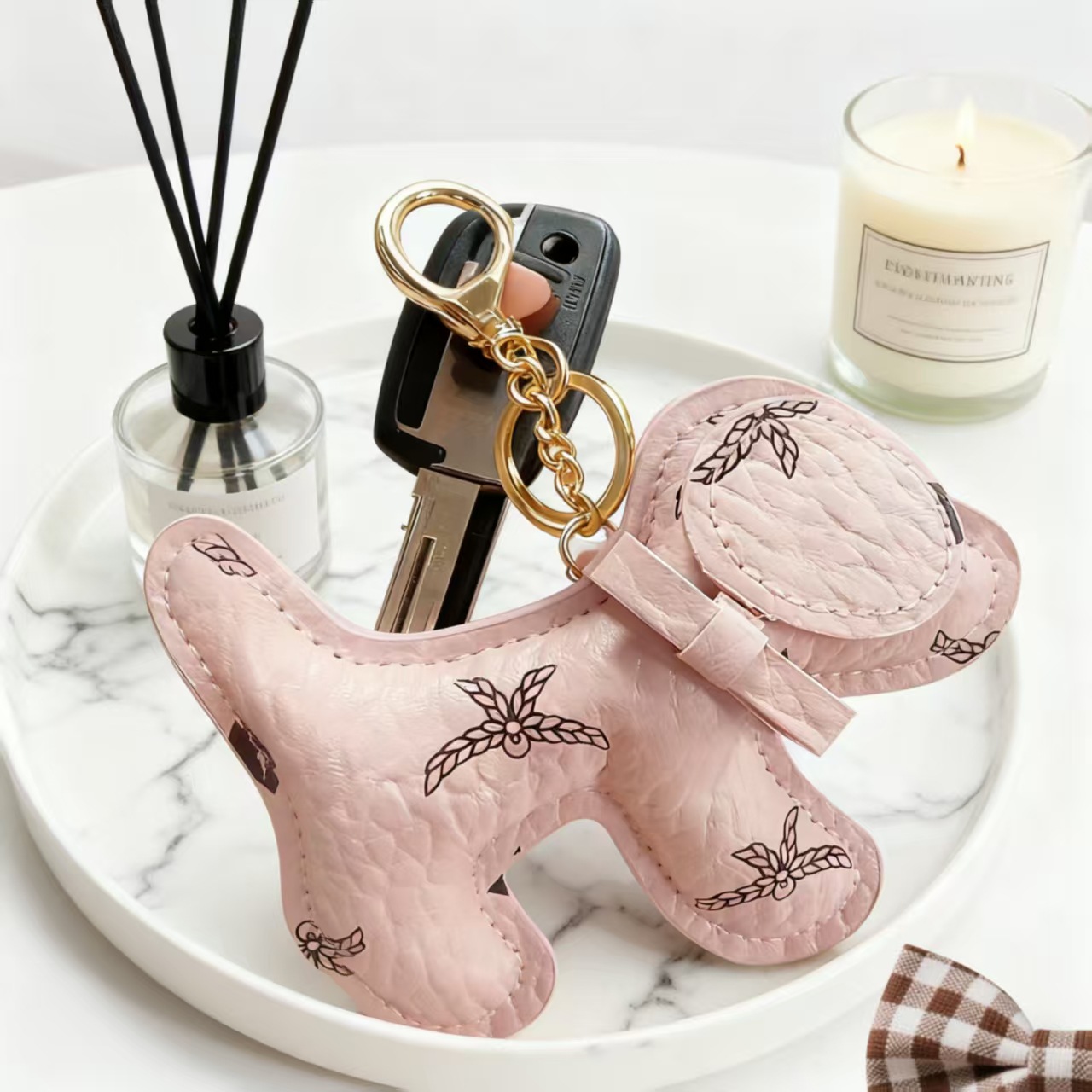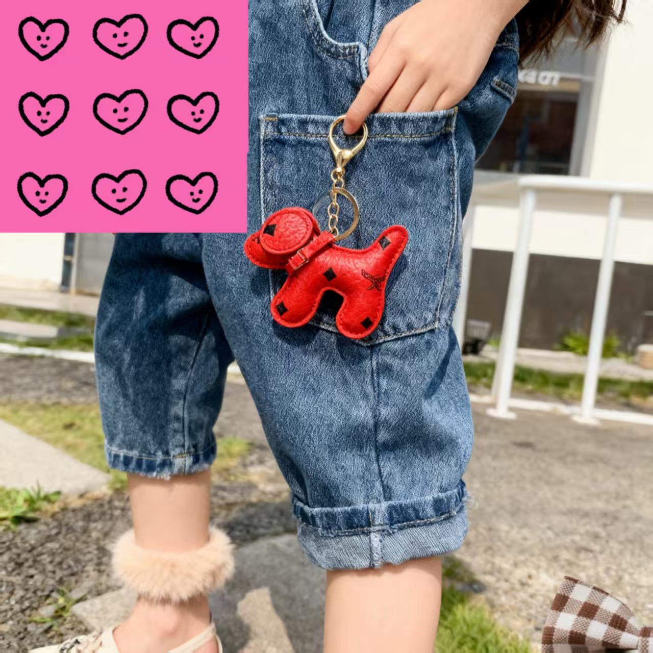 创意印花皮质狗狗钥匙扣多色可爱小狗挂件包包汽车挂饰个性配饰批