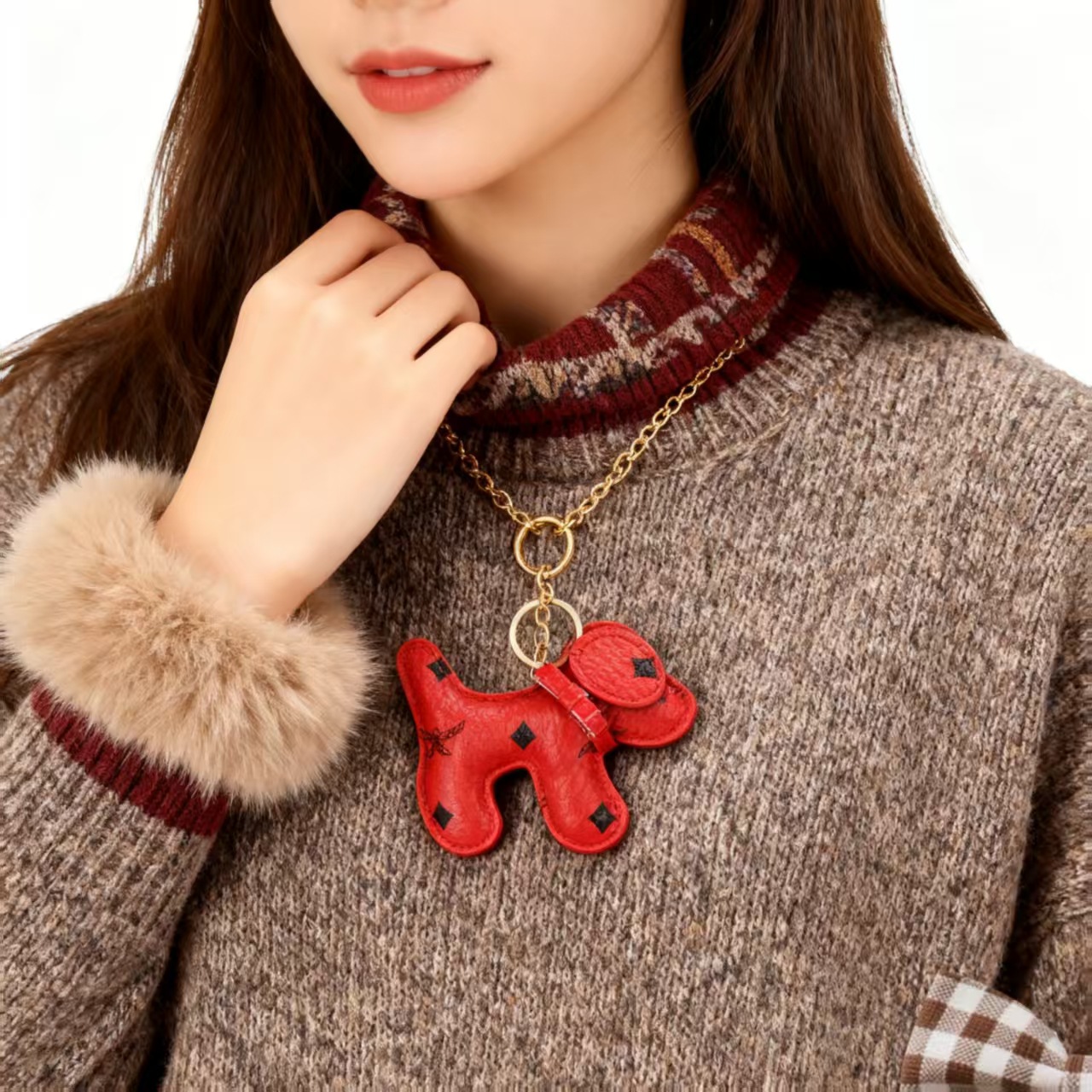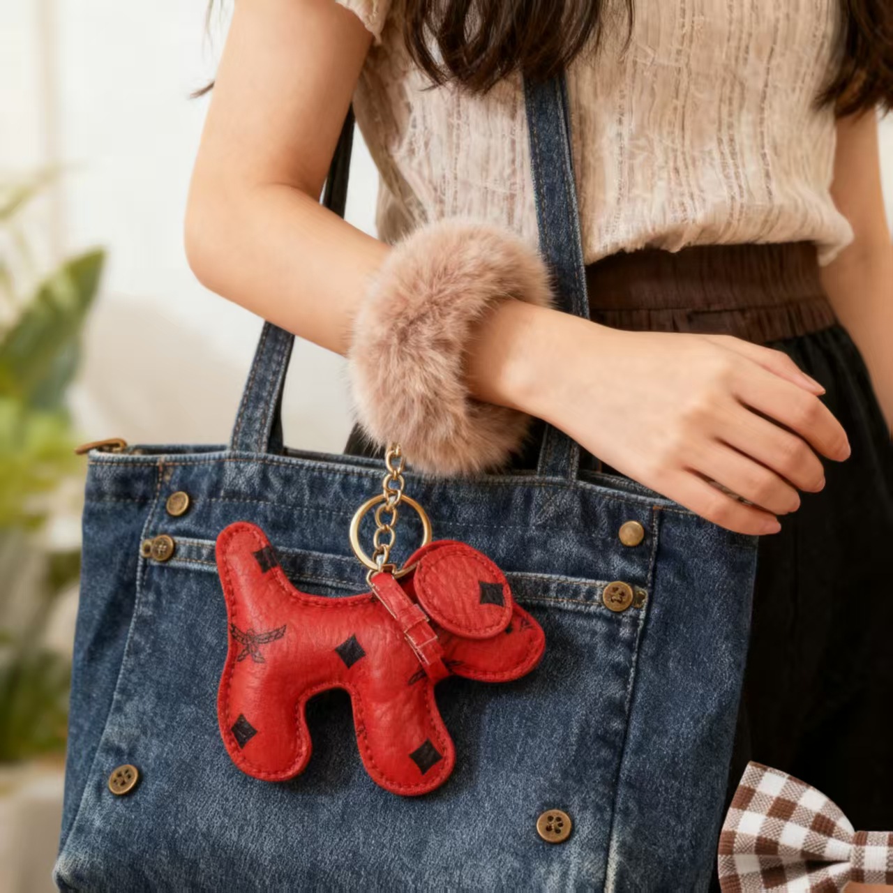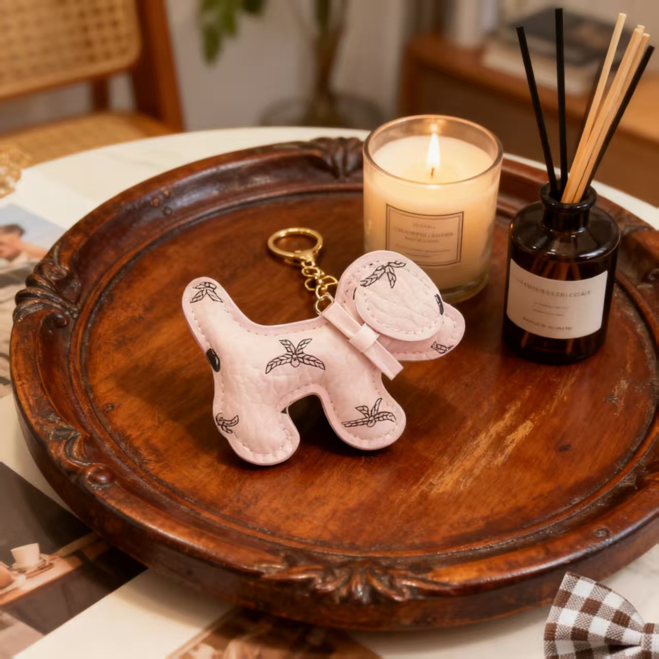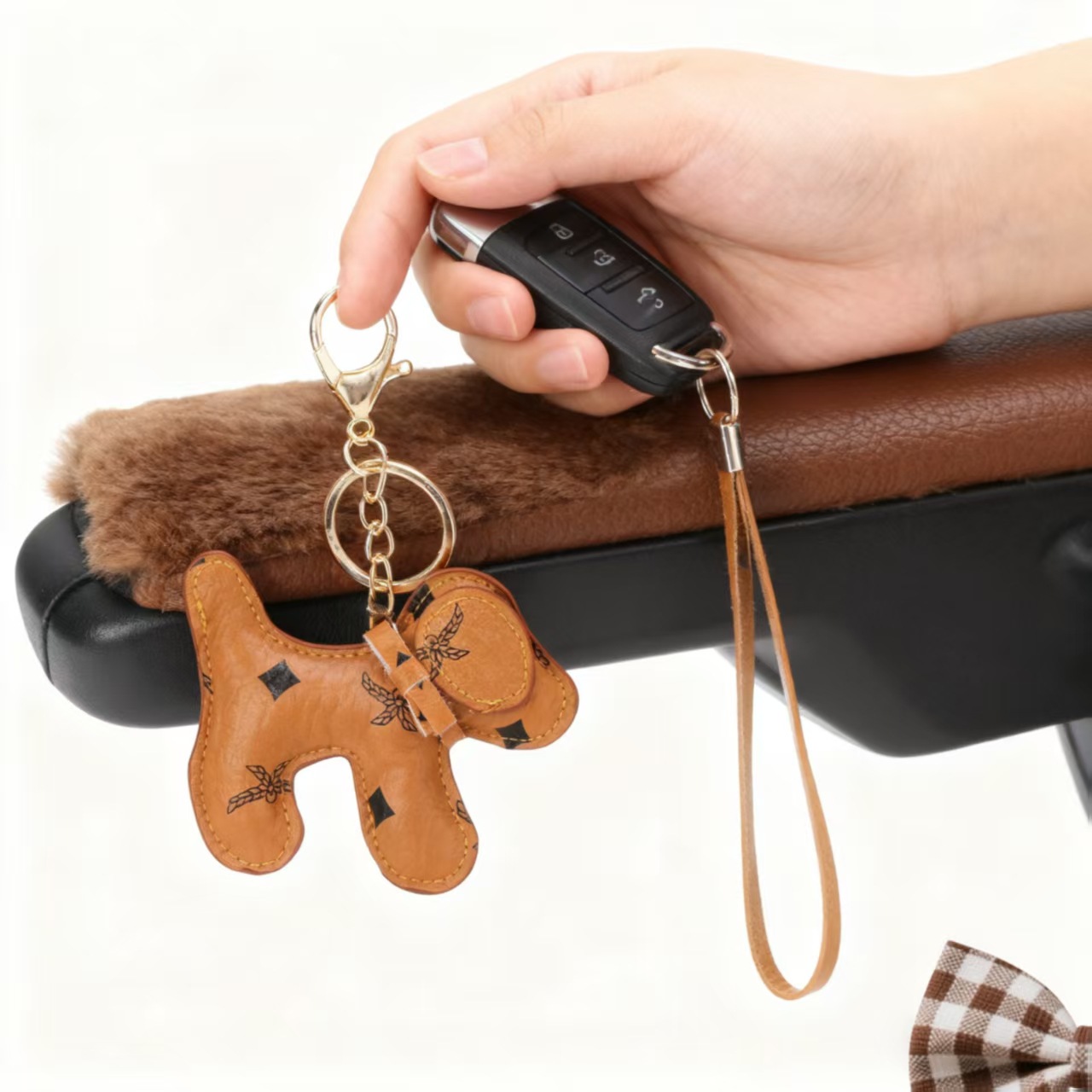 创意印花皮质狗狗钥匙扣多色可爱小狗挂件包包汽车挂饰个性配饰批