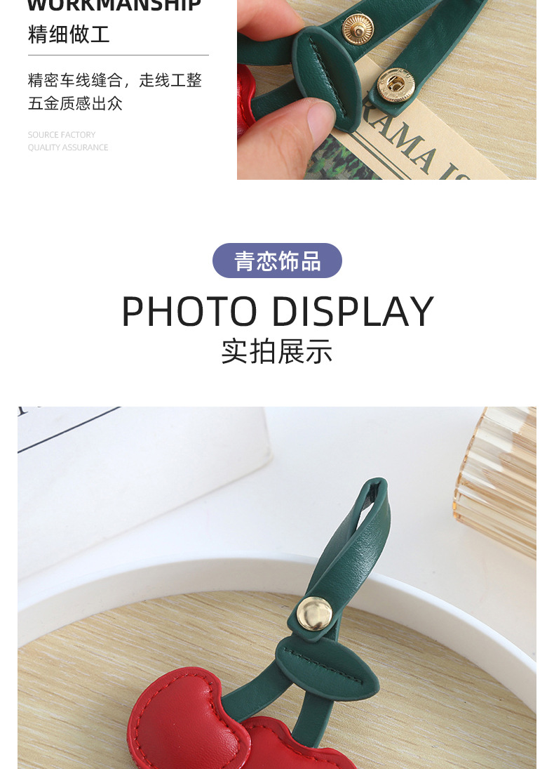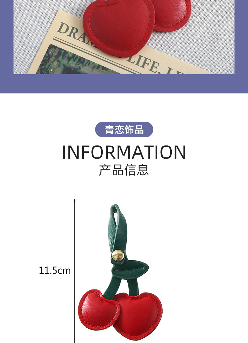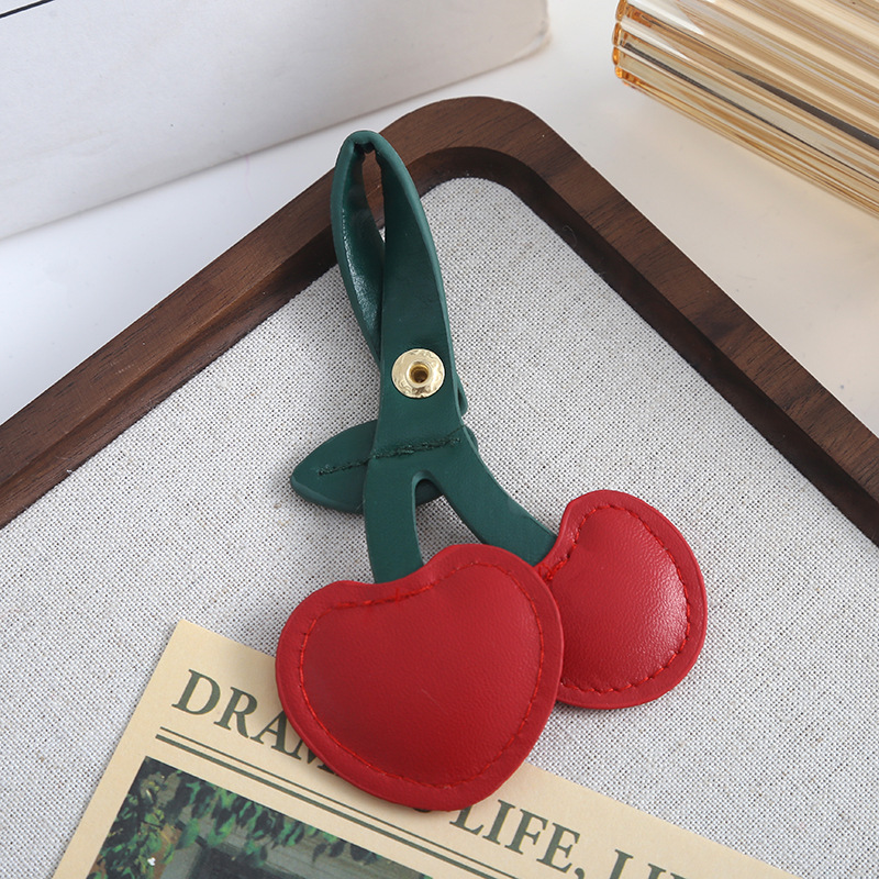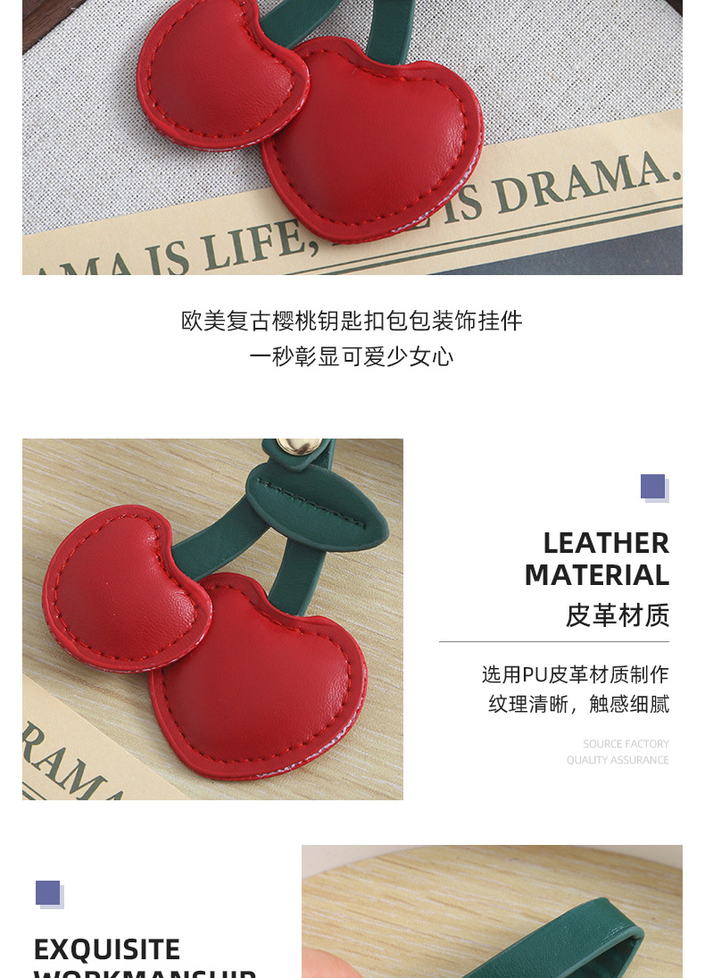 欧美复古樱桃钥匙扣挂件pu皮质包包挂件装饰可爱立体桃心少女心