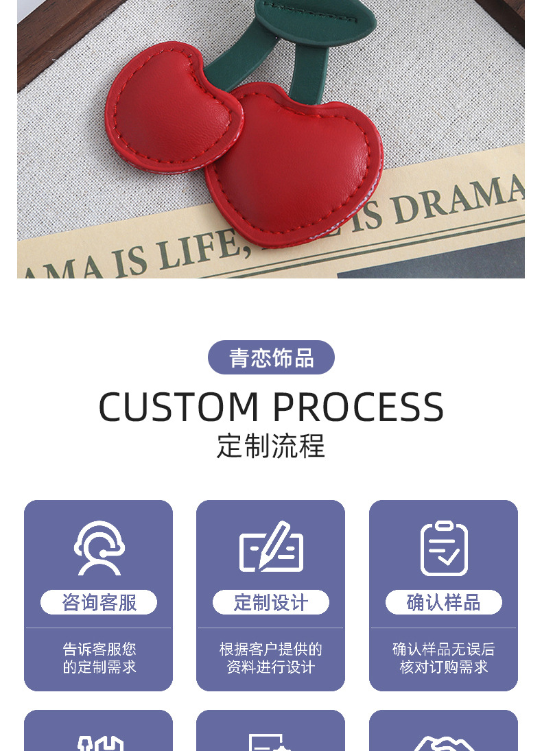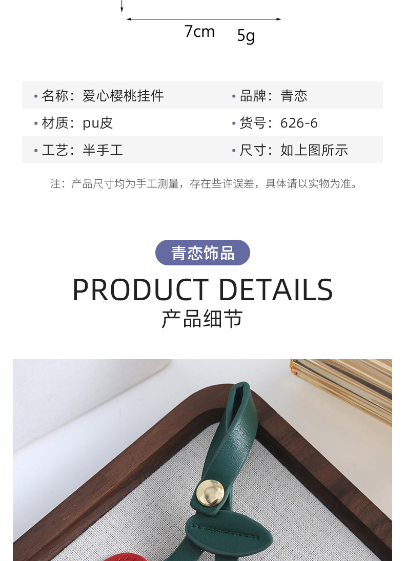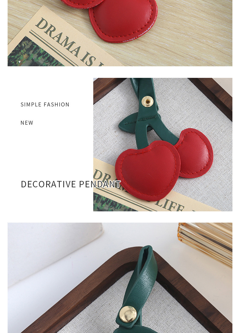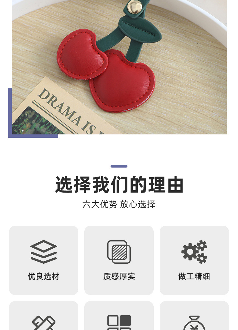 欧美复古樱桃钥匙扣挂件pu皮质包包挂件装饰可爱立体桃心少女心