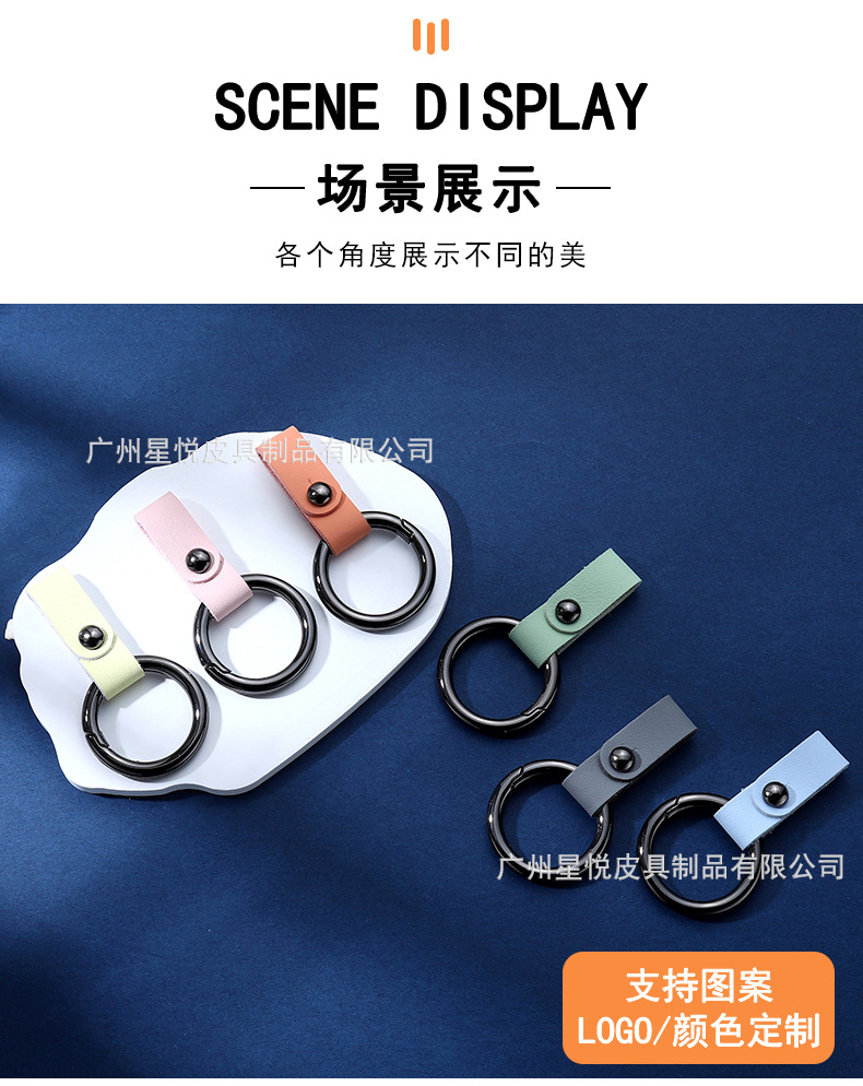 皮质超纤钥匙链商务简约汽车钥匙圈挂件男女士腰挂防丢皮革钥匙扣