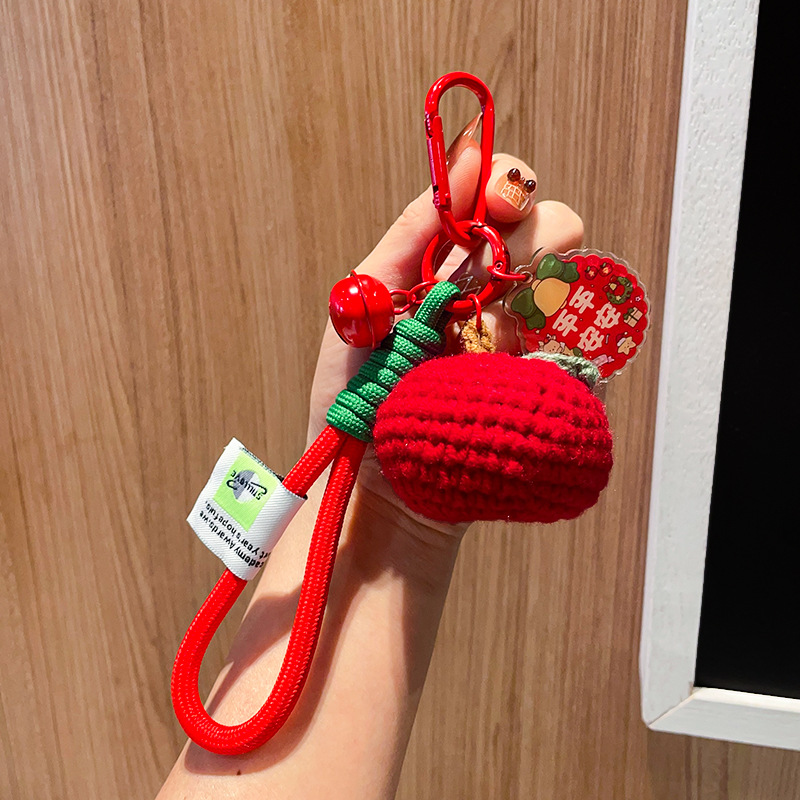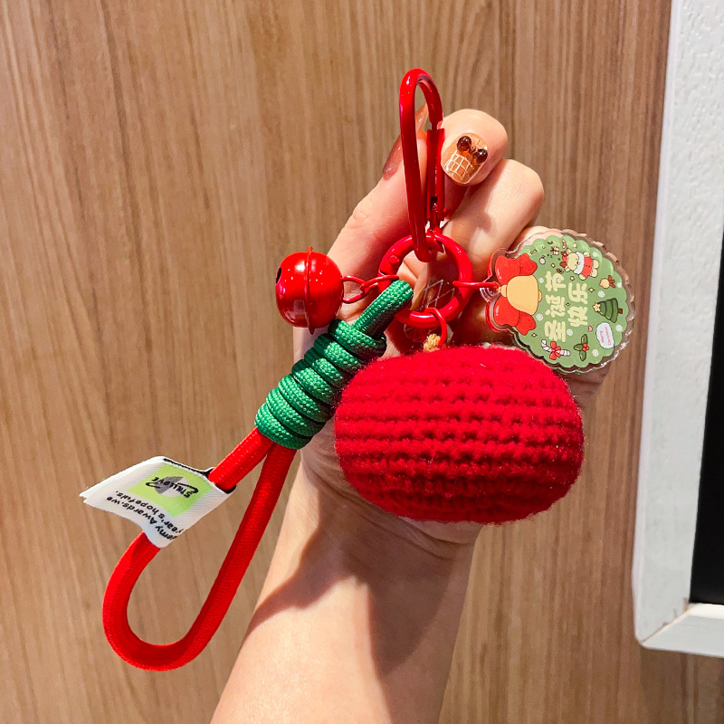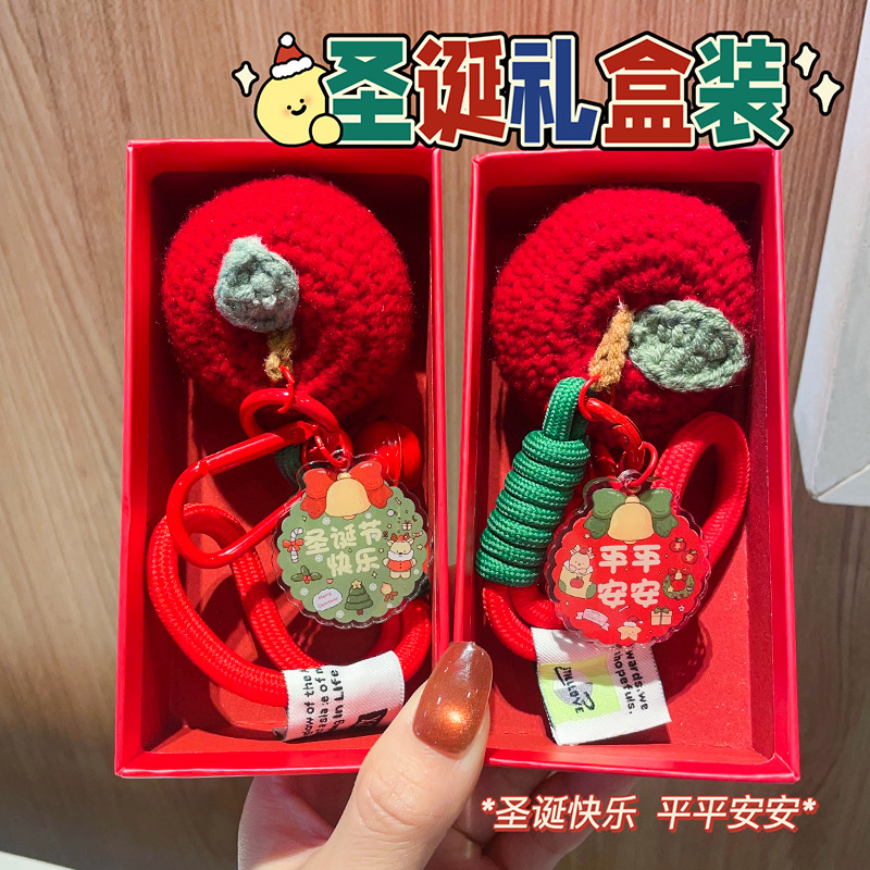 圣诞节平安夜钥匙扣挂件毛线钩织苹果包包挂饰平安喜乐圣诞小礼品