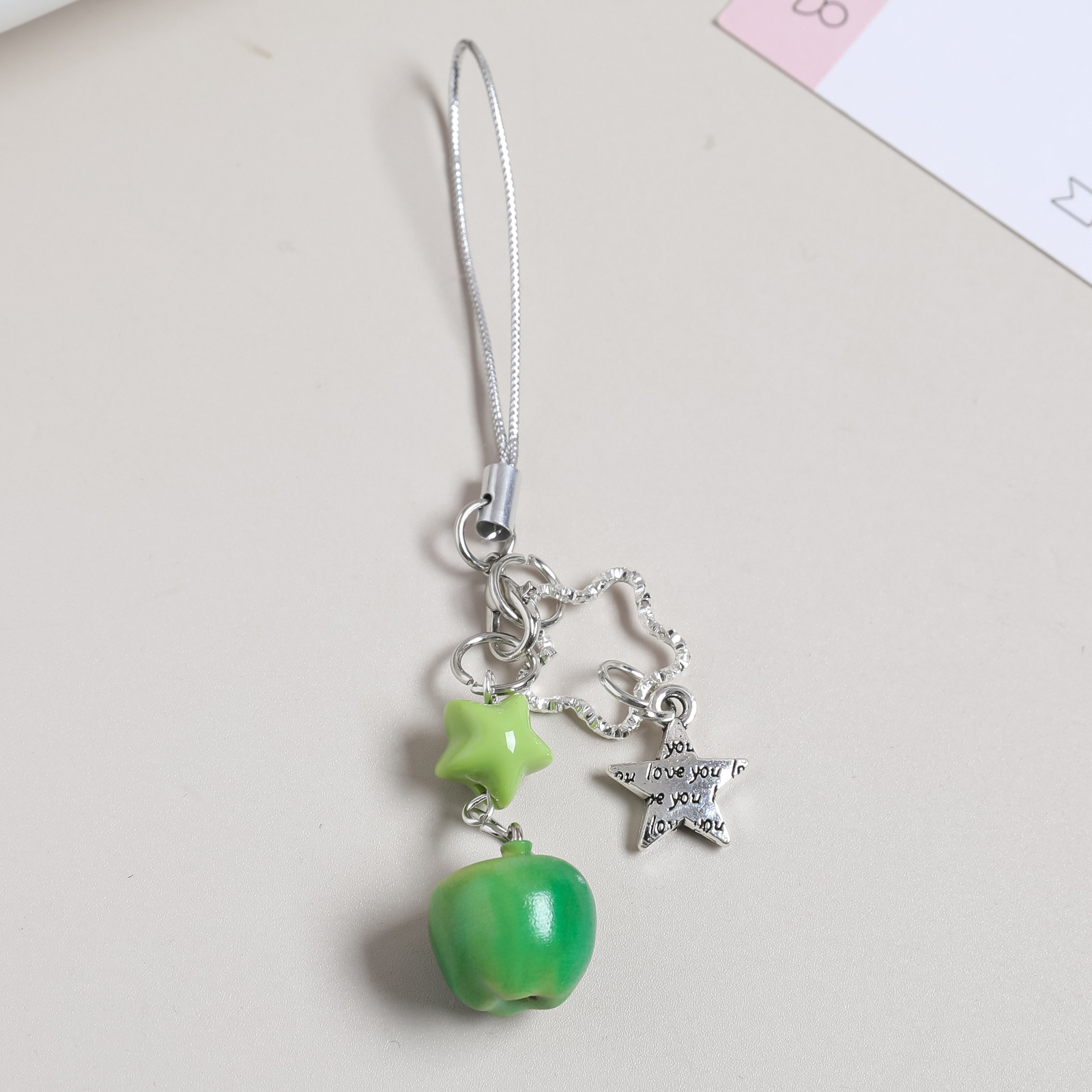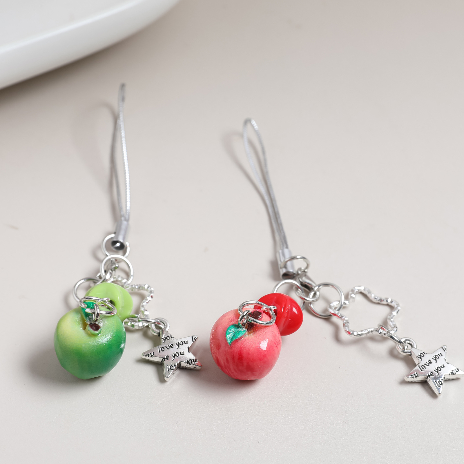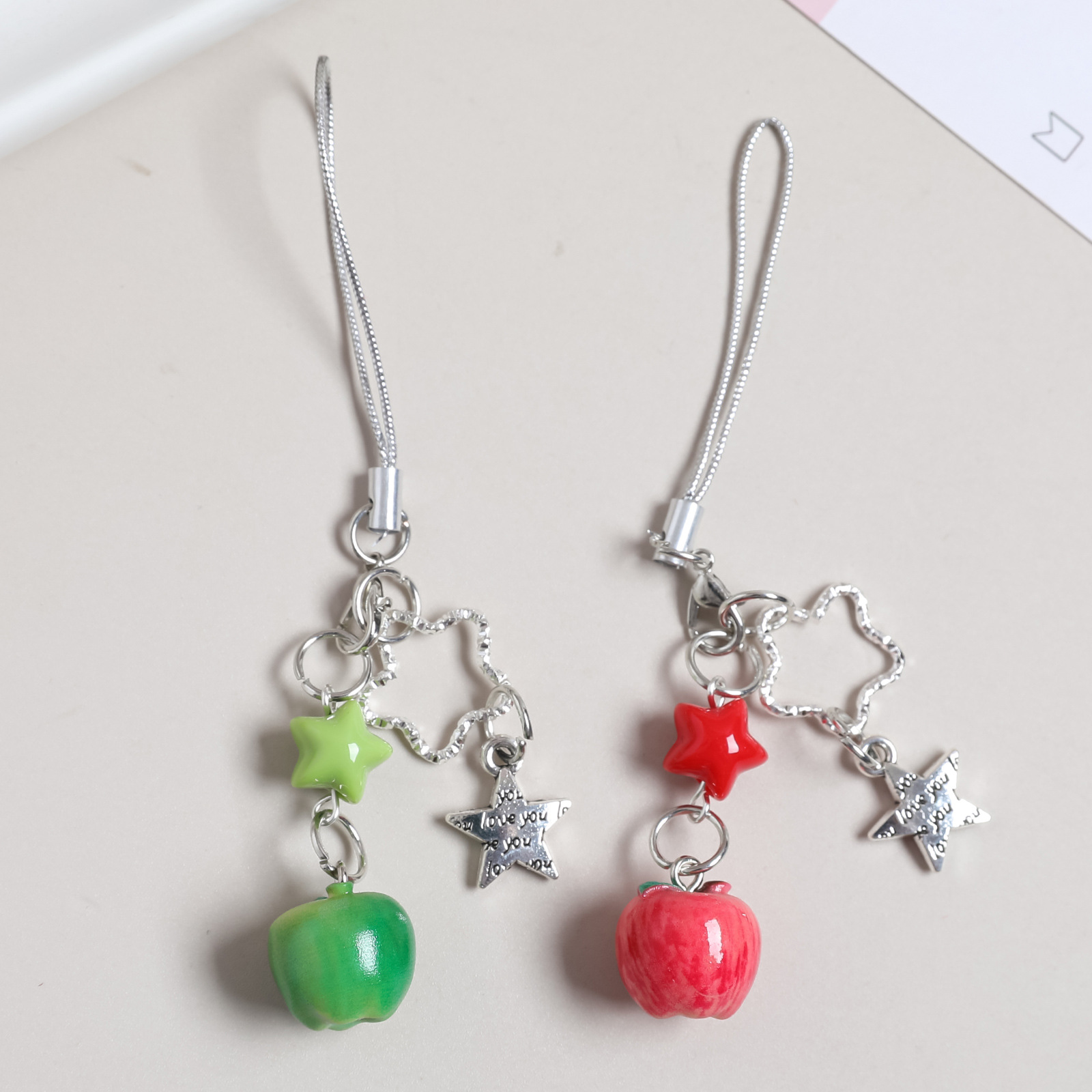 可爱仿真立体苹果星星挂件手机链钥匙扣装饰包包耳机套钥匙扣批发