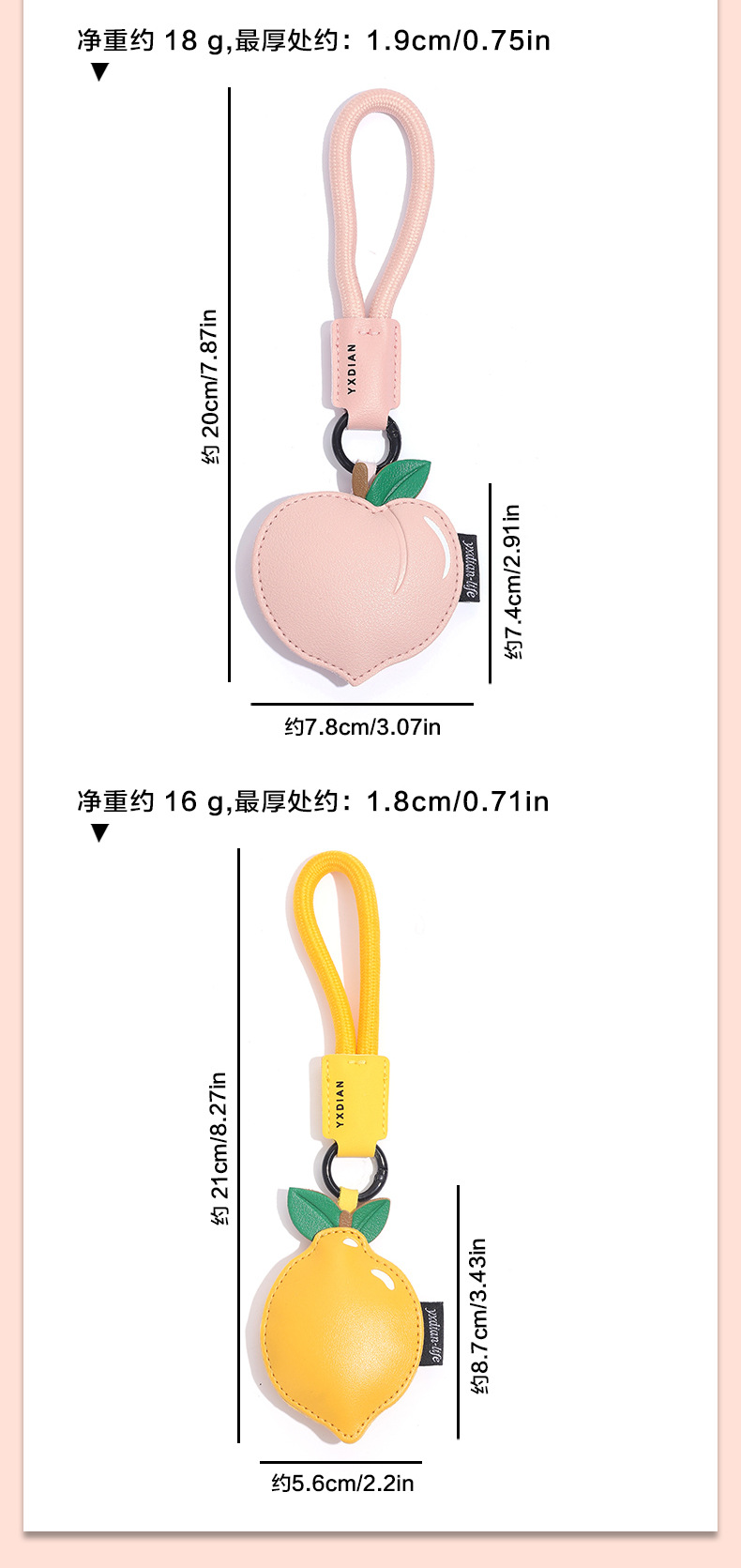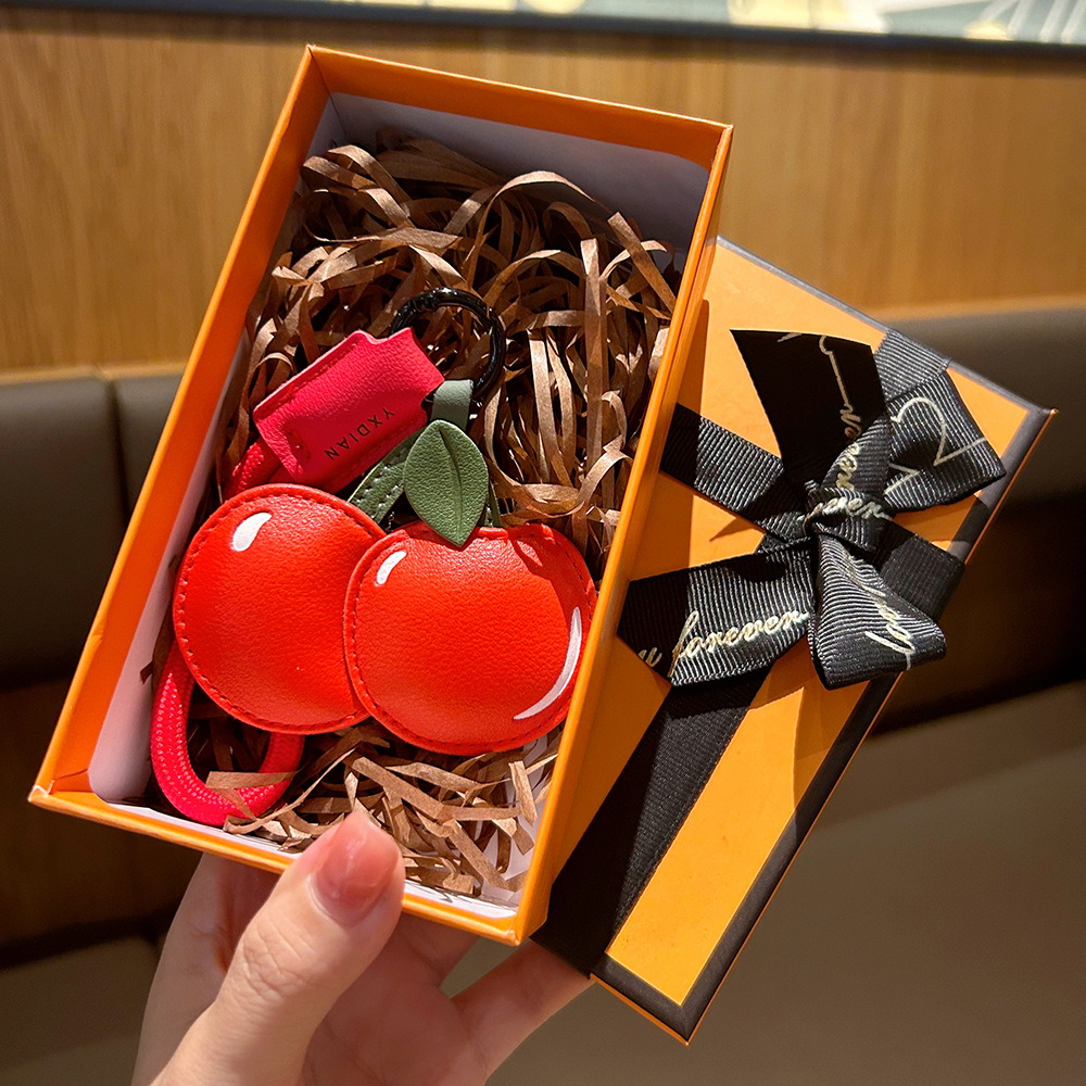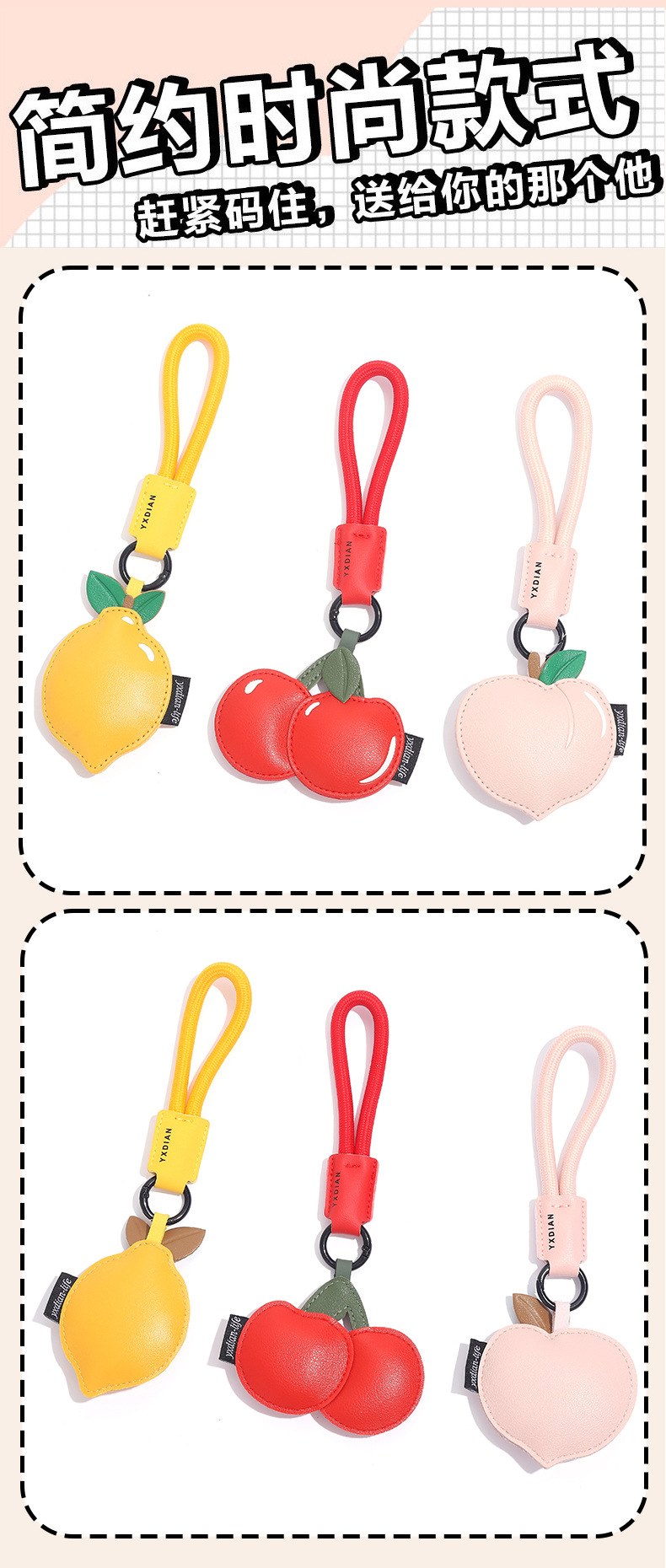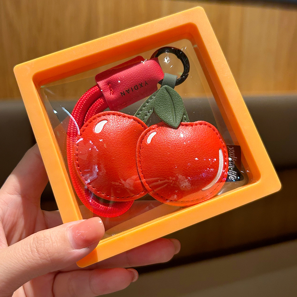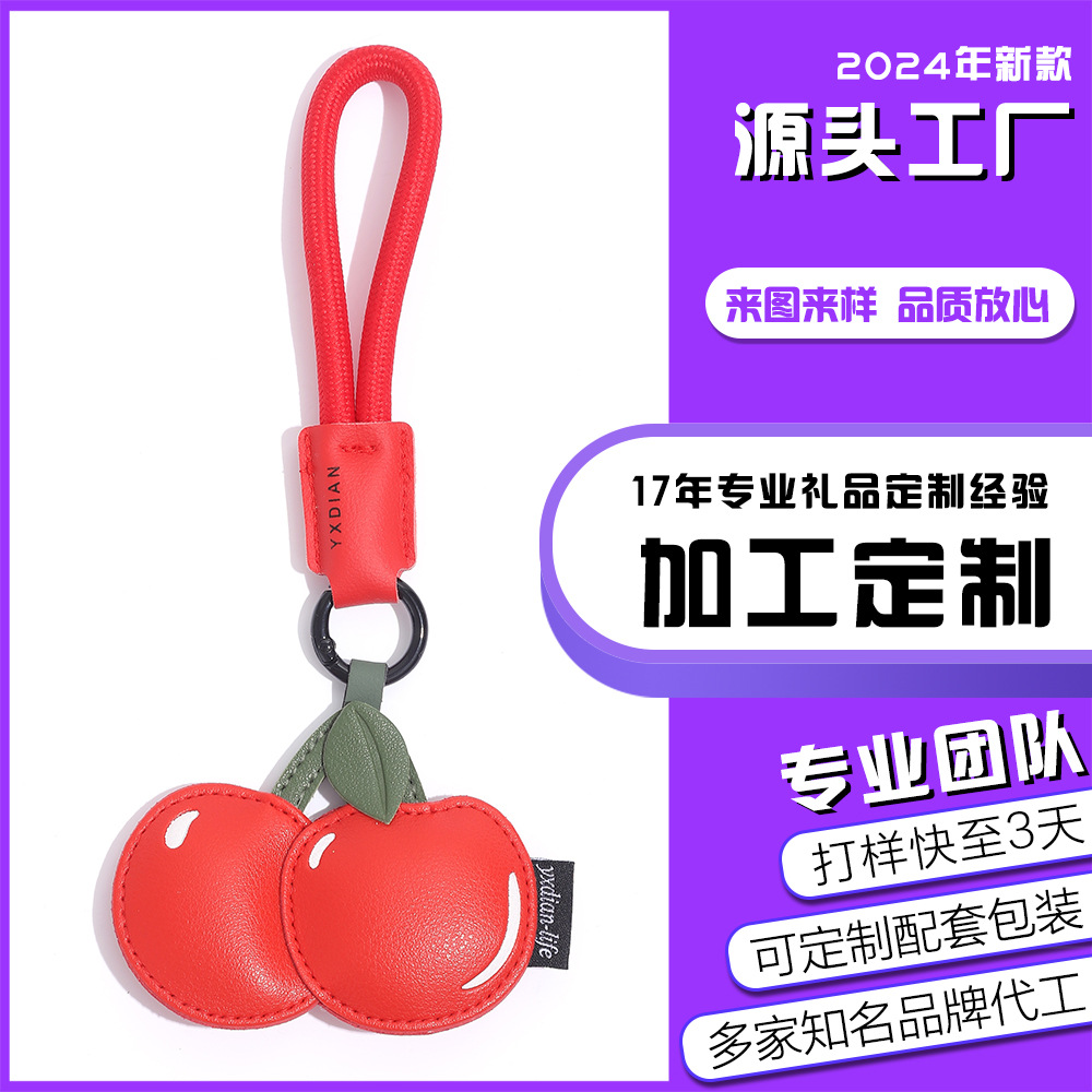 创意樱桃柠檬卡通可爱水果钥匙扣皮质书包配饰批发团购汽车挂件