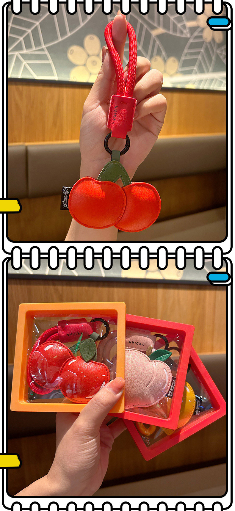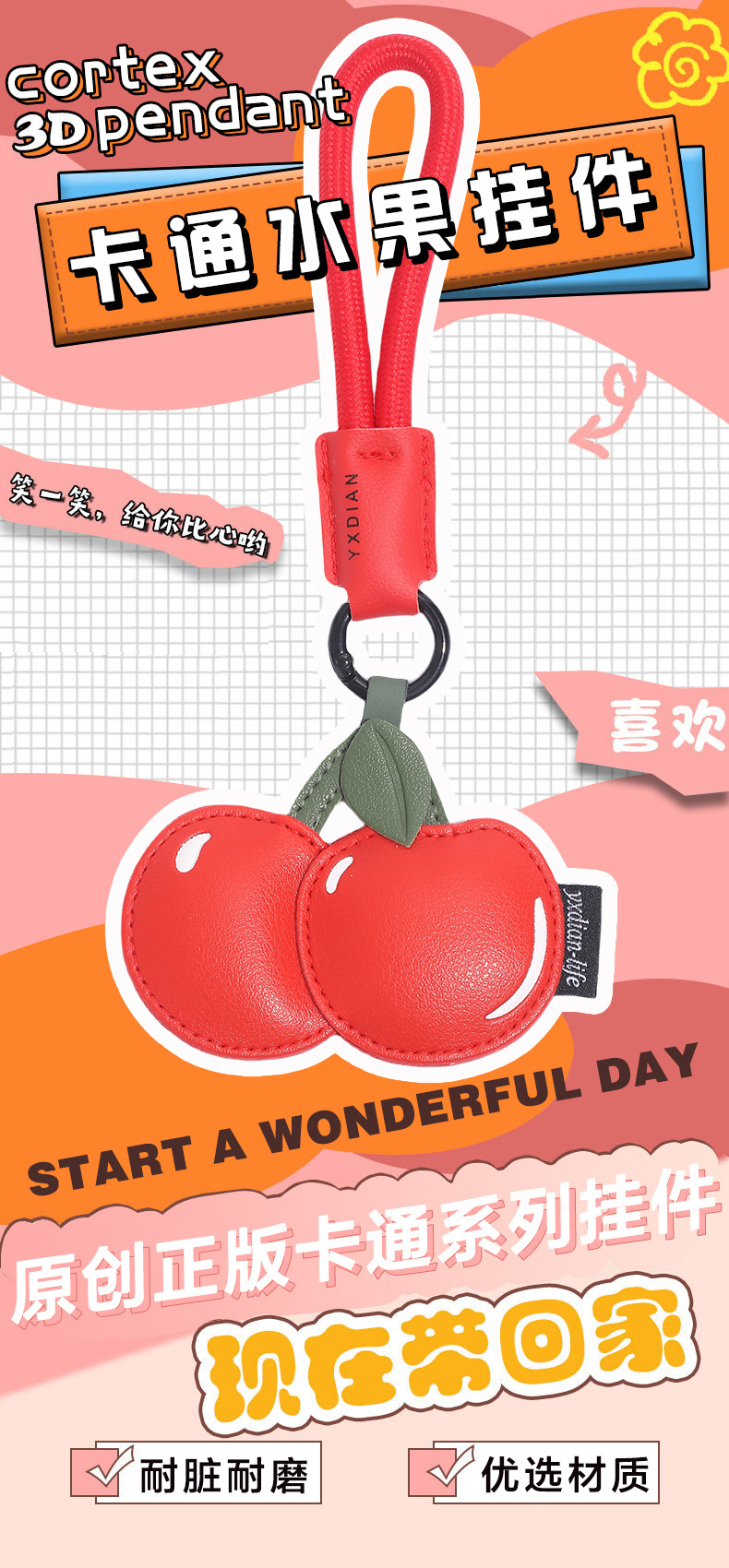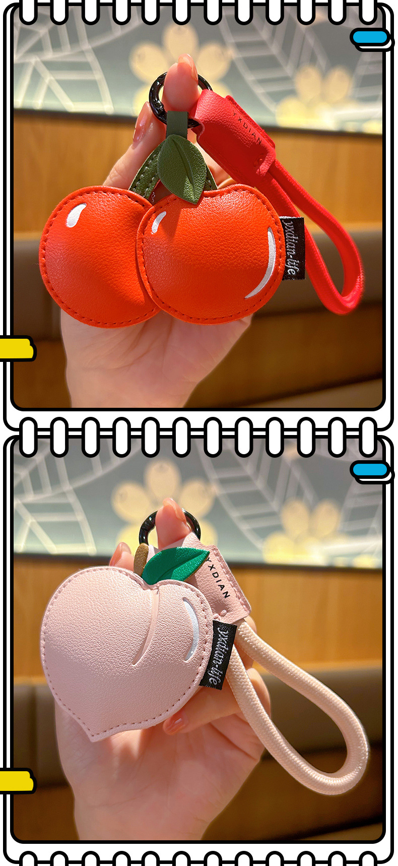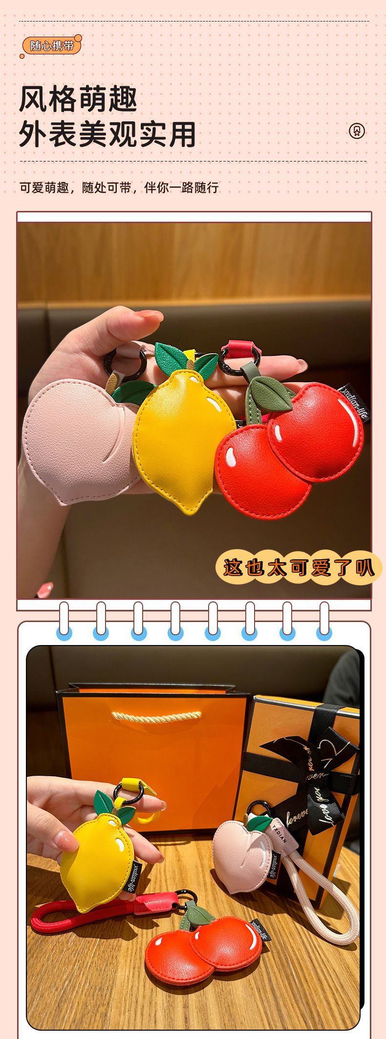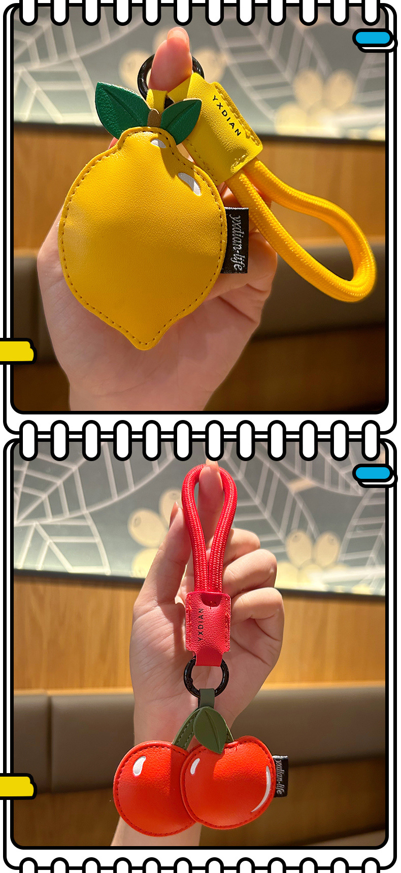 创意樱桃柠檬卡通可爱水果钥匙扣皮质书包配饰批发团购汽车挂件