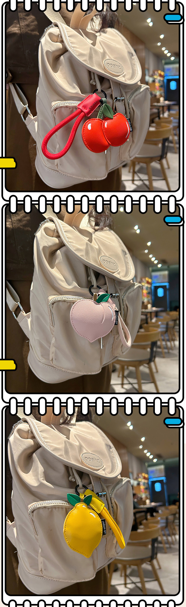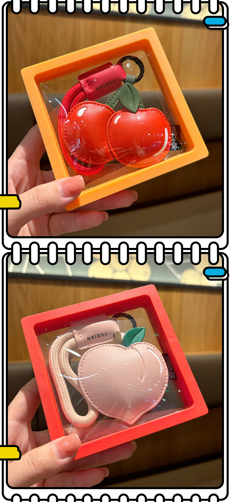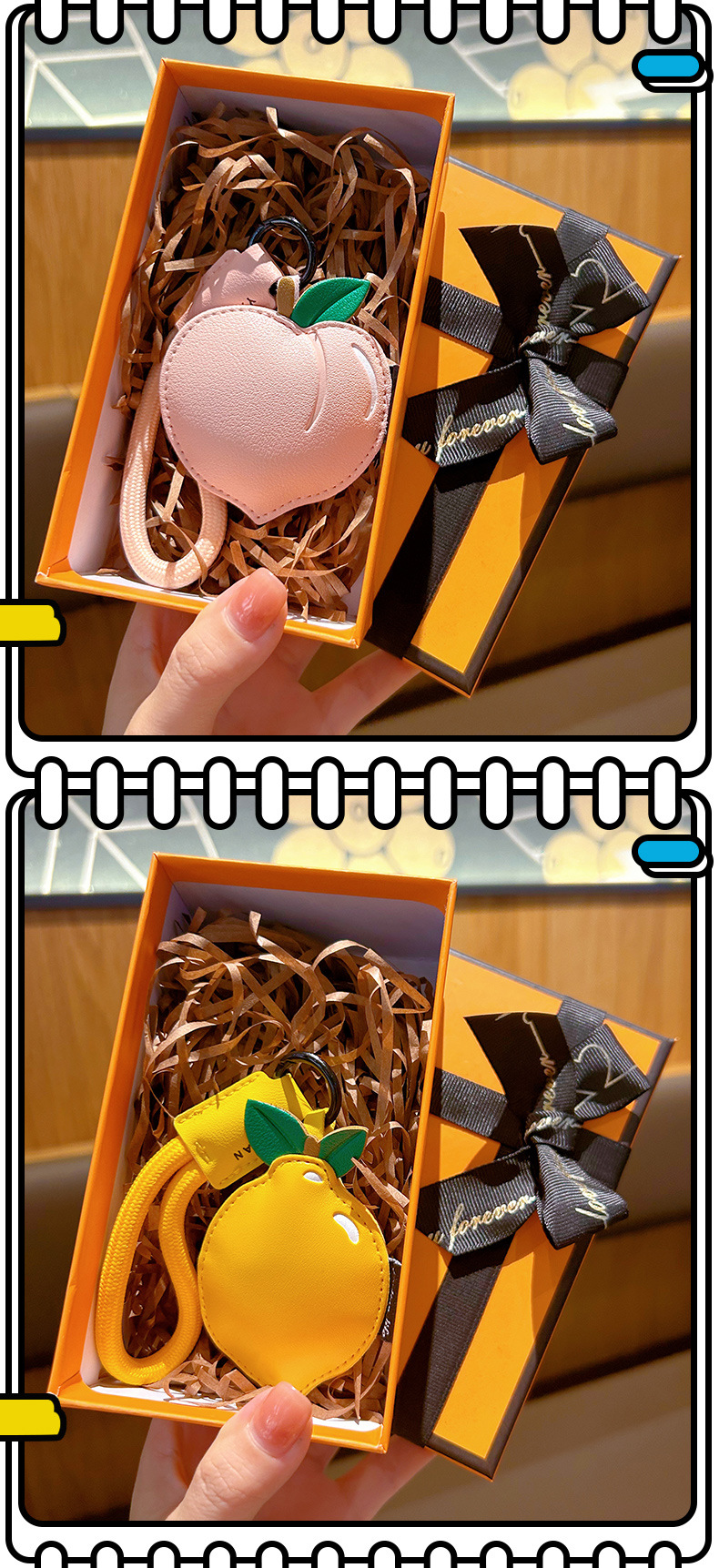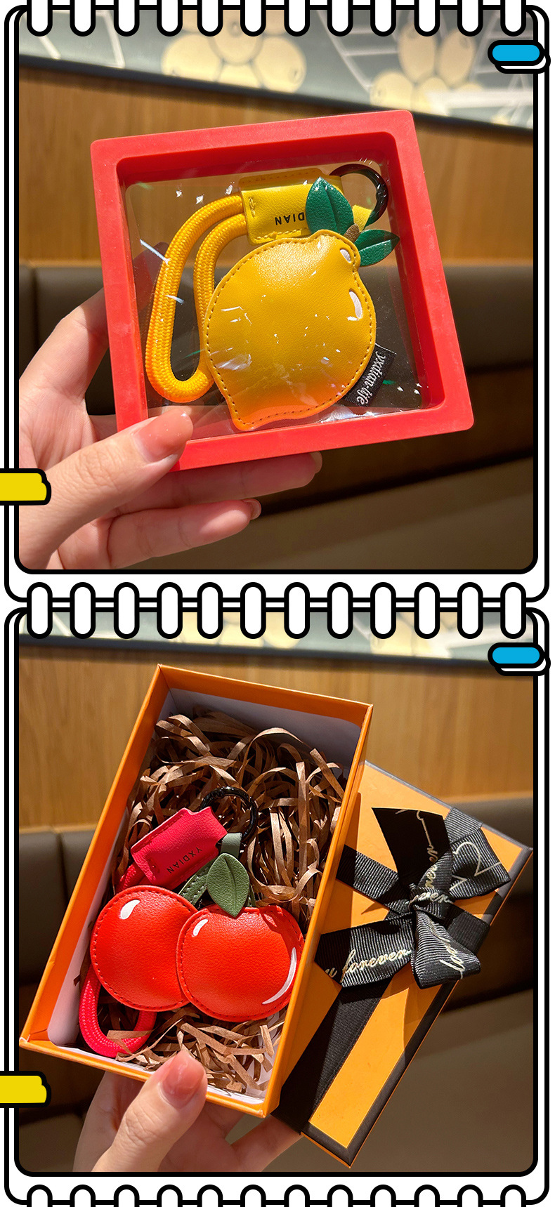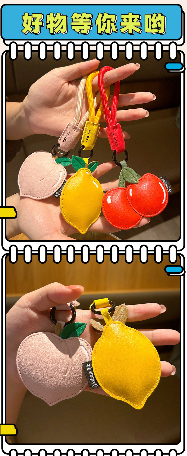 创意樱桃柠檬卡通可爱水果钥匙扣皮质书包配饰批发团购汽车挂件