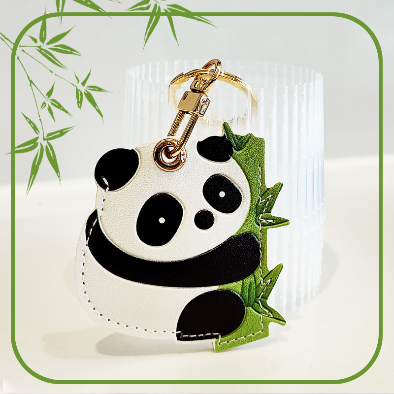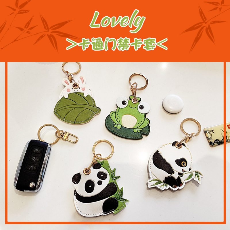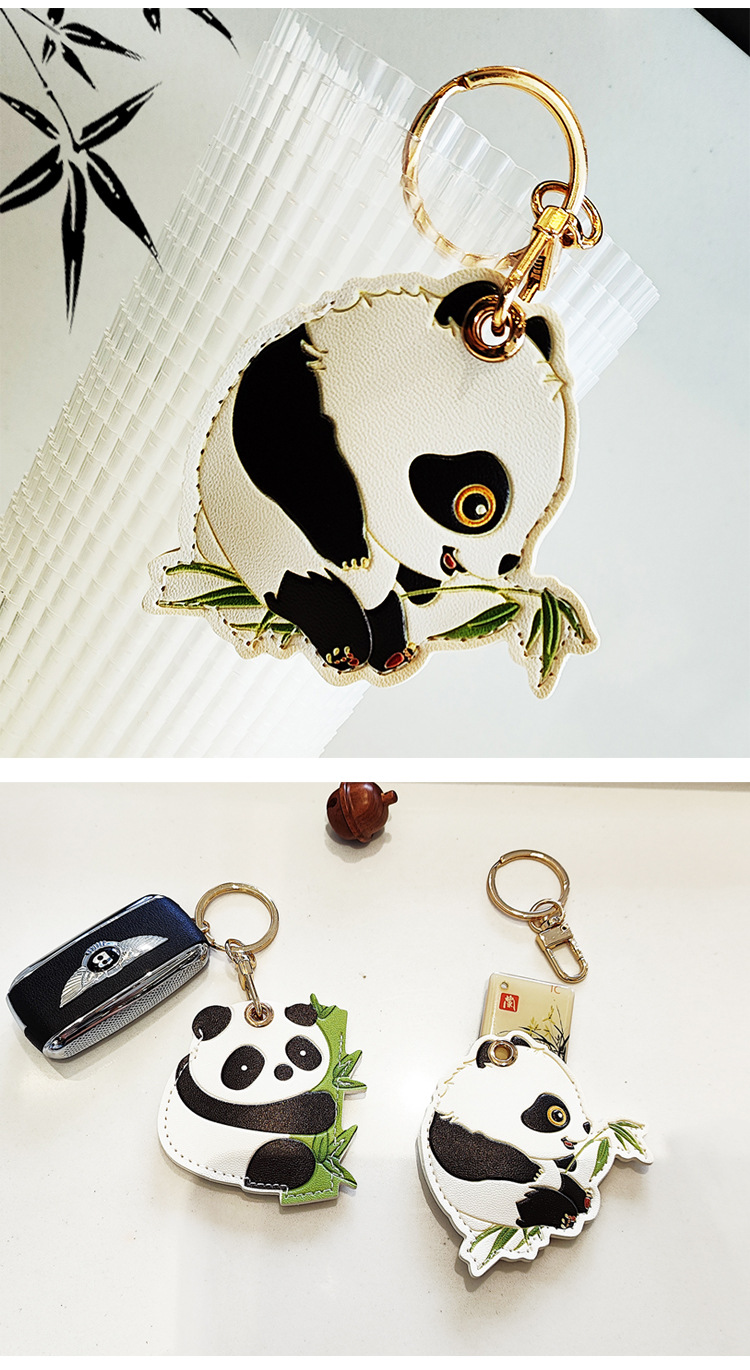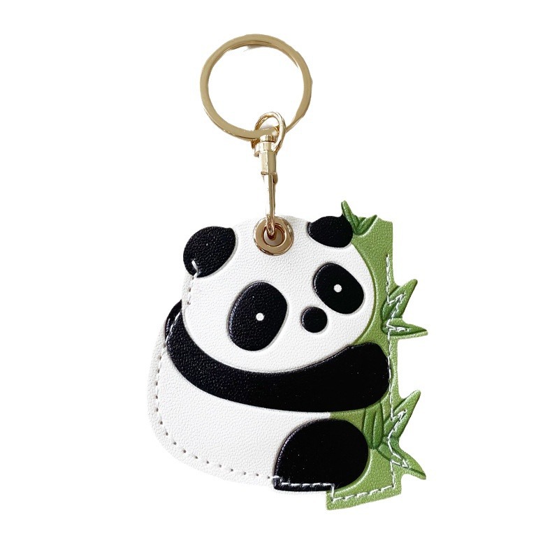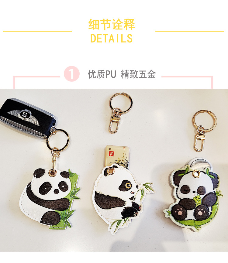 熊猫皮革钥匙扣门禁卡防丢皮套挂件airtag保护套包挂创意礼物定制