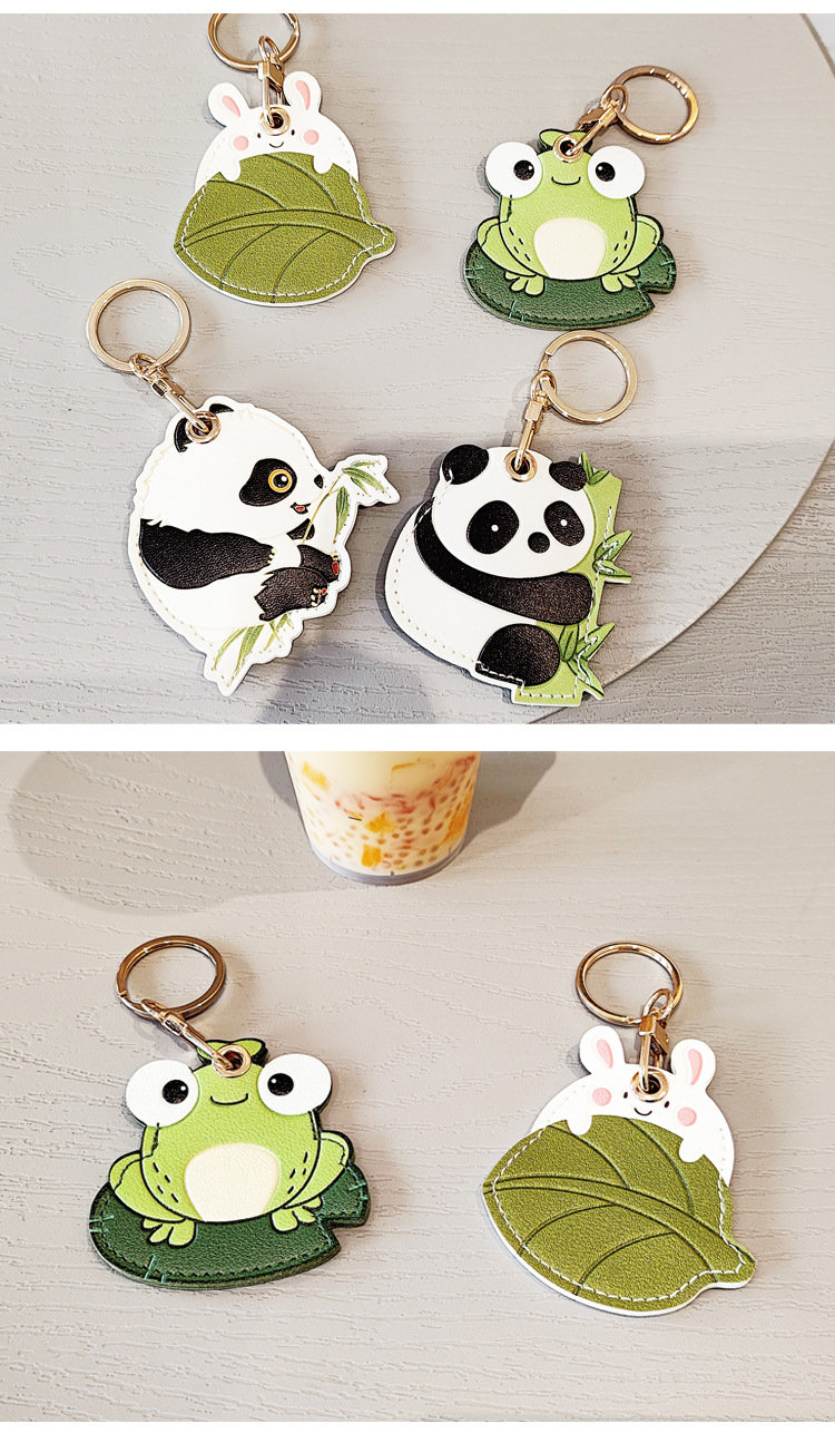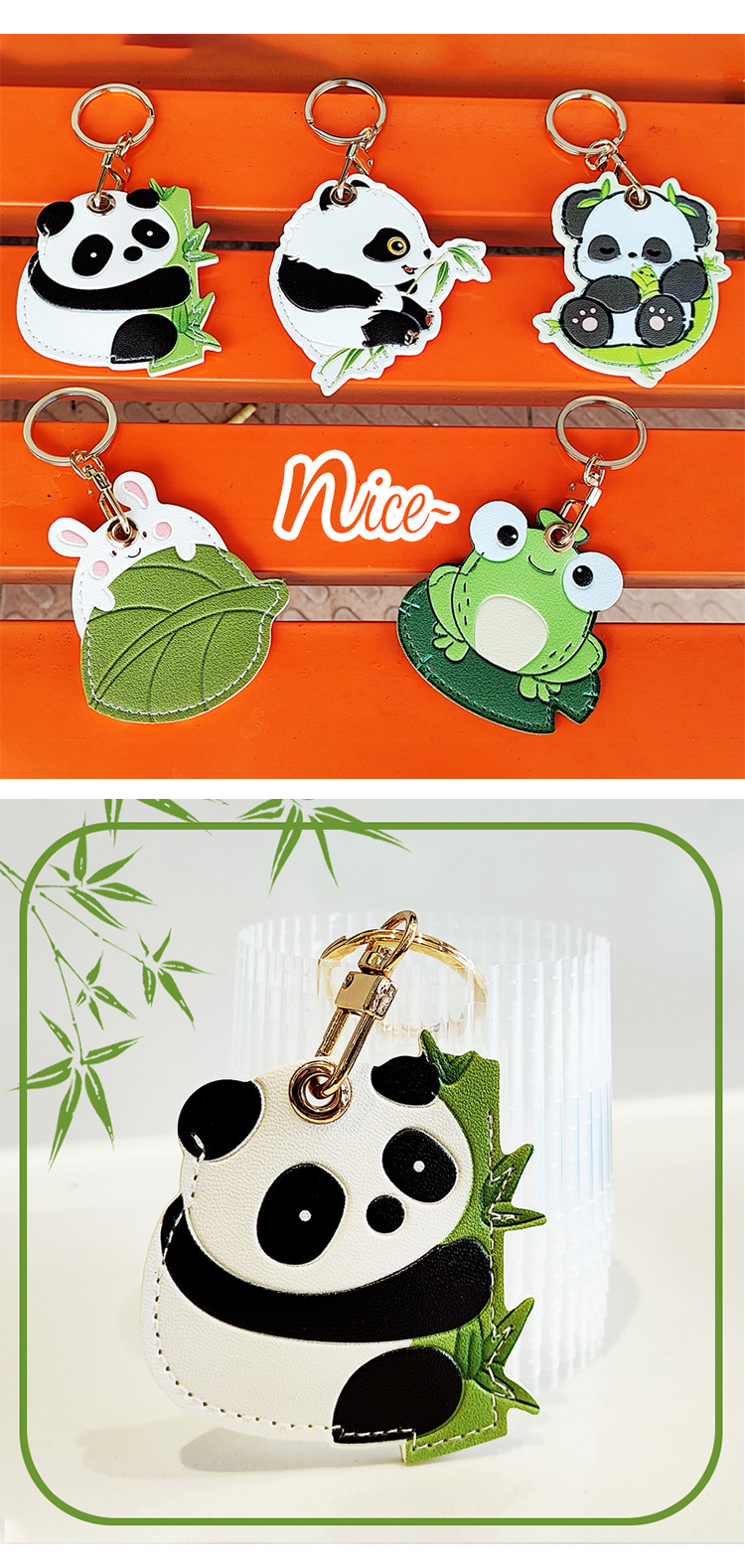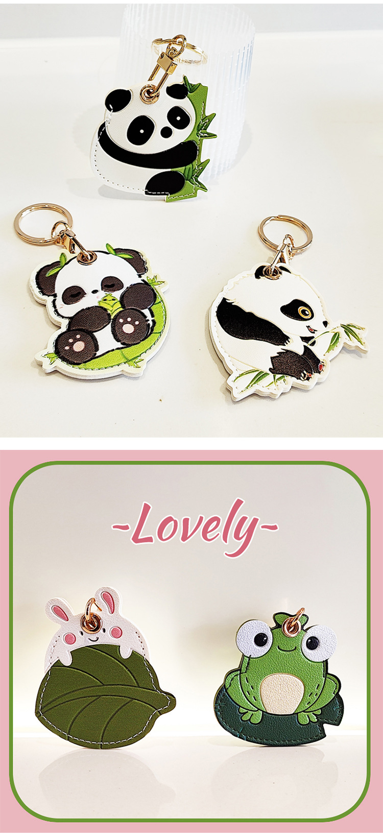 熊猫皮革钥匙扣门禁卡防丢皮套挂件airtag保护套包挂创意礼物定制