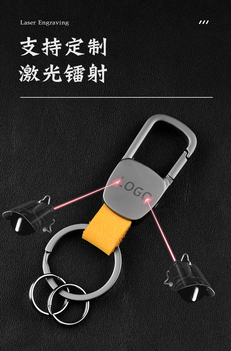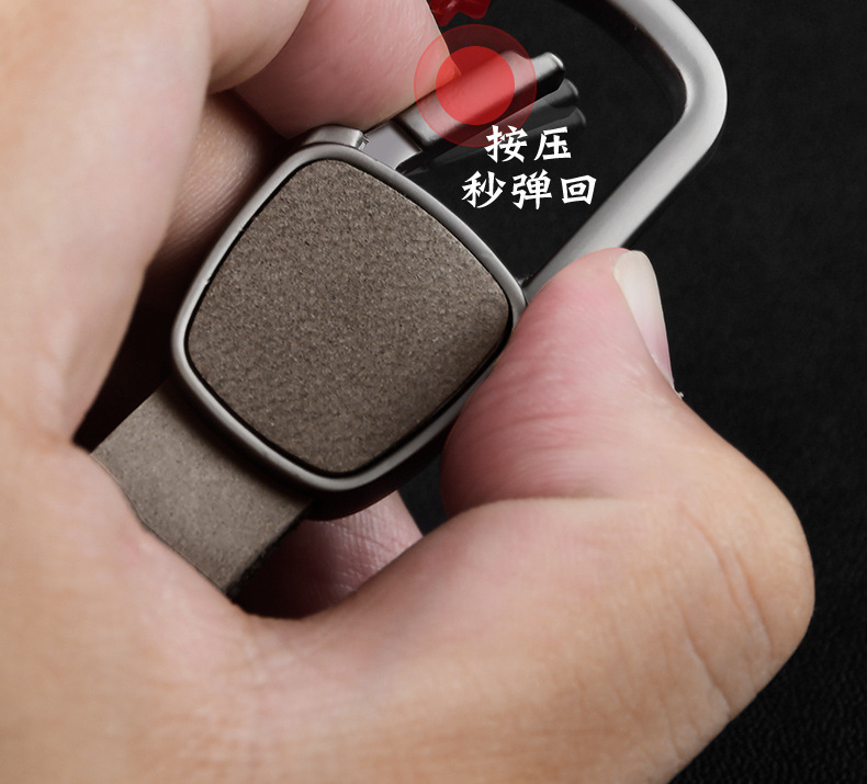 跨境磨砂真牛皮汽车挂件商务钥匙扣金属男女腰挂环车用刻字钥匙串