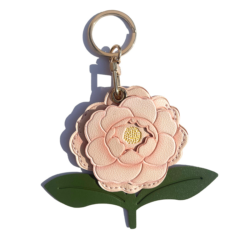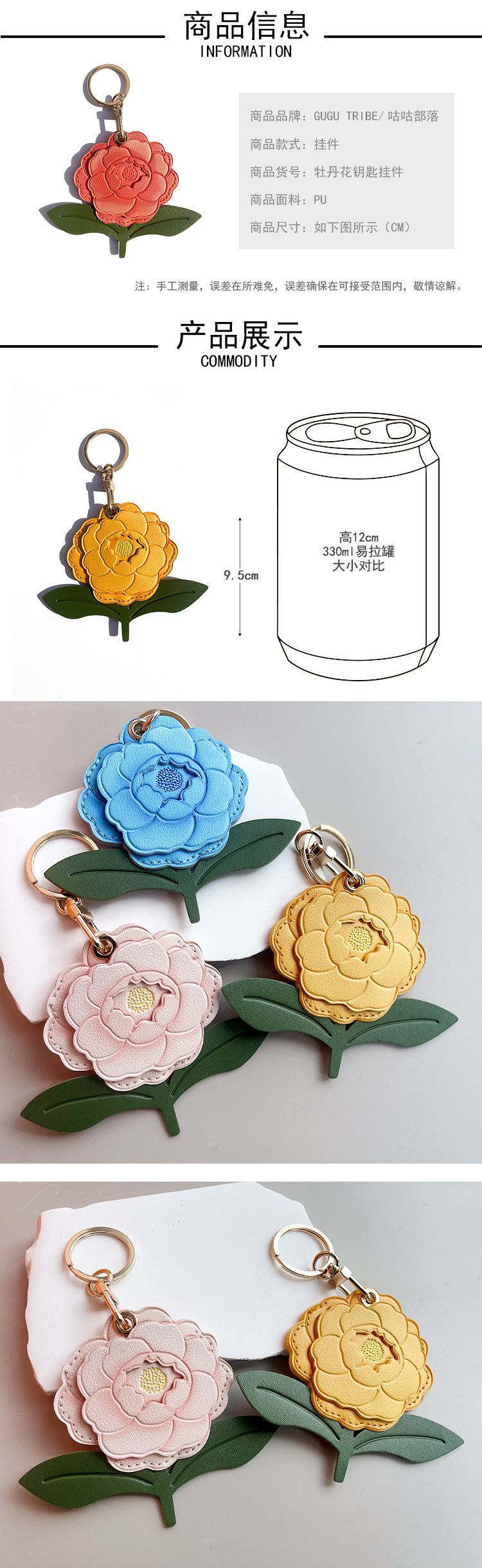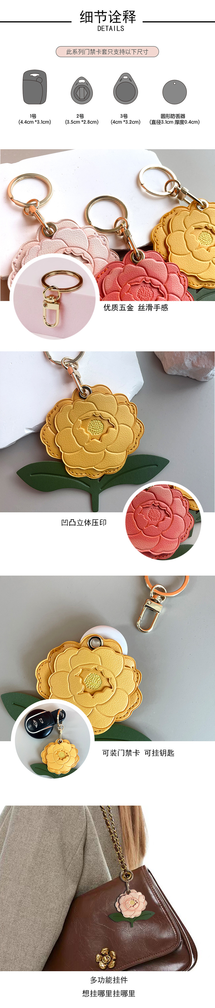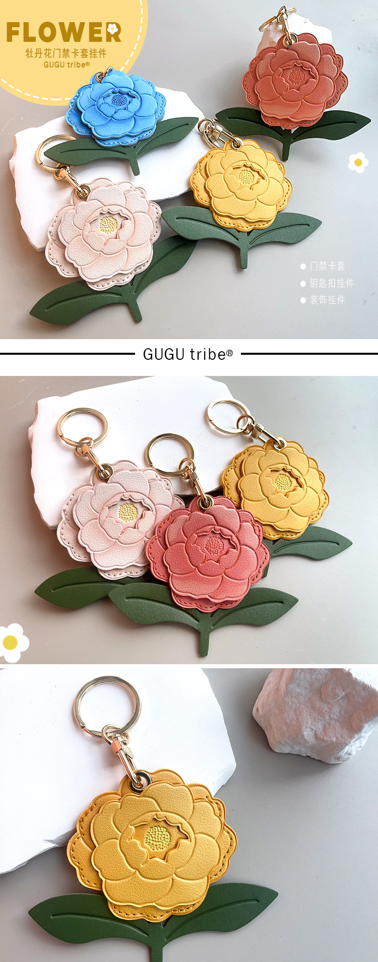 皮质高档次牡丹花皮革门禁卡套钥匙扣高颜值礼品挂件包包挂饰
