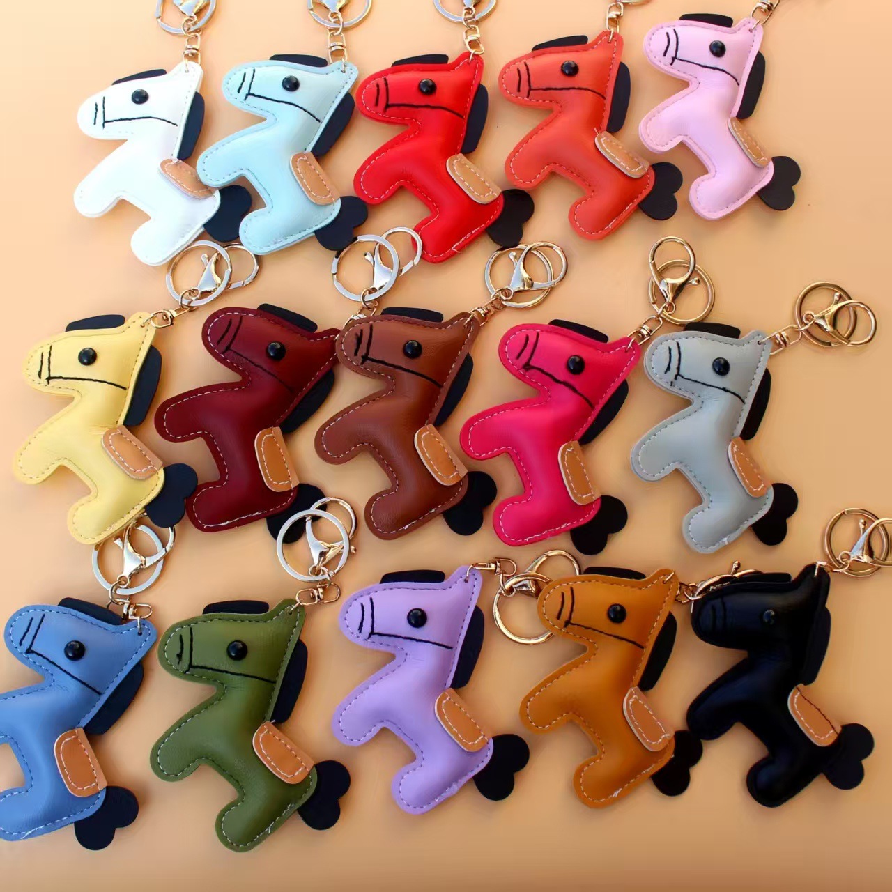 现货自产自销PU皮革百搭包包仿真皮小马挂件可爱潮流汽车钥匙挂件