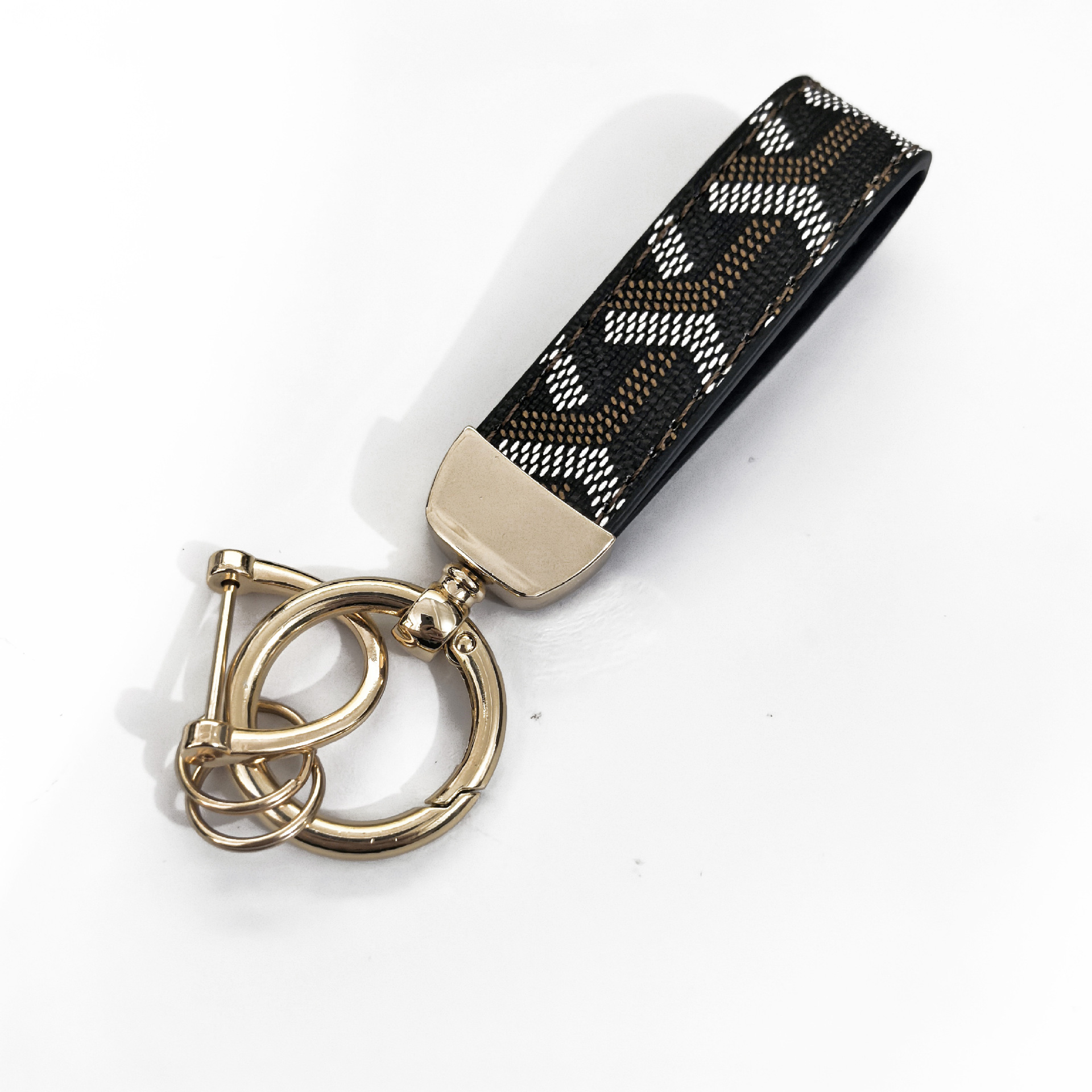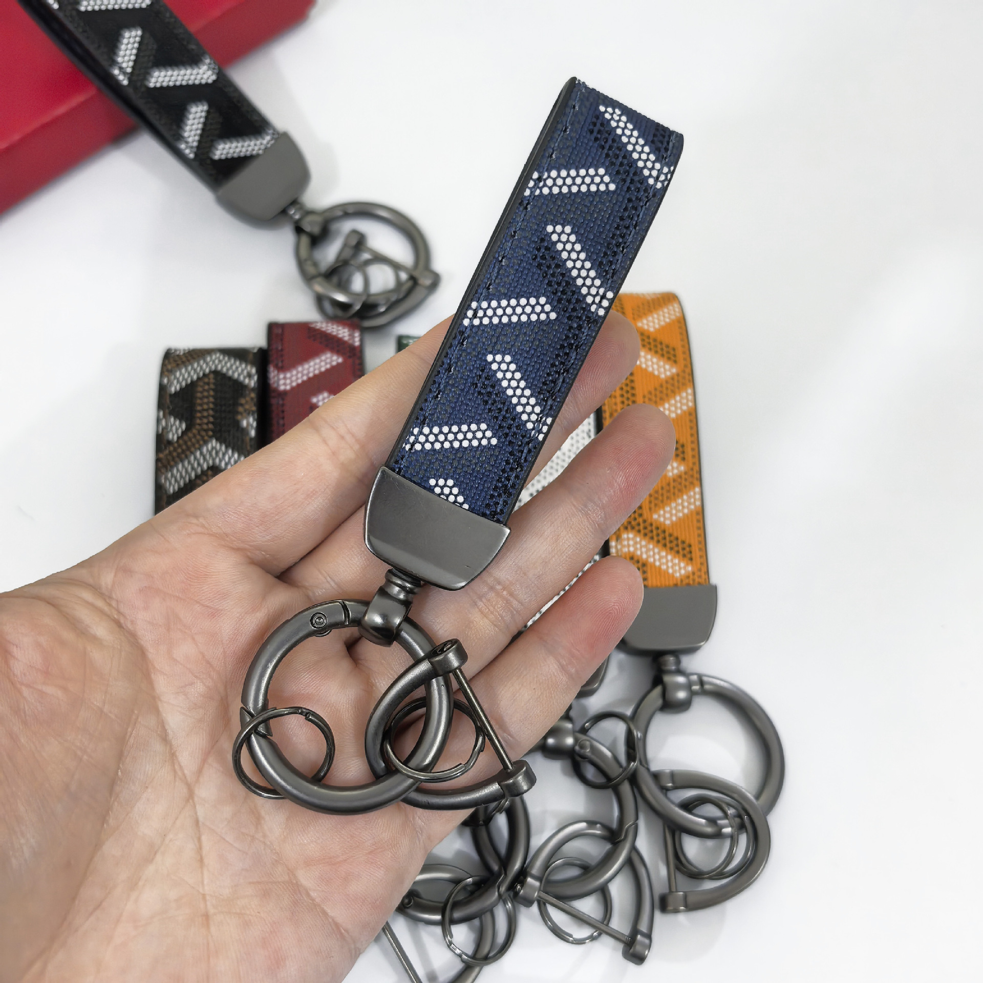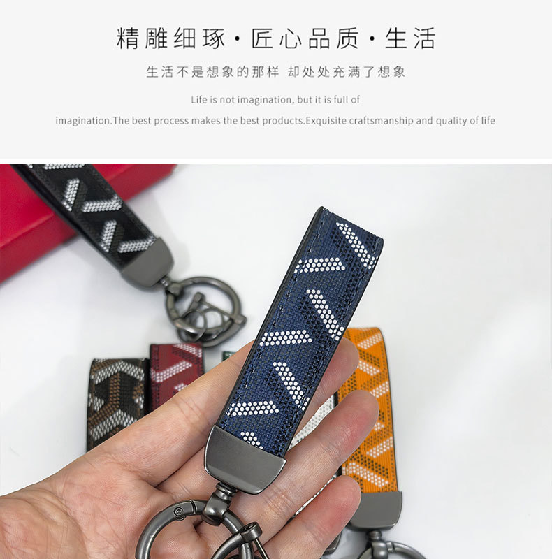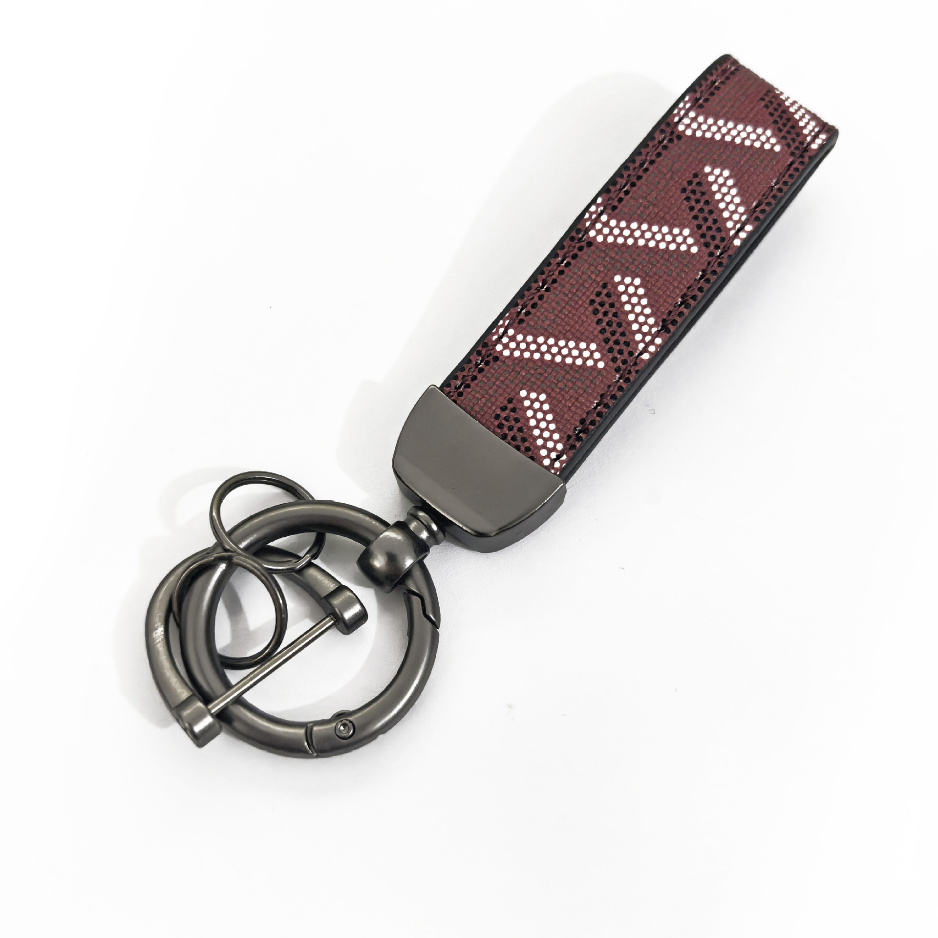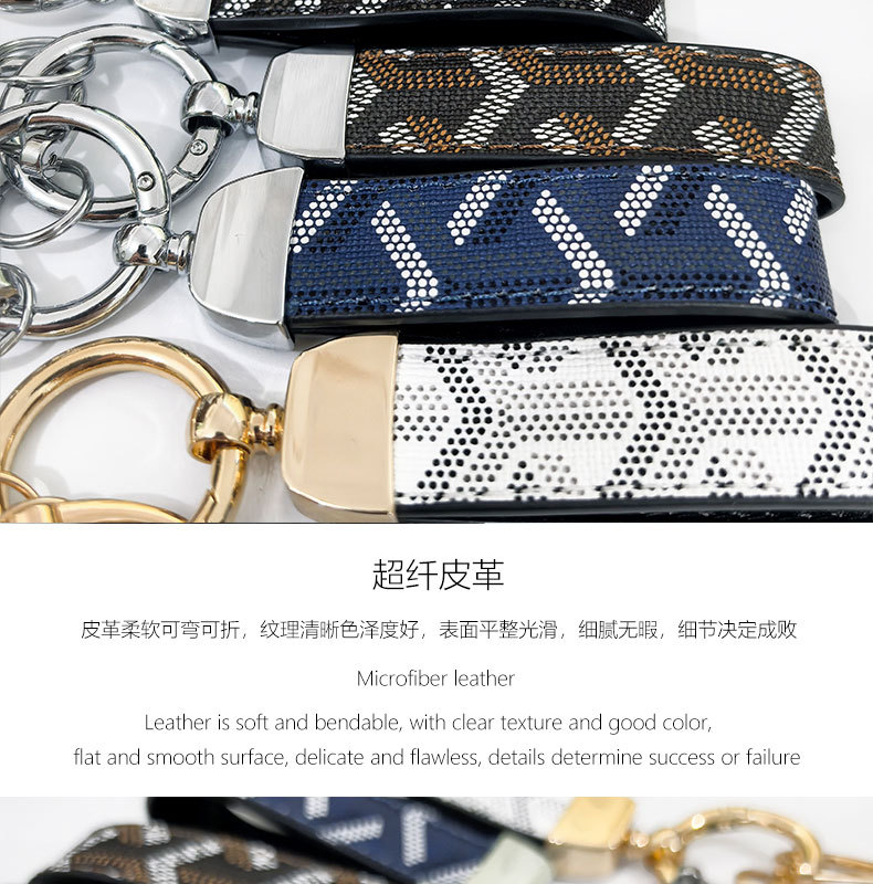 个性钥匙扣皮革格子花皮创意挂件皮绳箱包配饰家用多功能防丢礼品