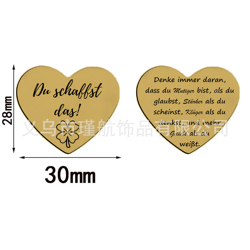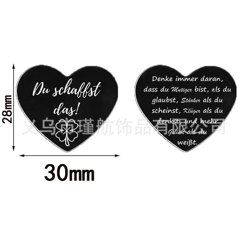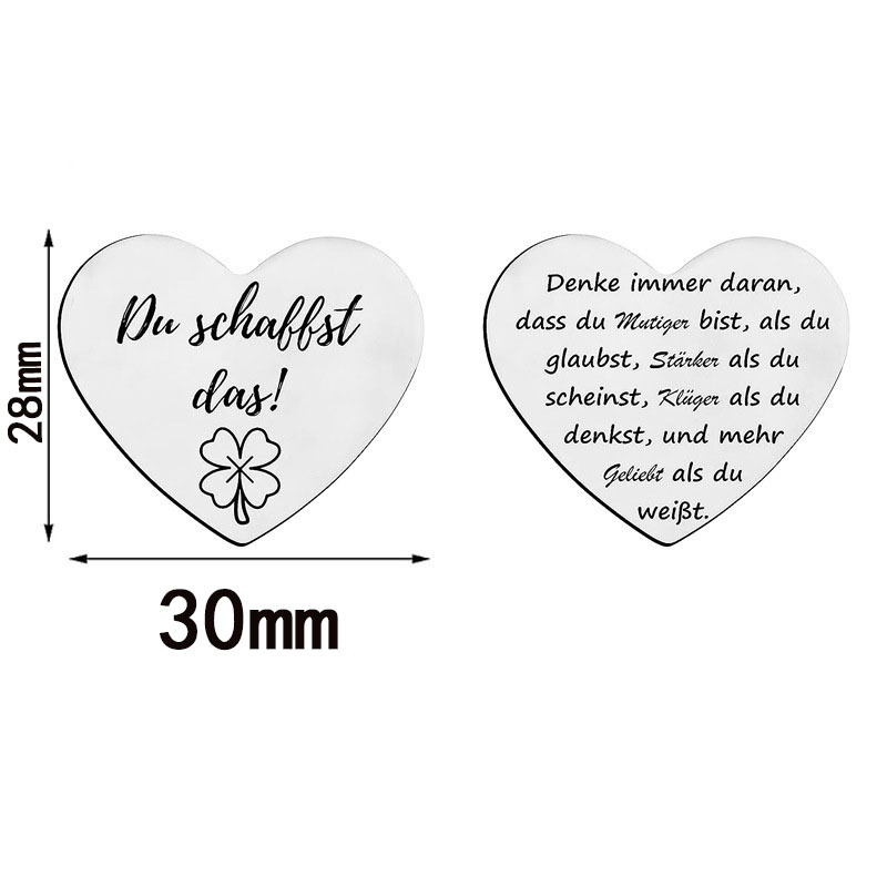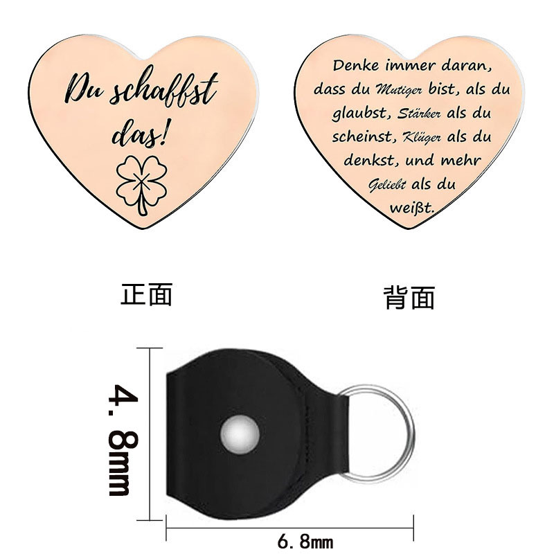 Du schaffst das爱心玫瑰金色钢色德语决策币皮革钥匙扣 双面刻字