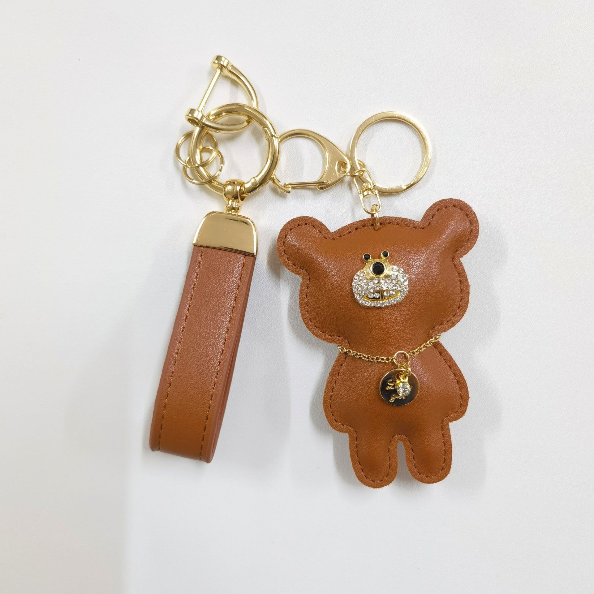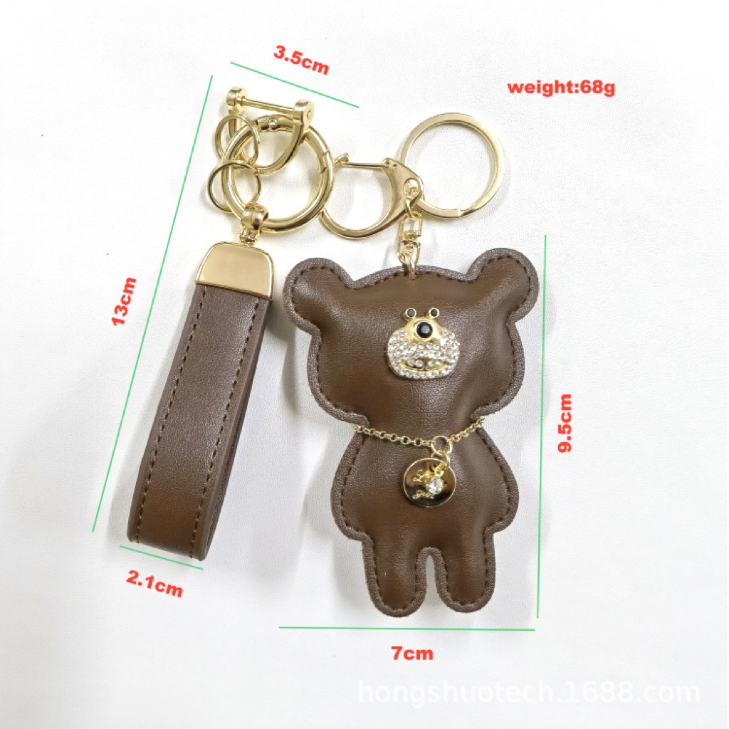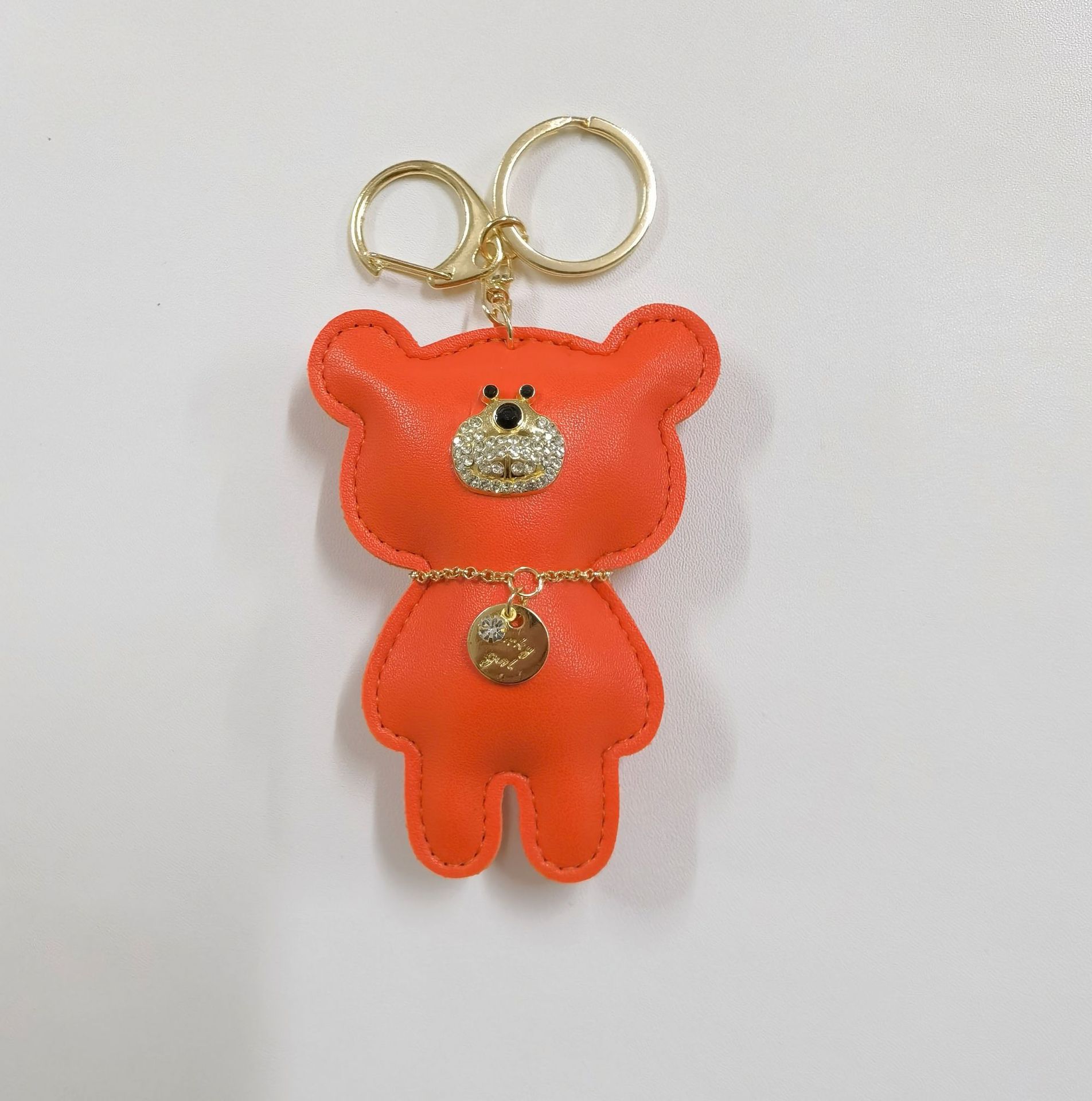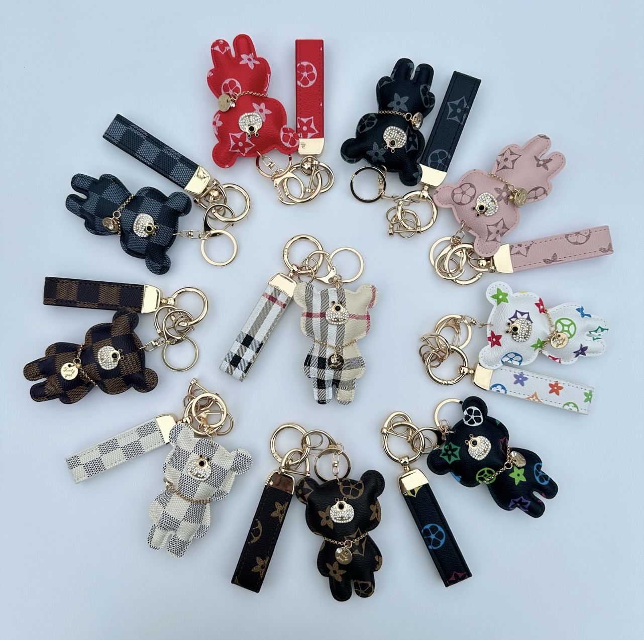 潮流老花小熊皮皮质钥匙扣挂件时尚包包挂件环保料汽车钥匙扣钻熊