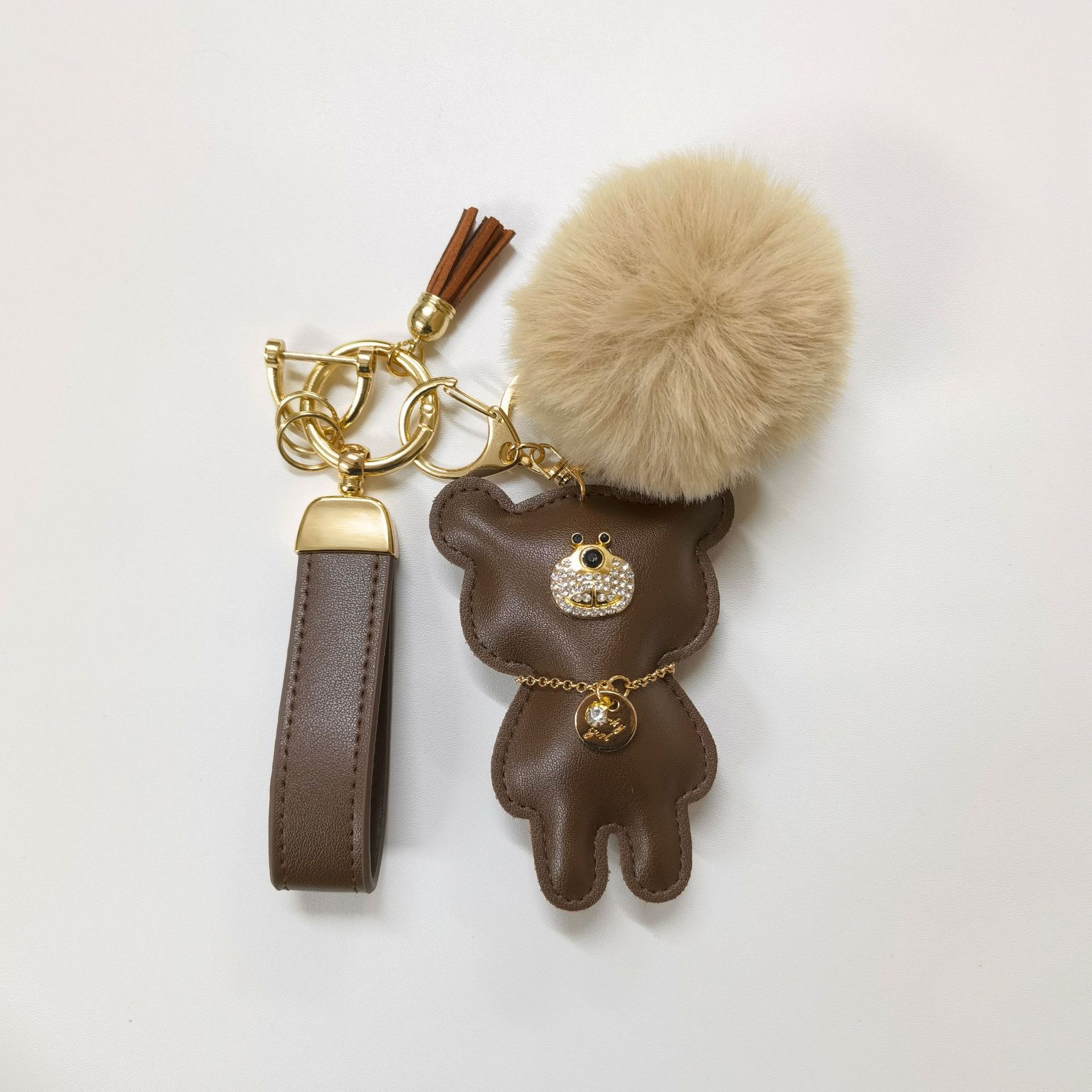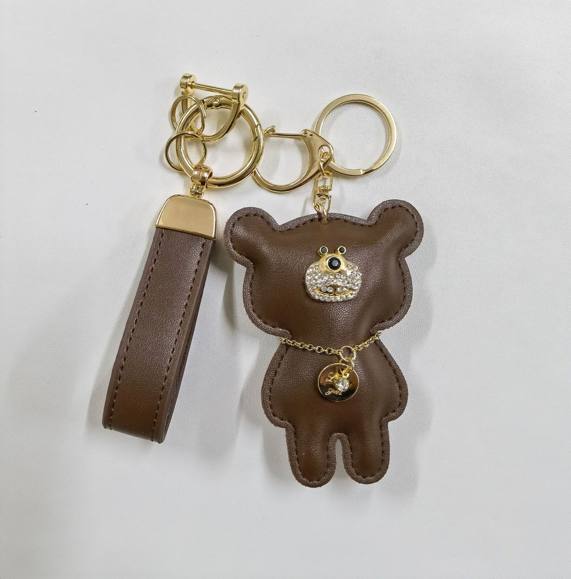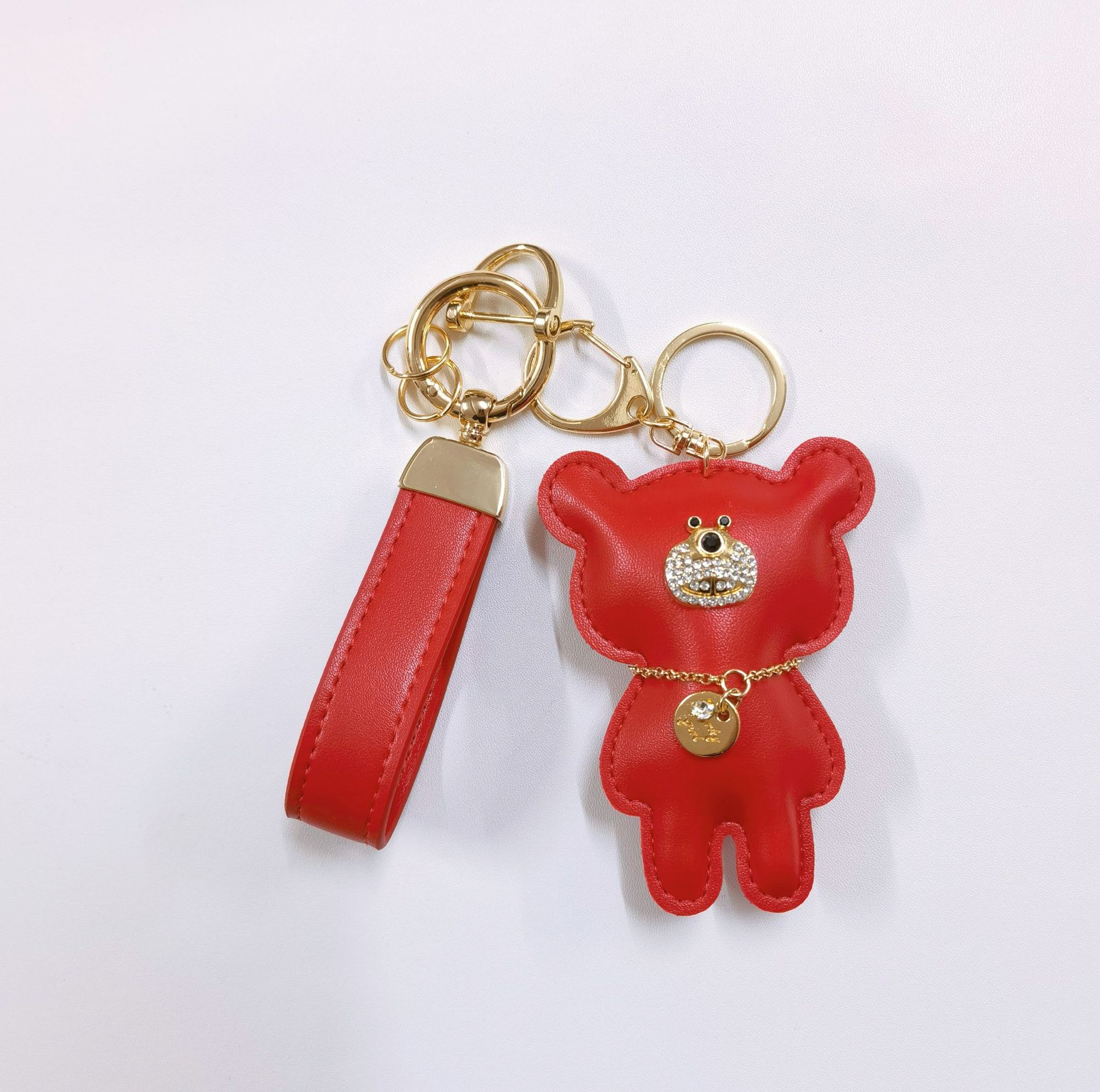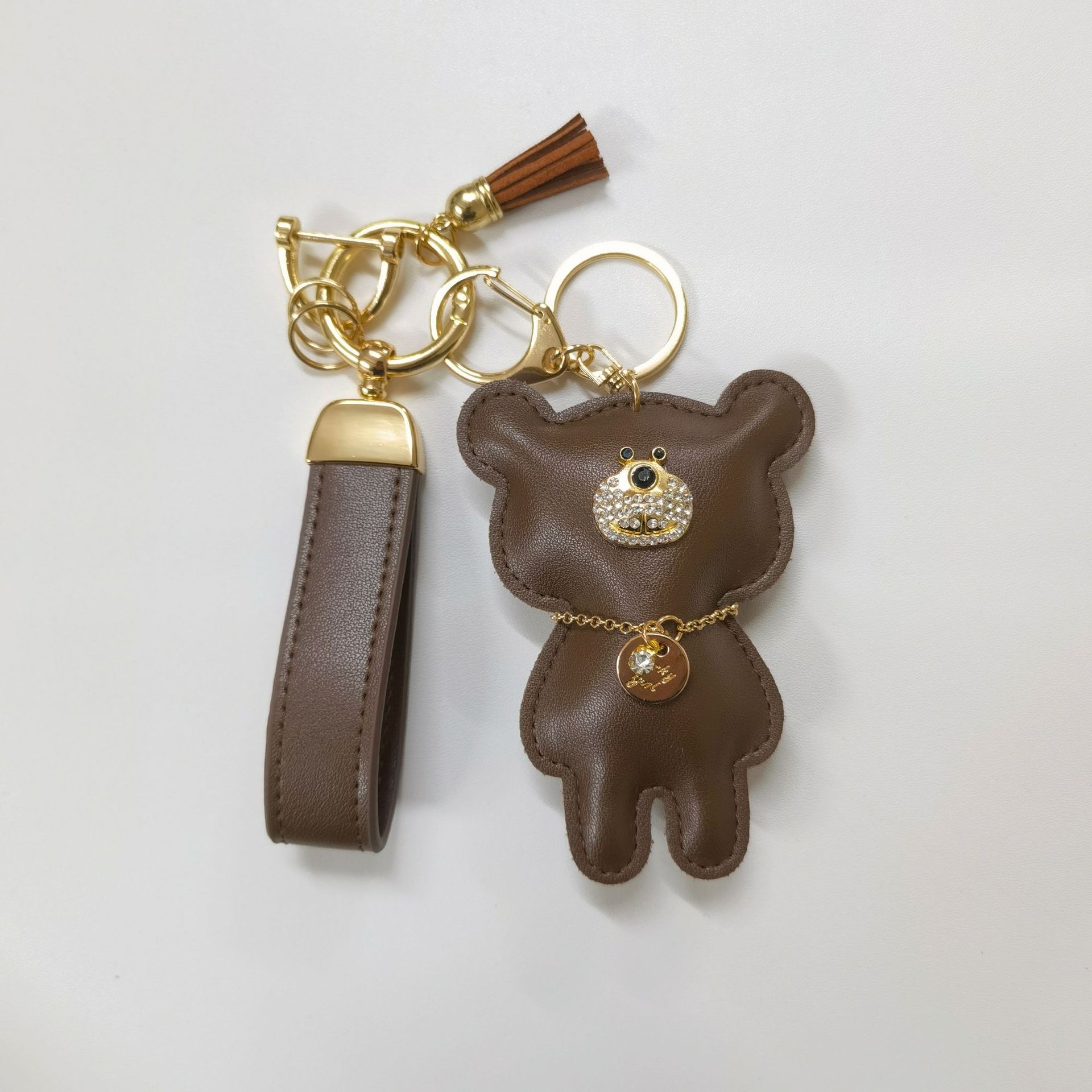 潮流老花小熊皮皮质钥匙扣挂件时尚包包挂件环保料汽车钥匙扣钻熊