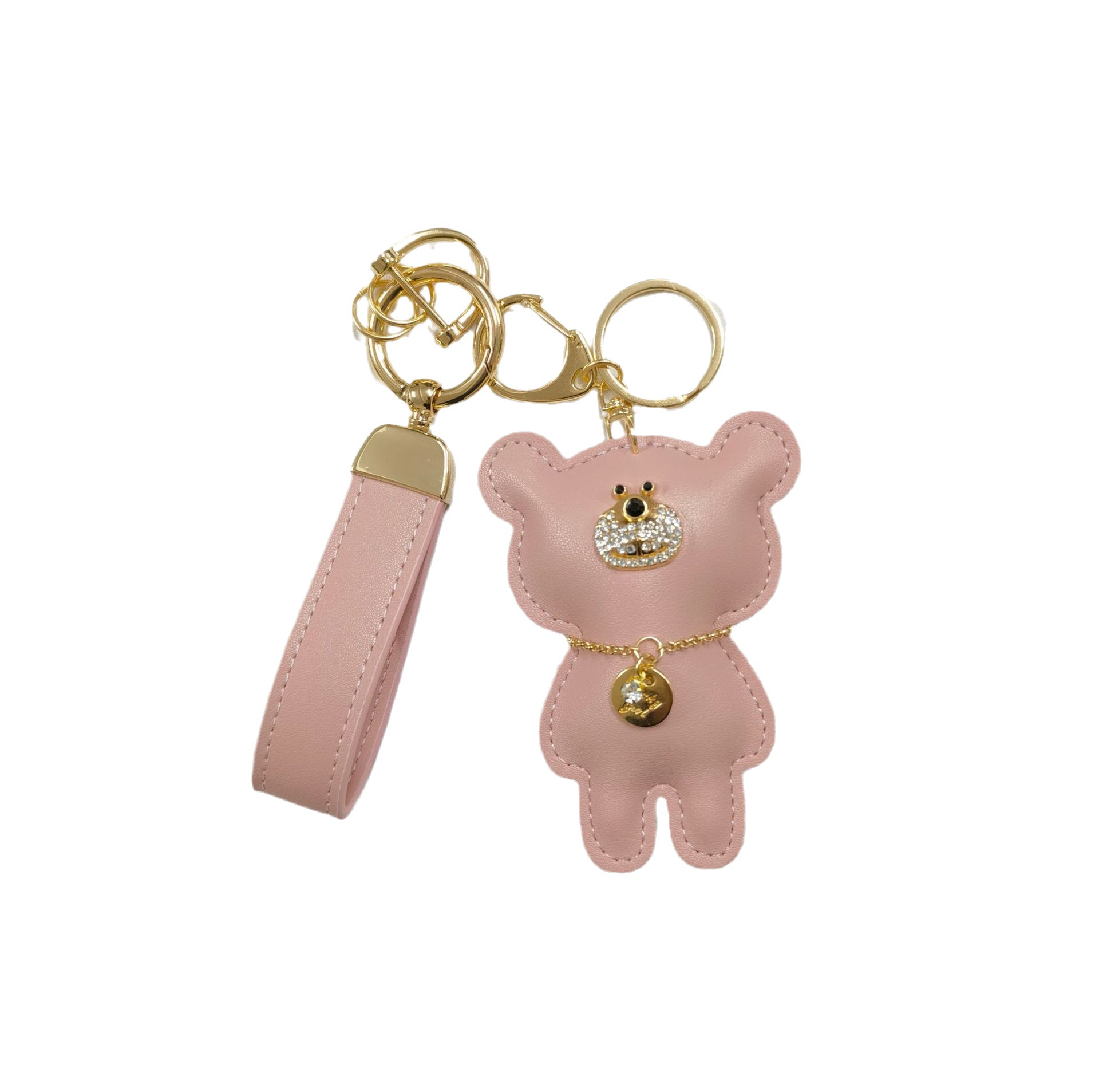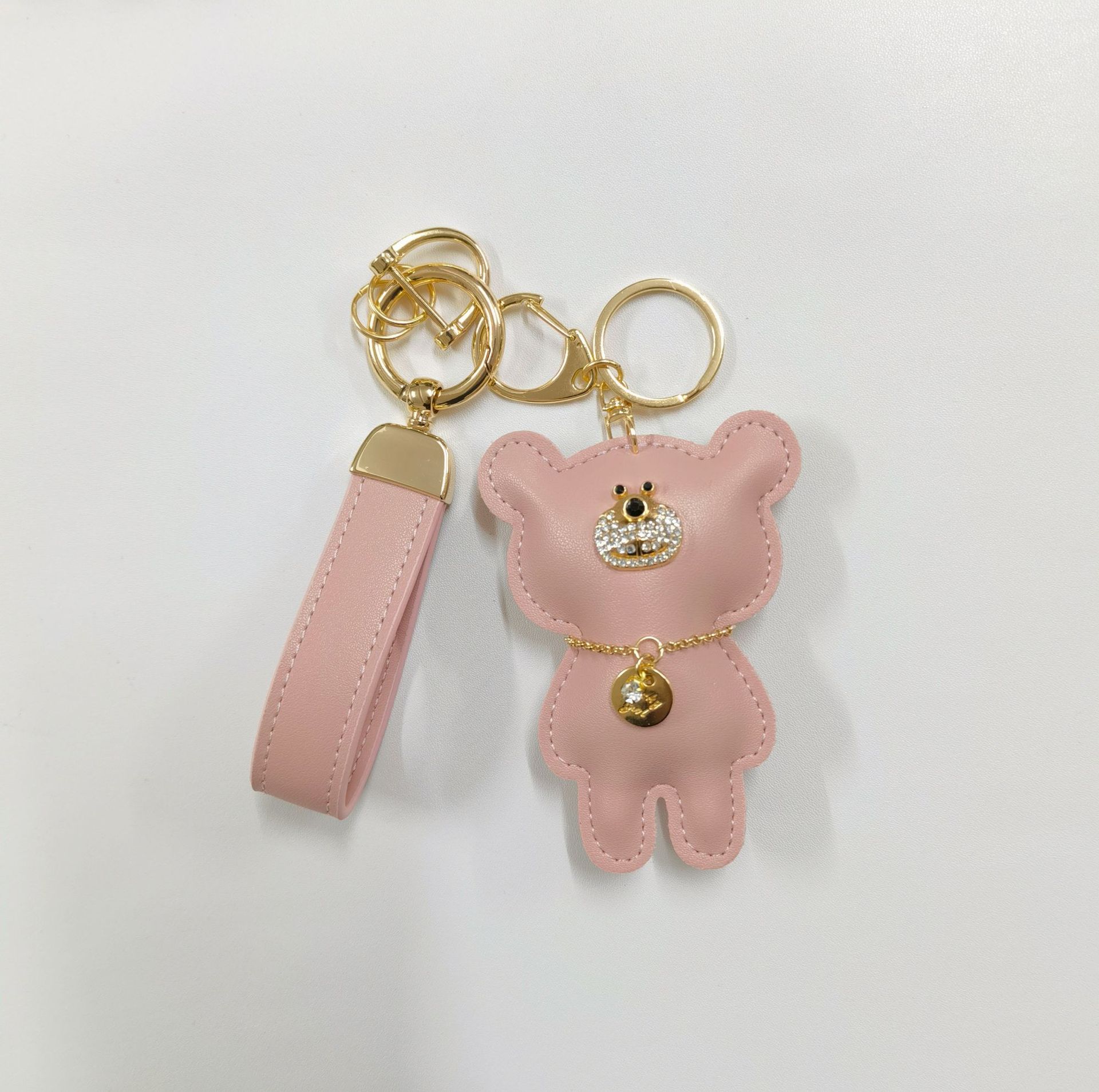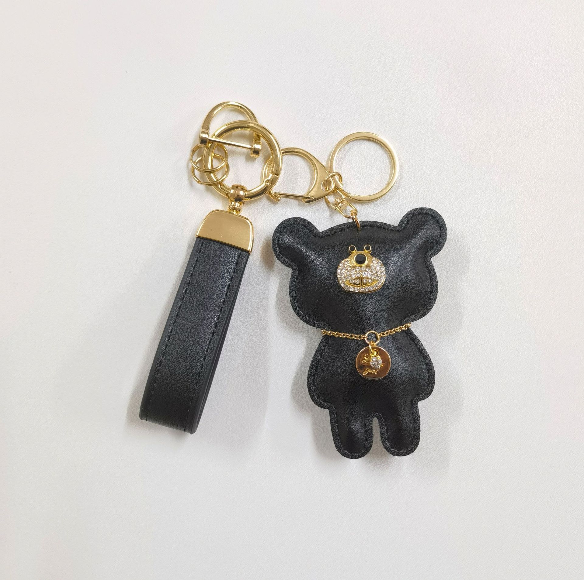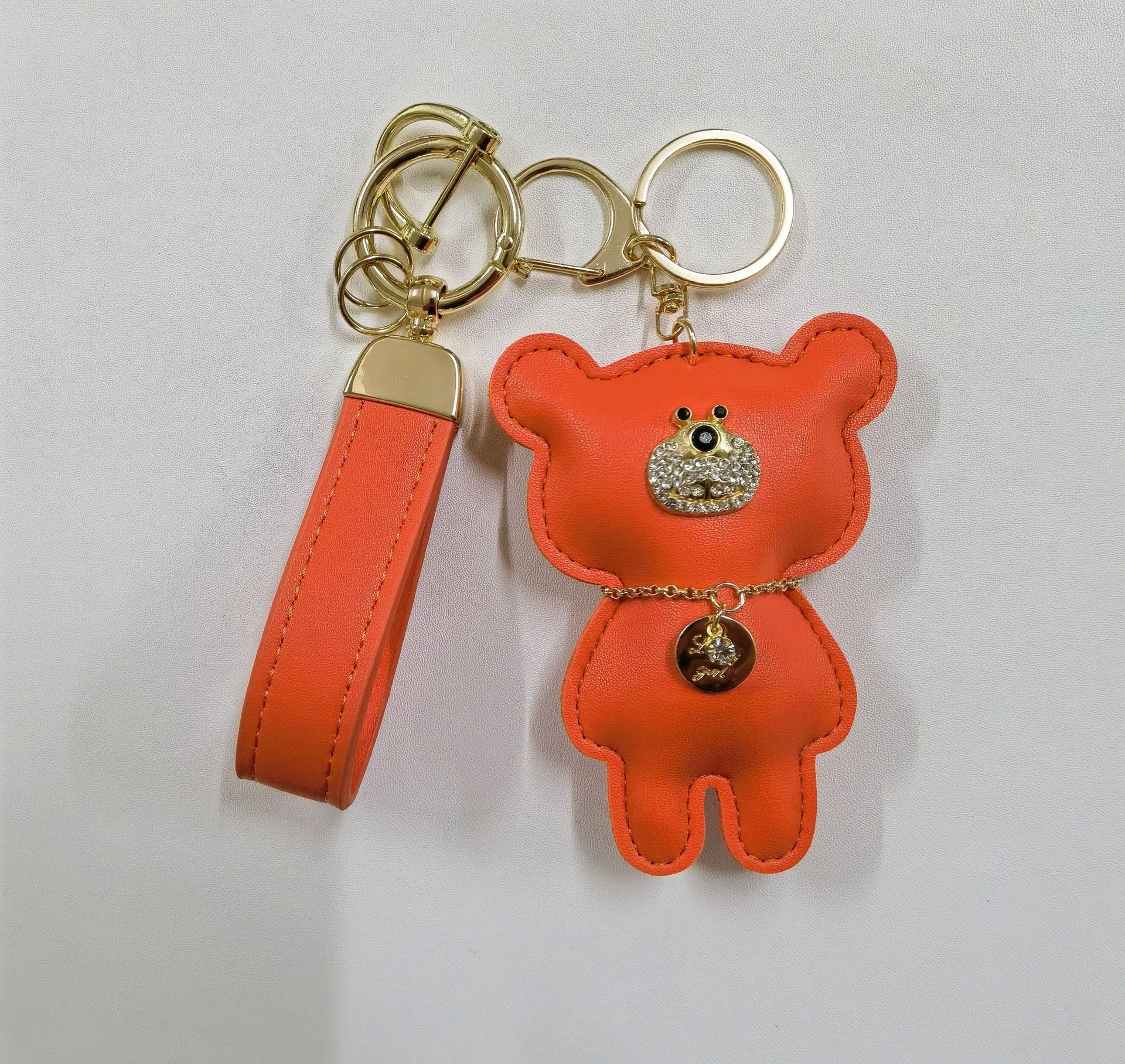 潮流老花小熊皮皮质钥匙扣挂件时尚包包挂件环保料汽车钥匙扣钻熊