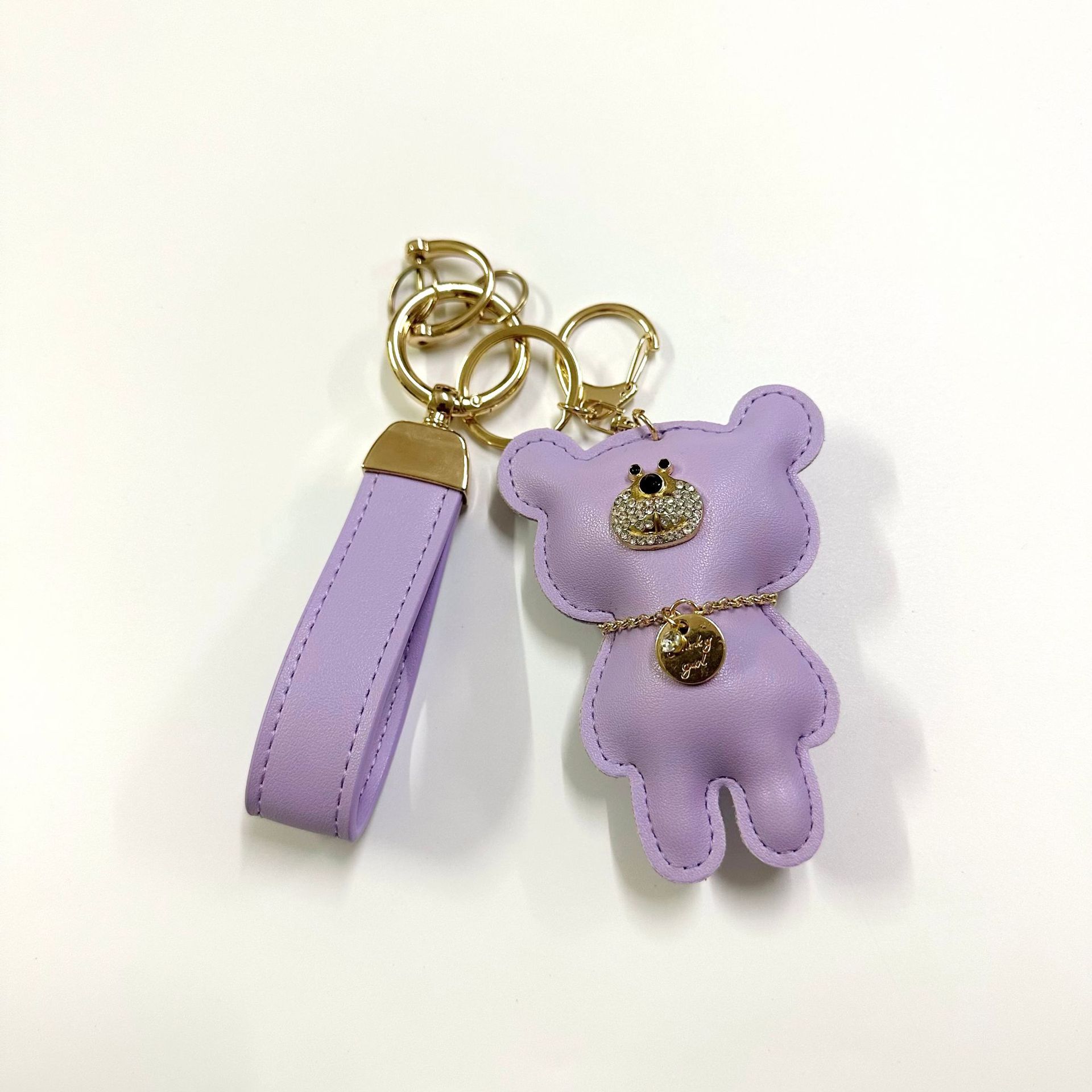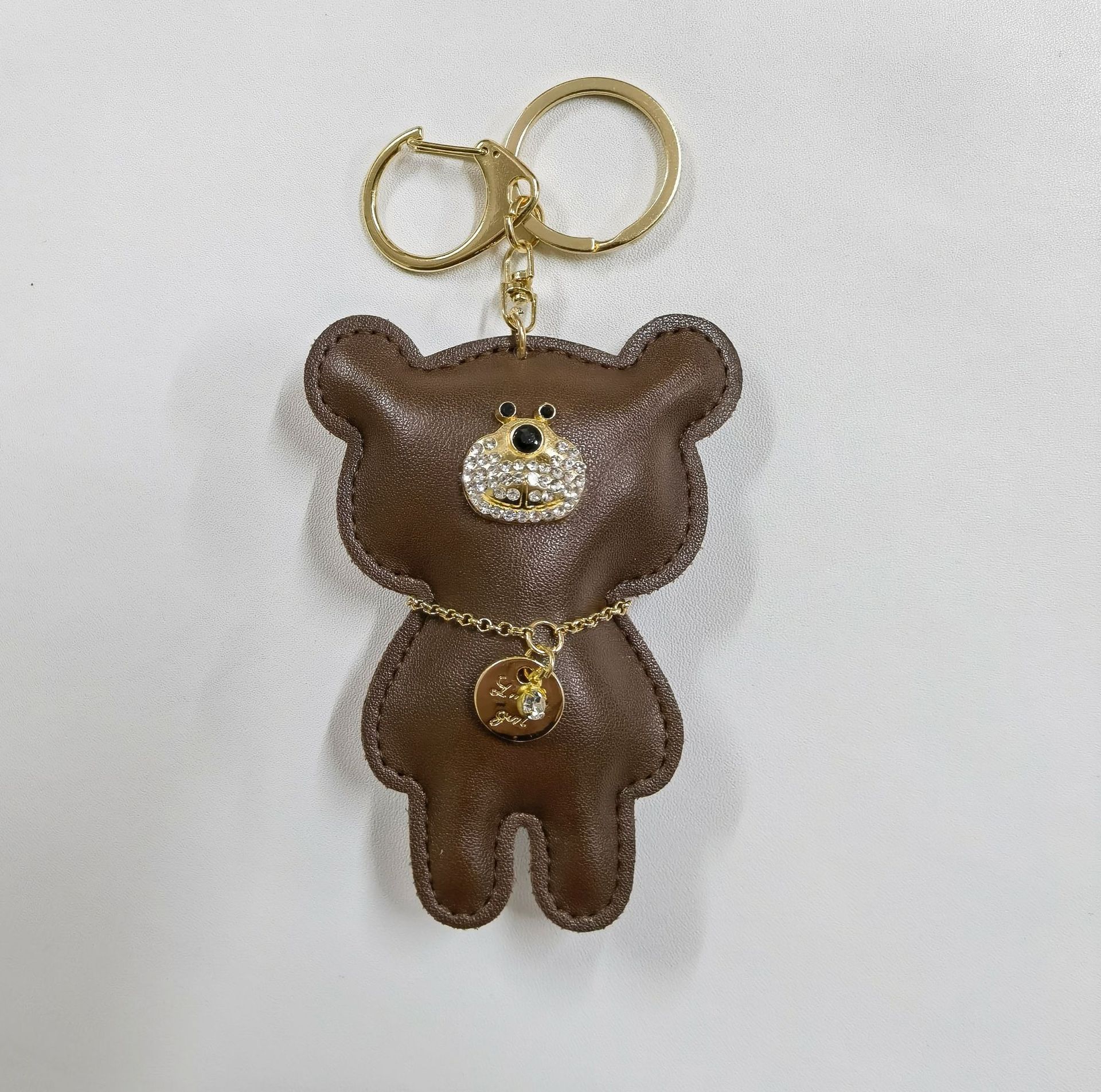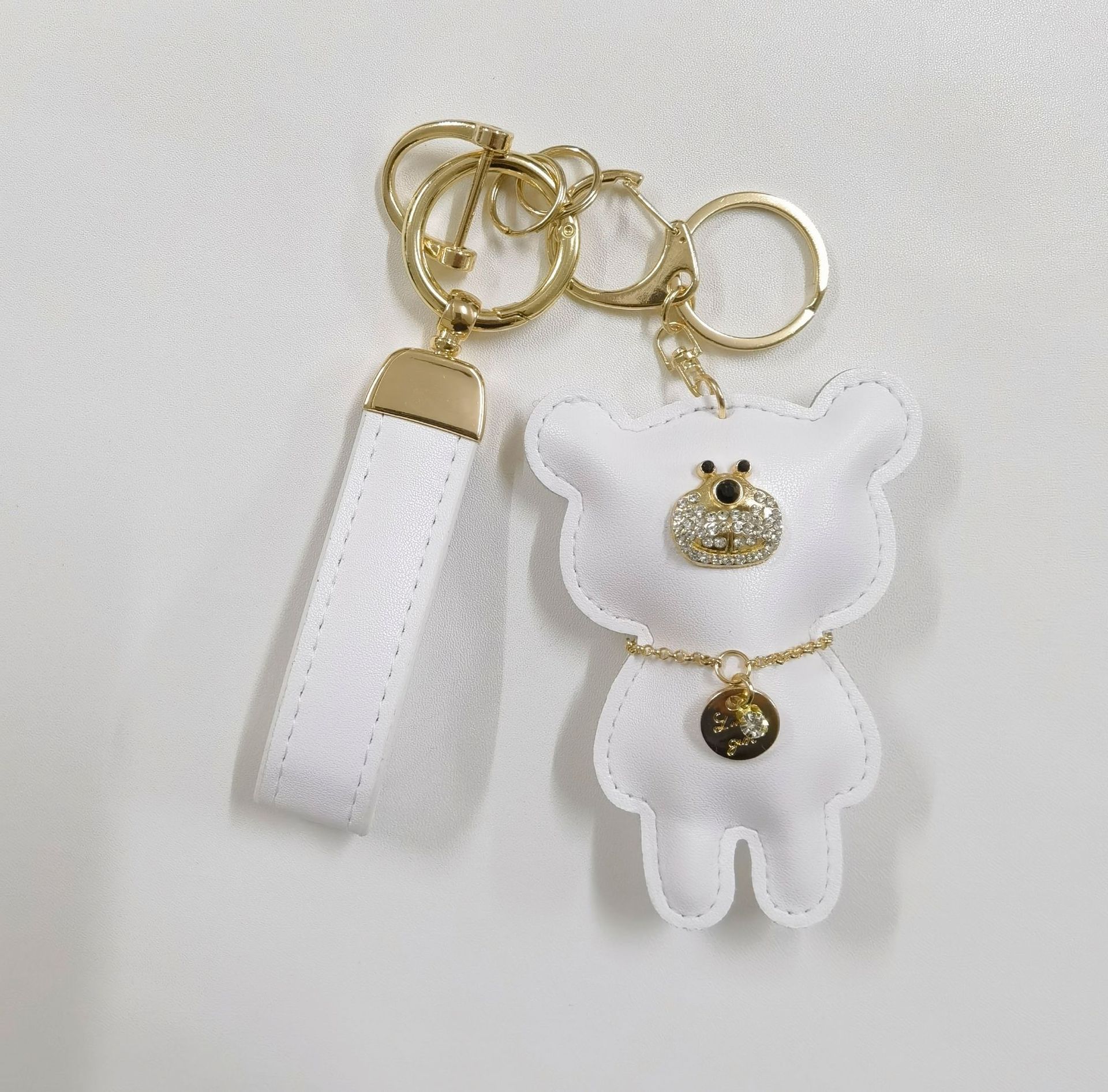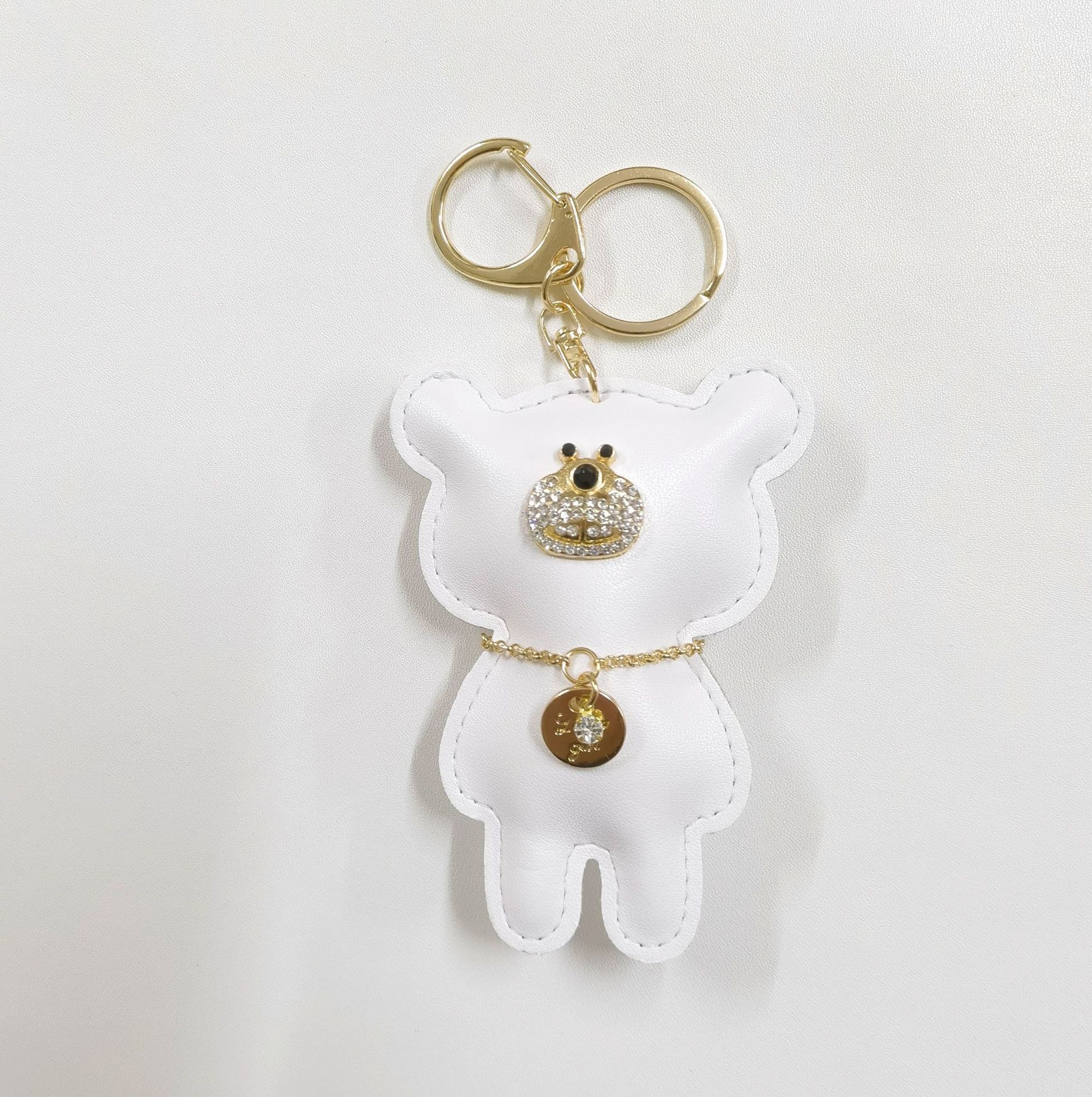 潮流老花小熊皮皮质钥匙扣挂件时尚包包挂件环保料汽车钥匙扣钻熊