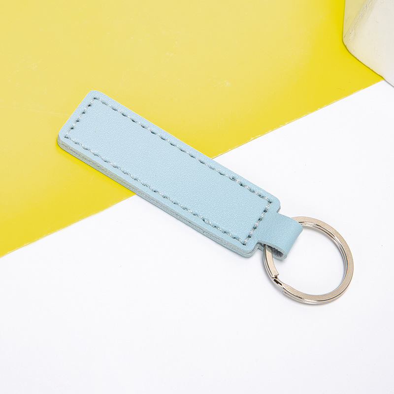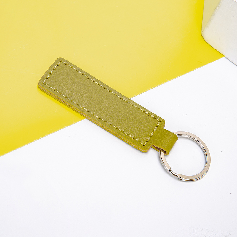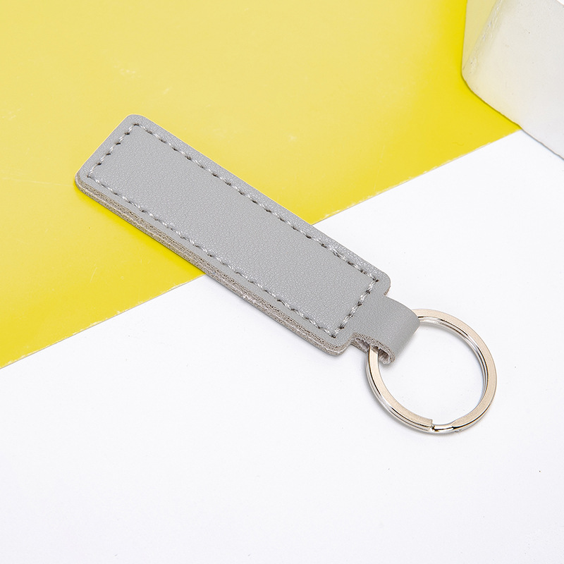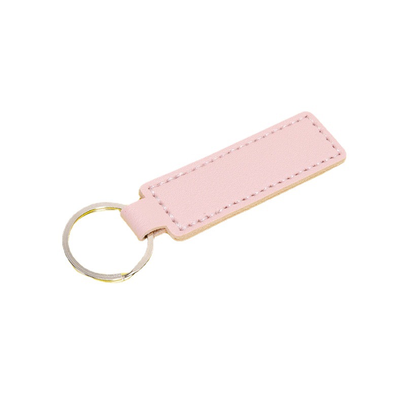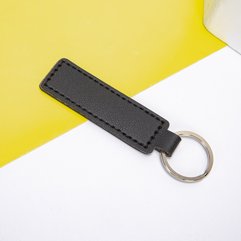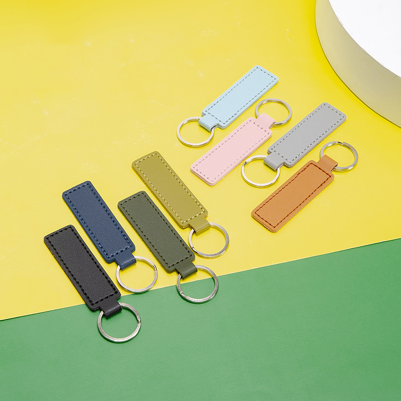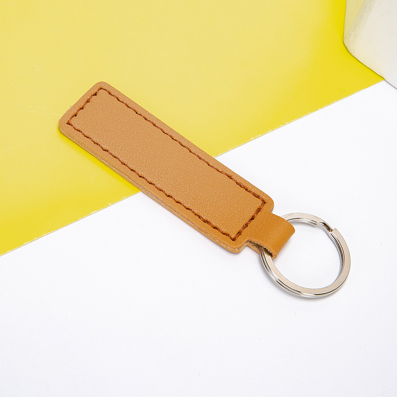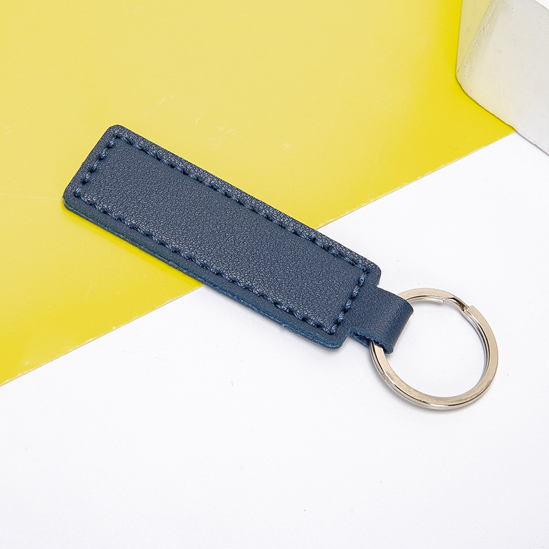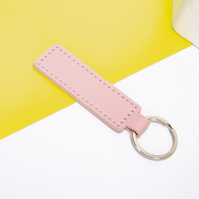PU皮革钥匙扣双面车线包包金属挂件商务礼品可印logo简约皮质挂件