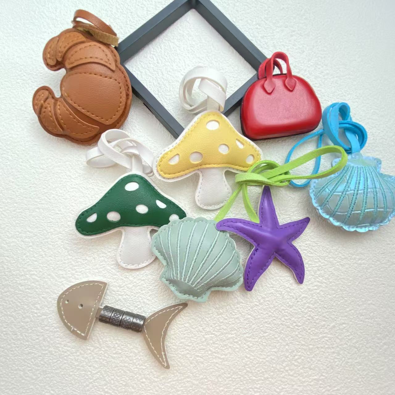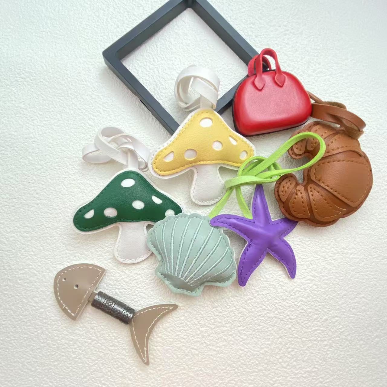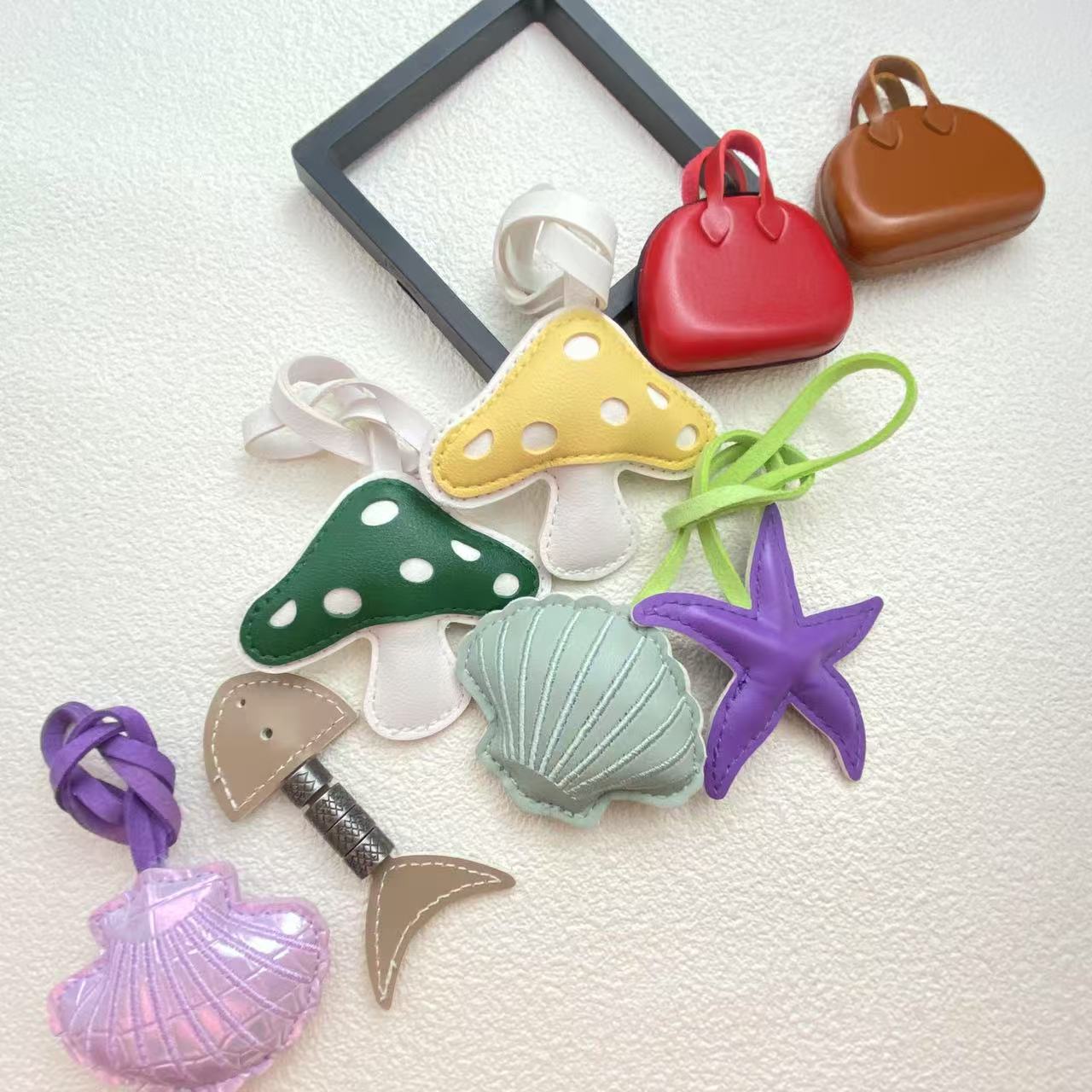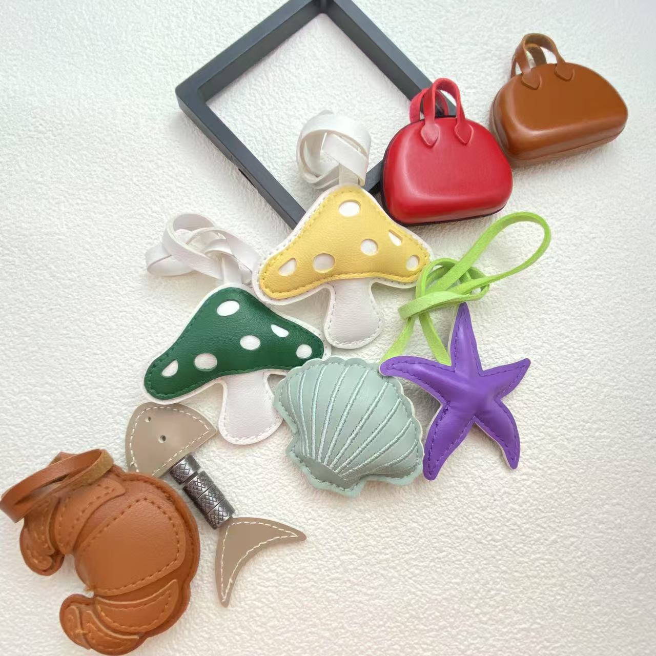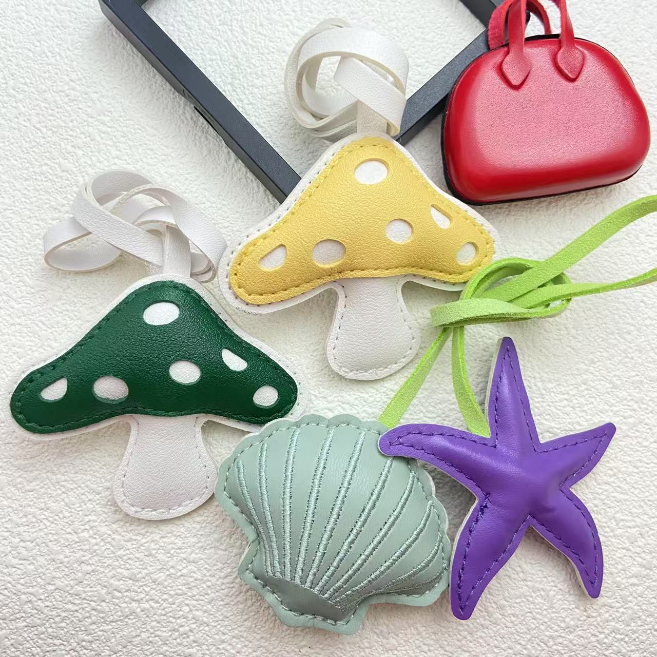 包包钥匙扣挂件DIY饰品配件仿真蘑菇贝壳花朵皮革挂饰挂牛角吊坠