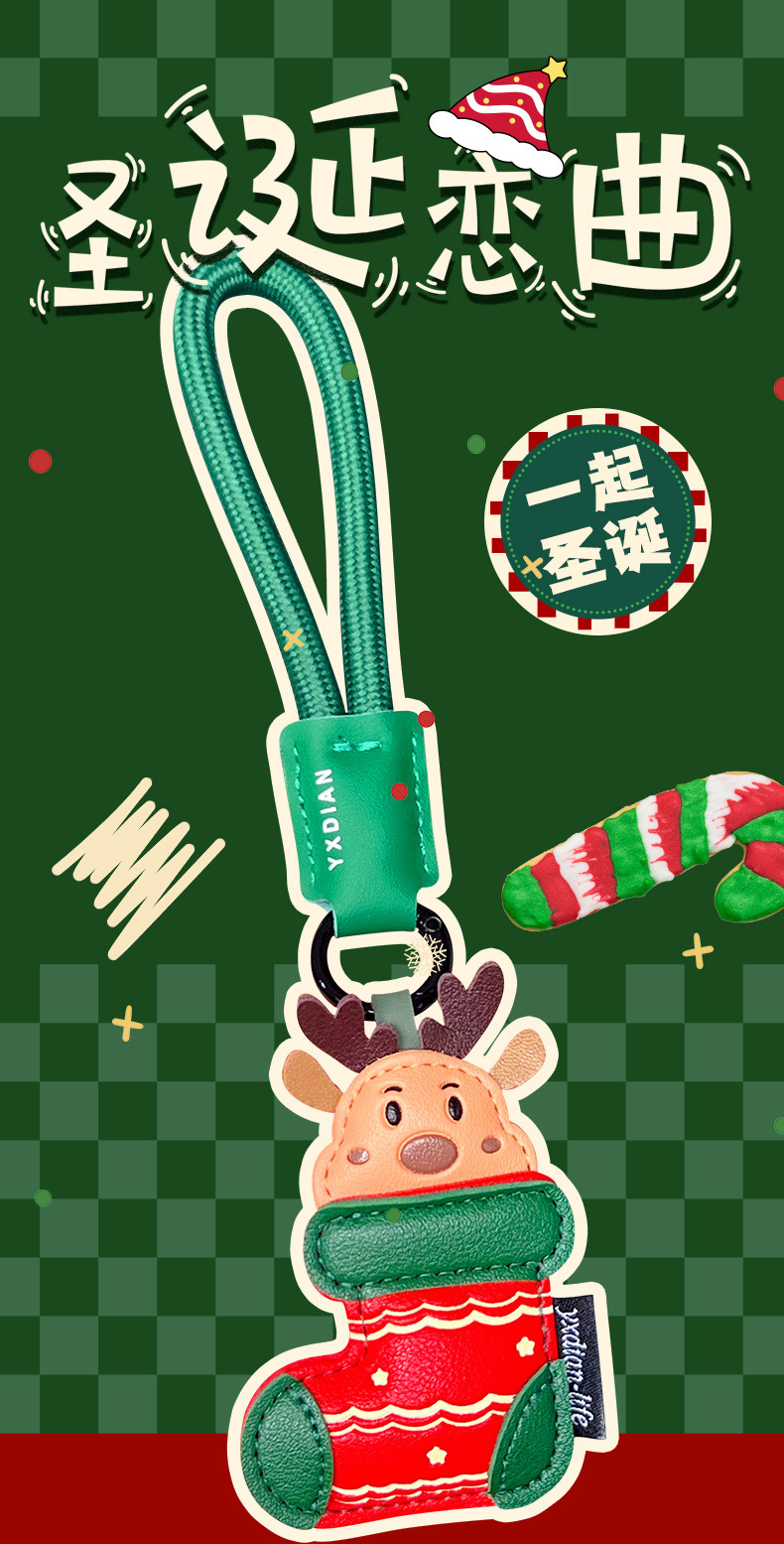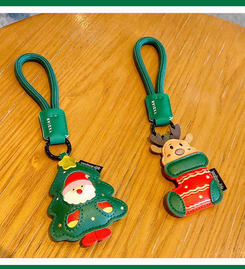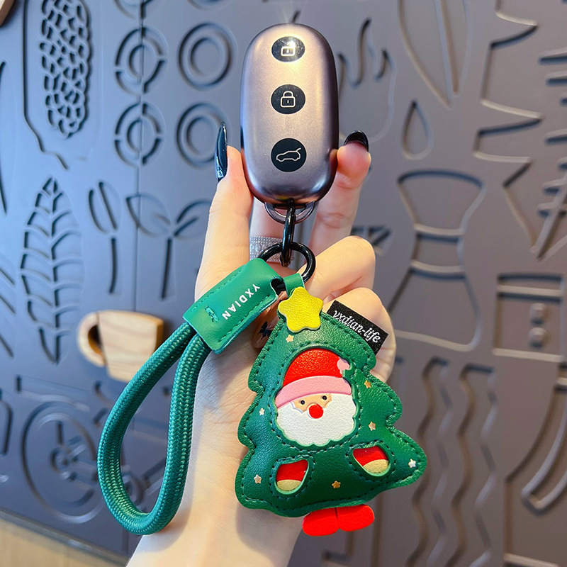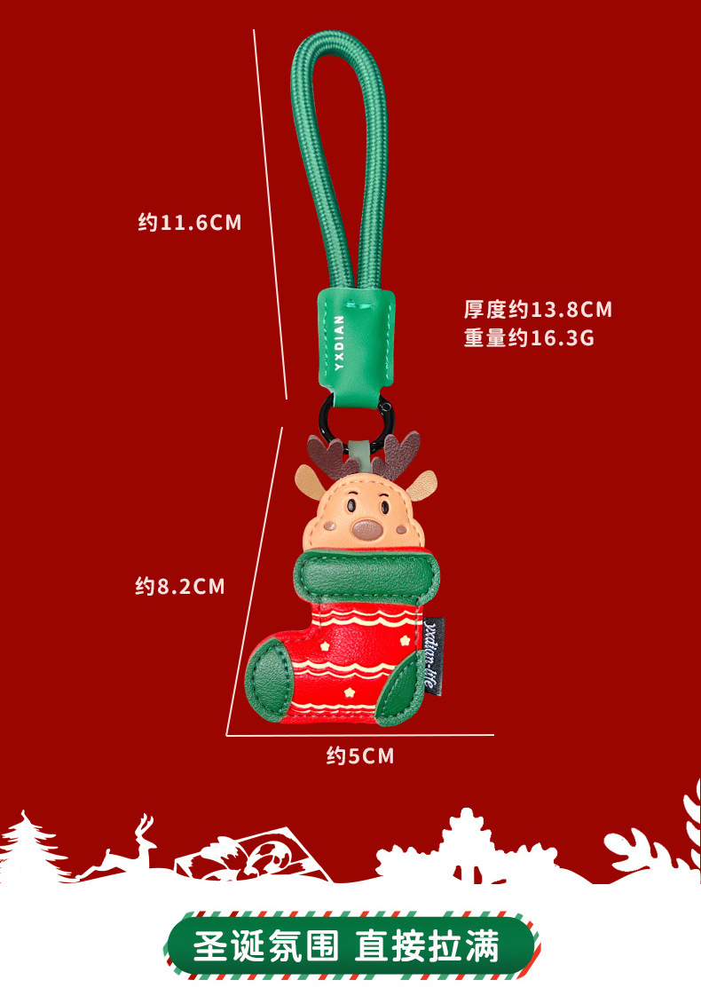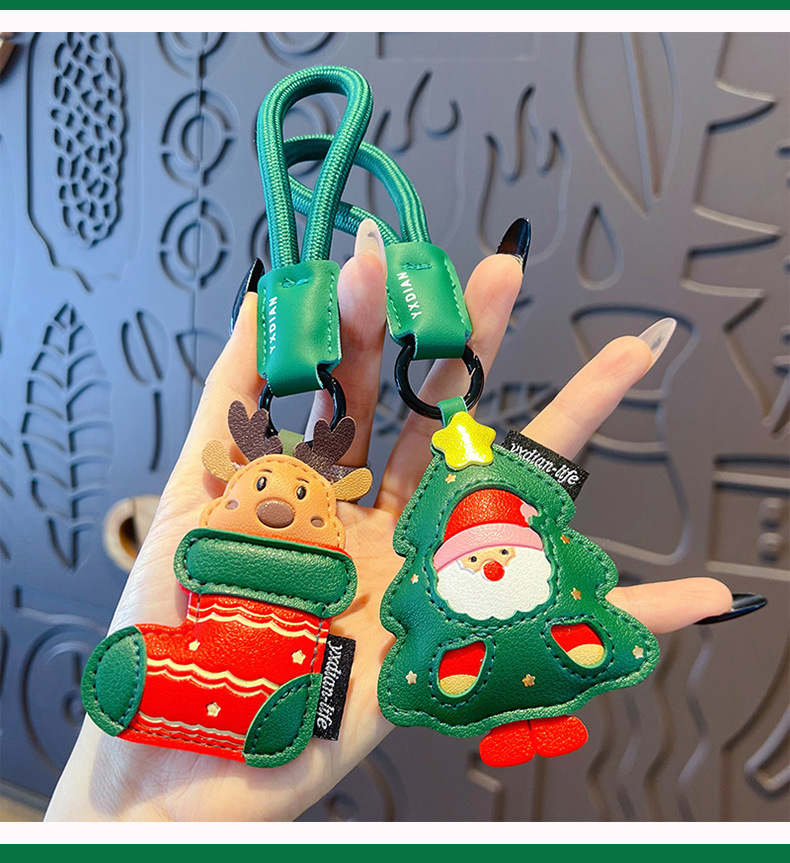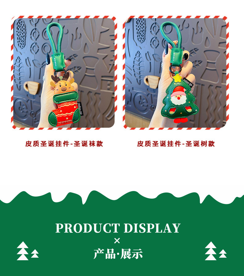 创意PU皮革圣诞树麋鹿钥匙扣公仔挂件情侣包包钥匙链圣诞节小礼品