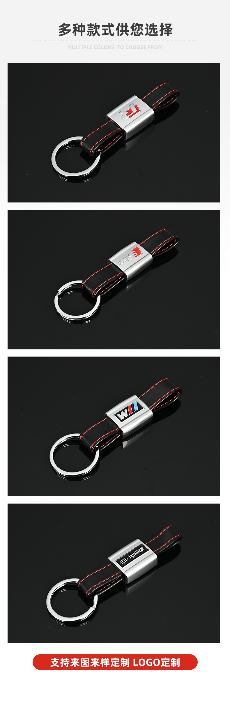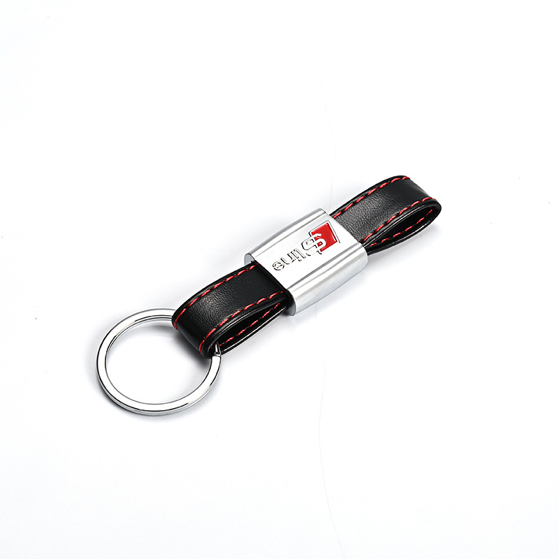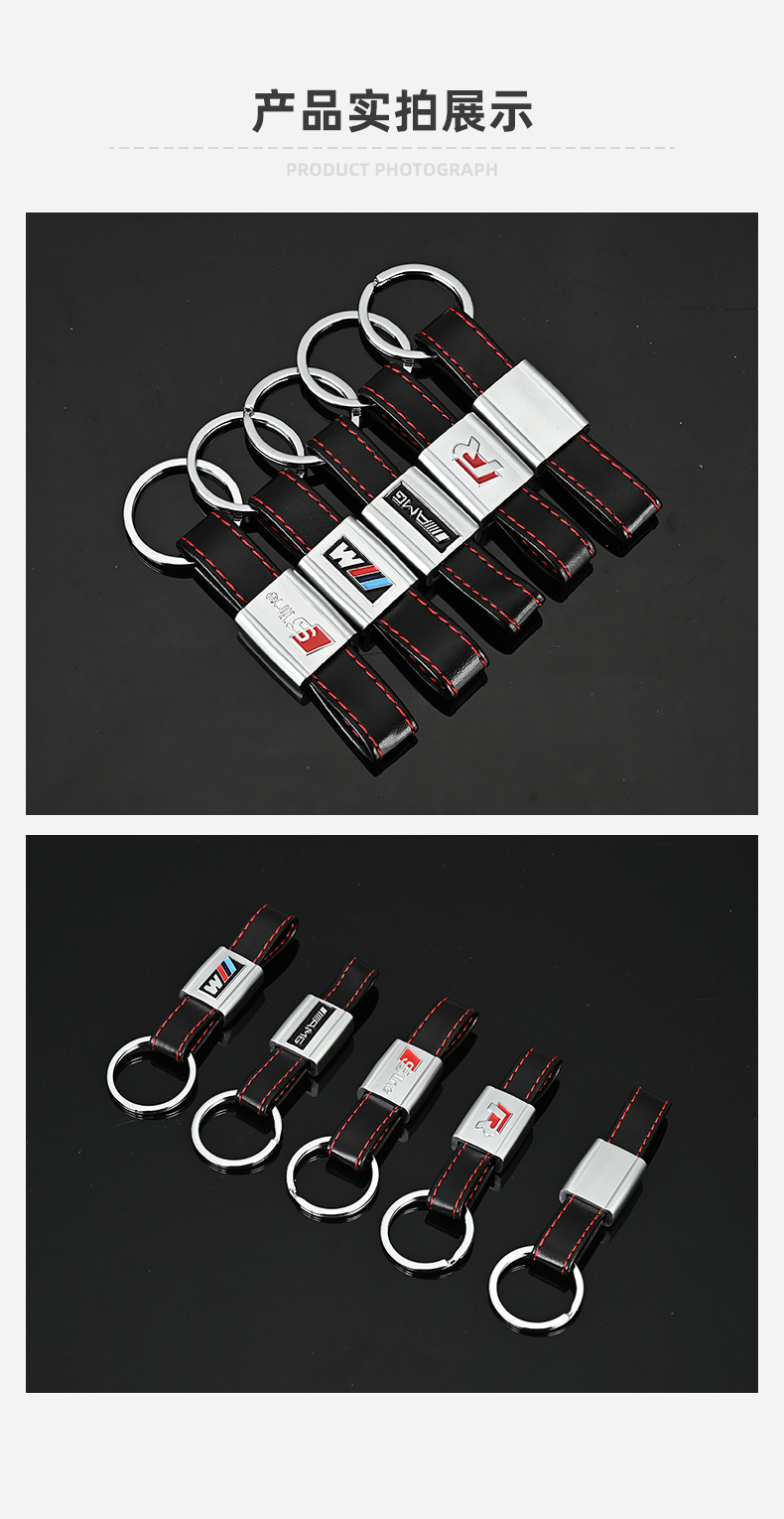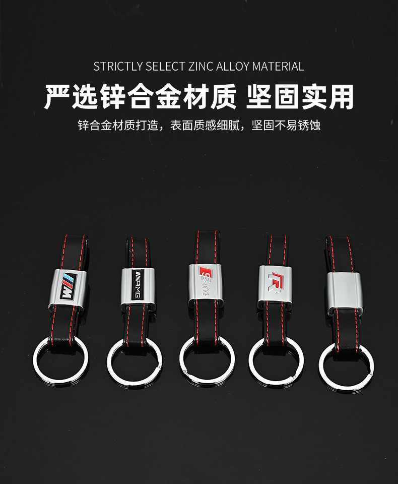 M三色运动标奥迪Sline奥迪RS奔驰AMG大众R真皮汽车车标钥匙扣挂件
