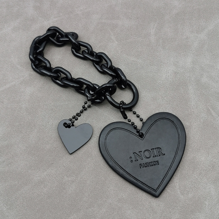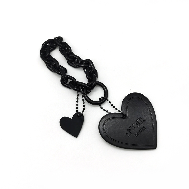 黑色爱心钥匙链皮质汽车钥匙扣链条挂饰小红书女款亚克力ins 挂件