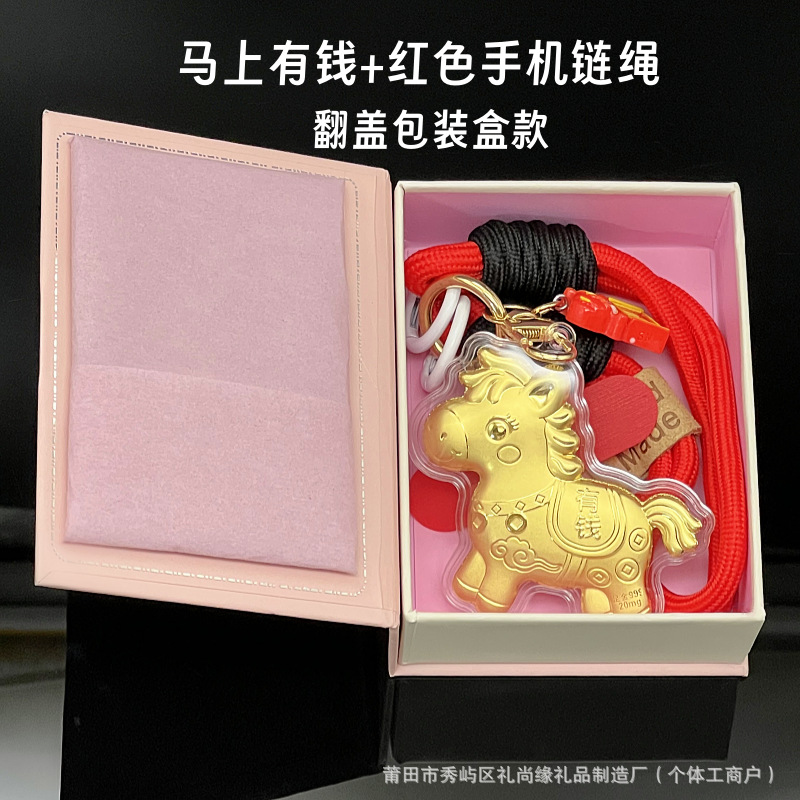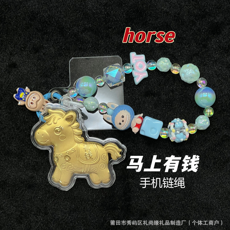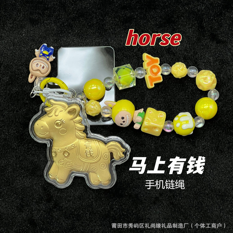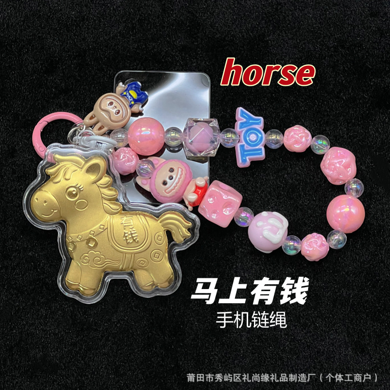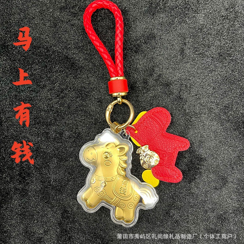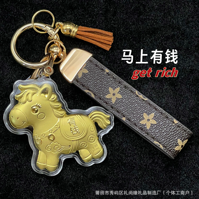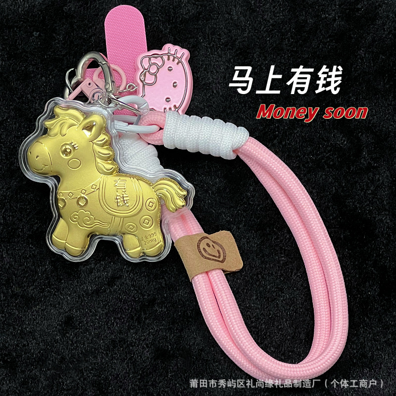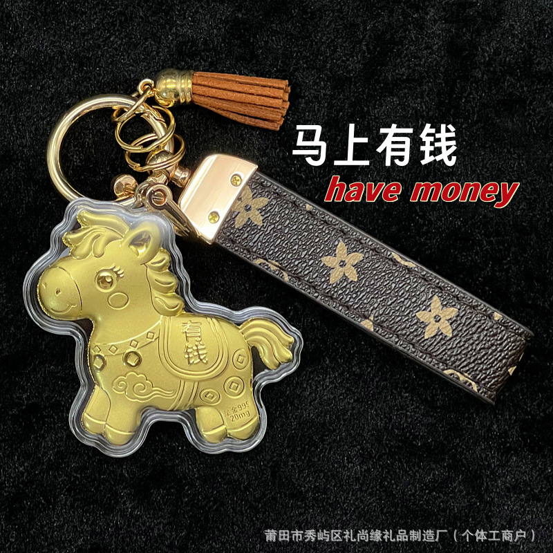 新款水贝足金马上有钱钥匙扣卡通生肖小马挂件送礼手机链饰品批发