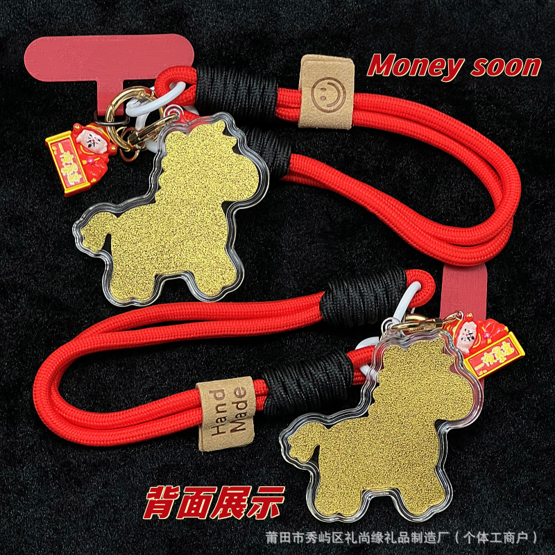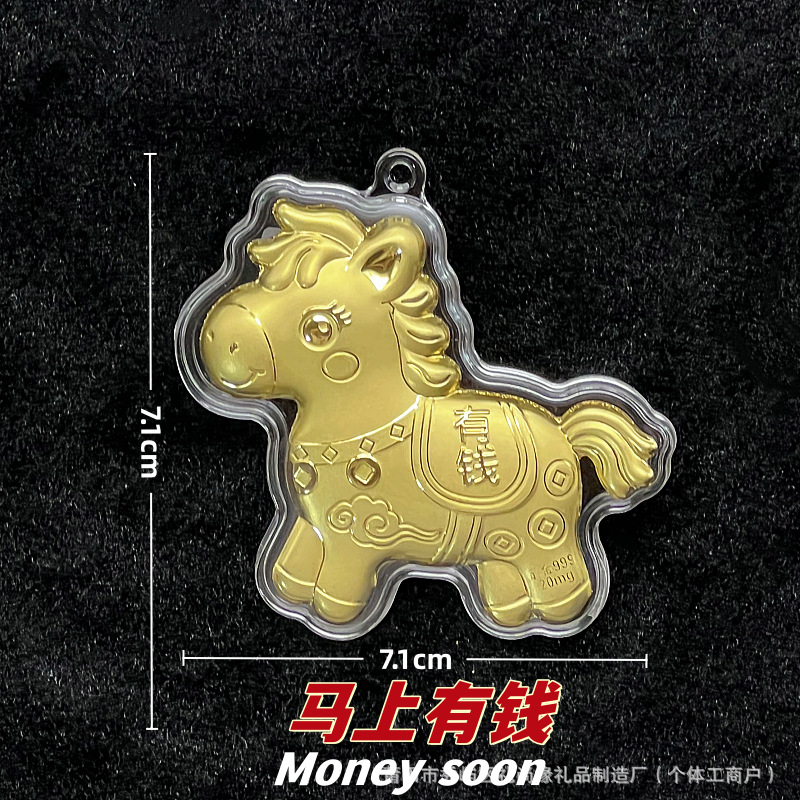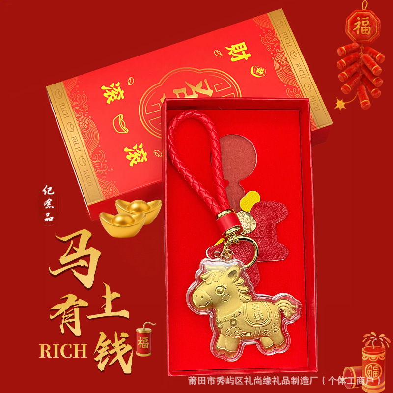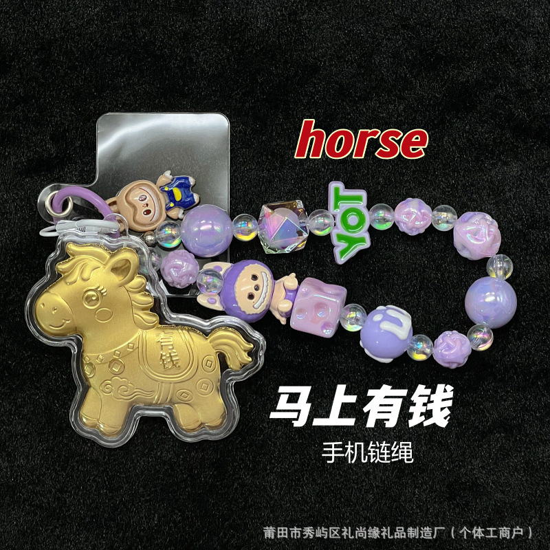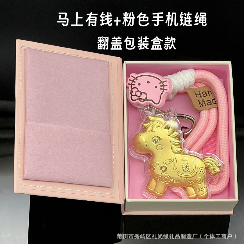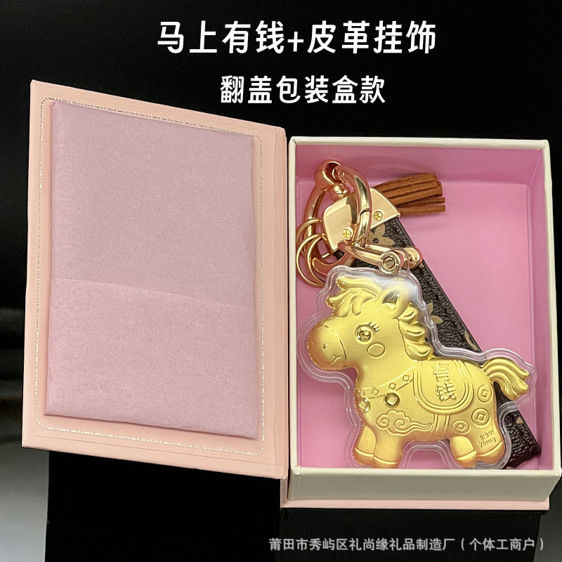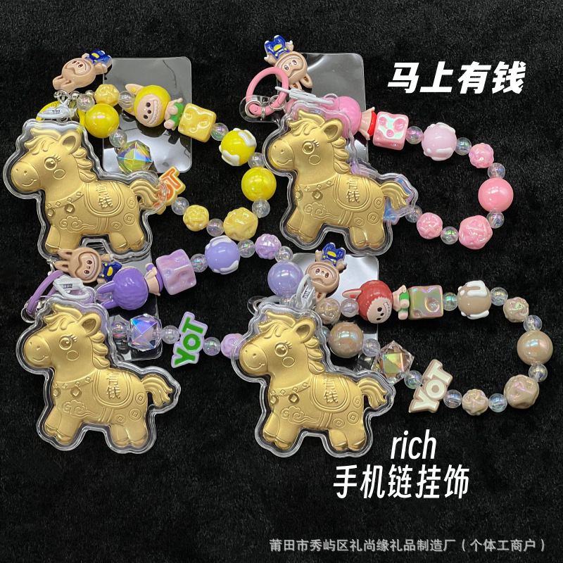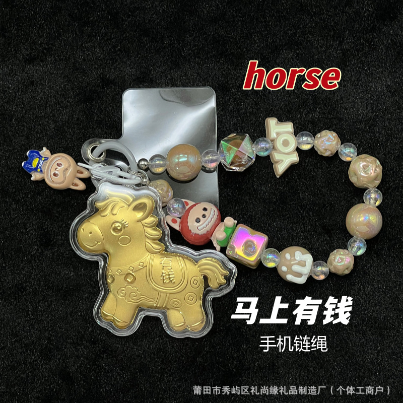 新款水贝足金马上有钱钥匙扣卡通生肖小马挂件送礼手机链饰品批发