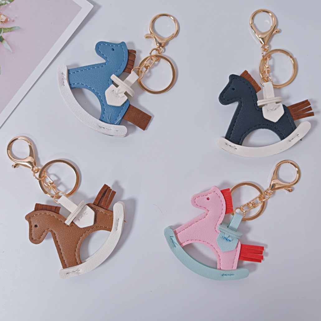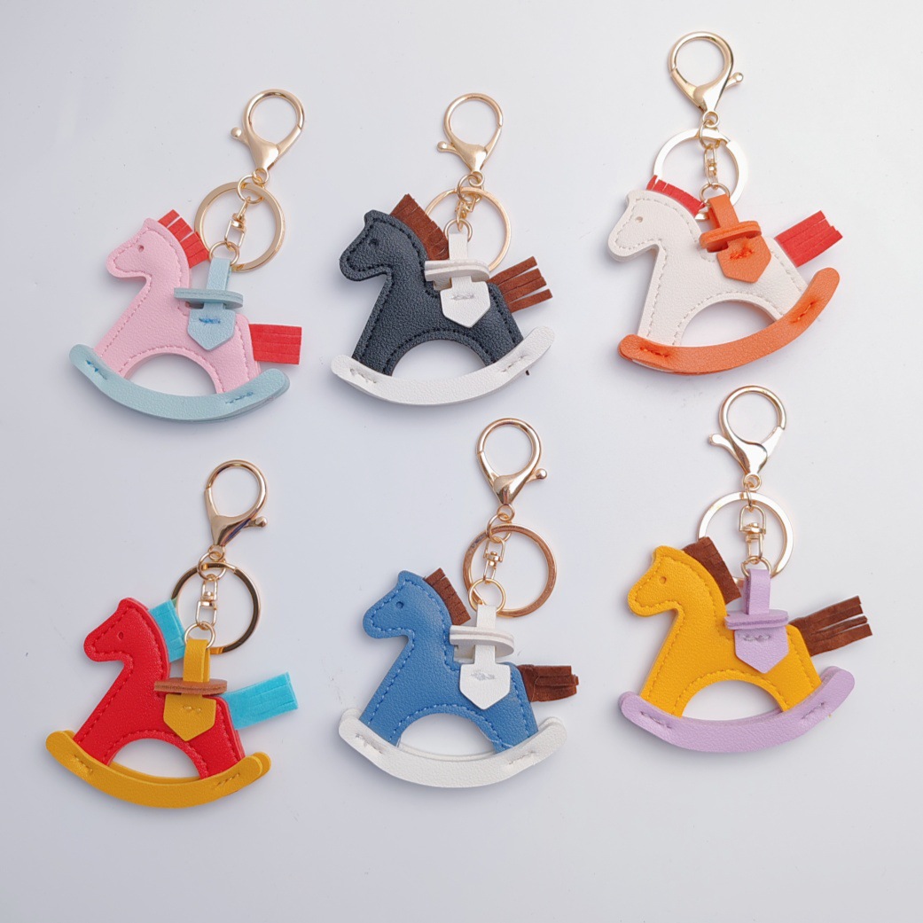 ins小马挂件手工pu绿马包包挂件钥匙扣卡通摇摇马皮质挂饰批发H家
