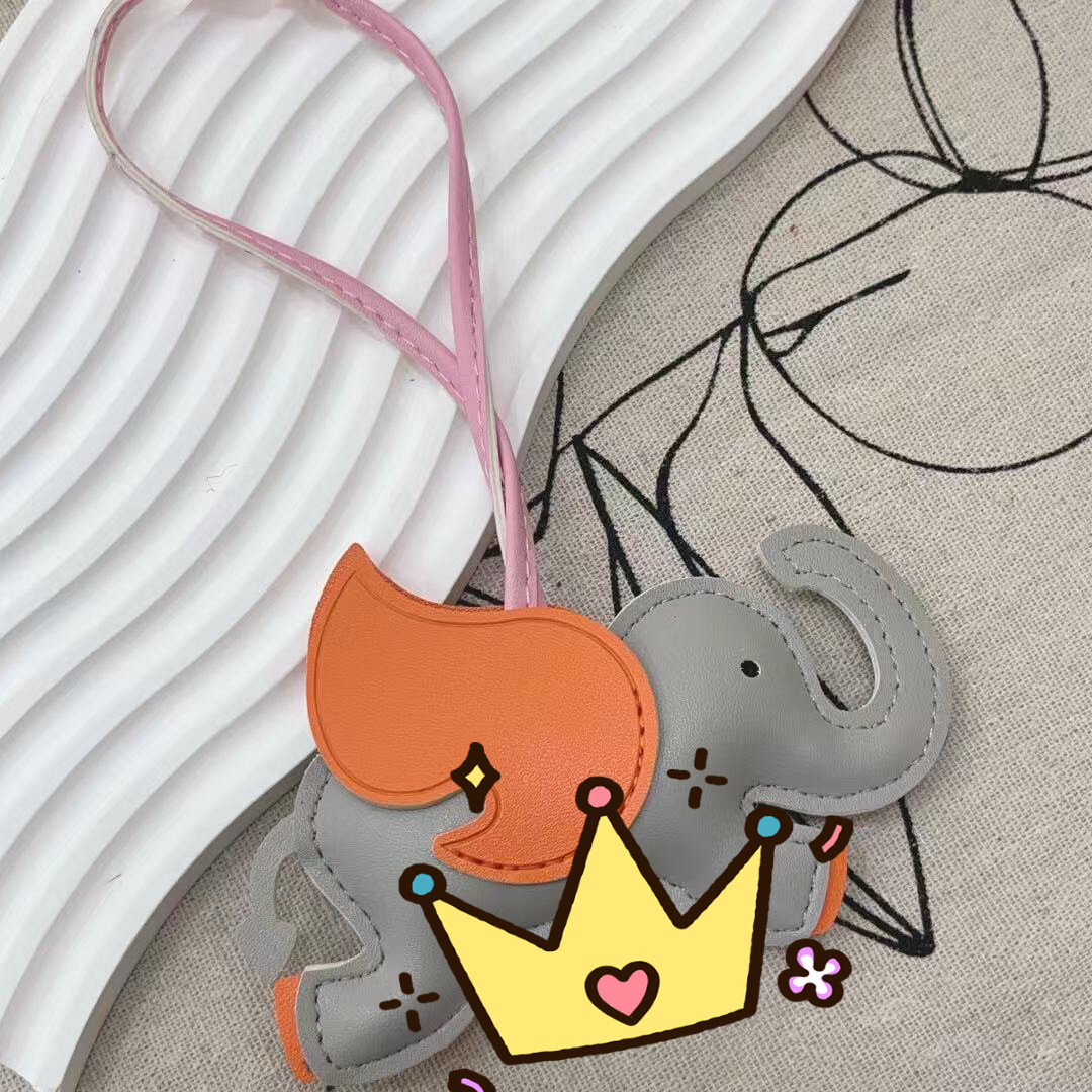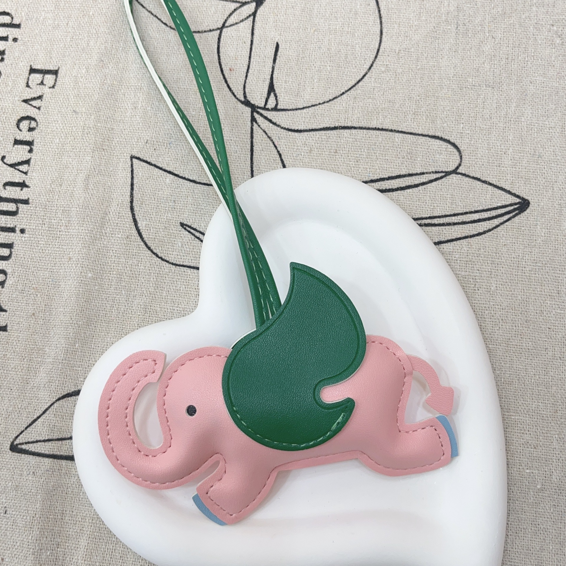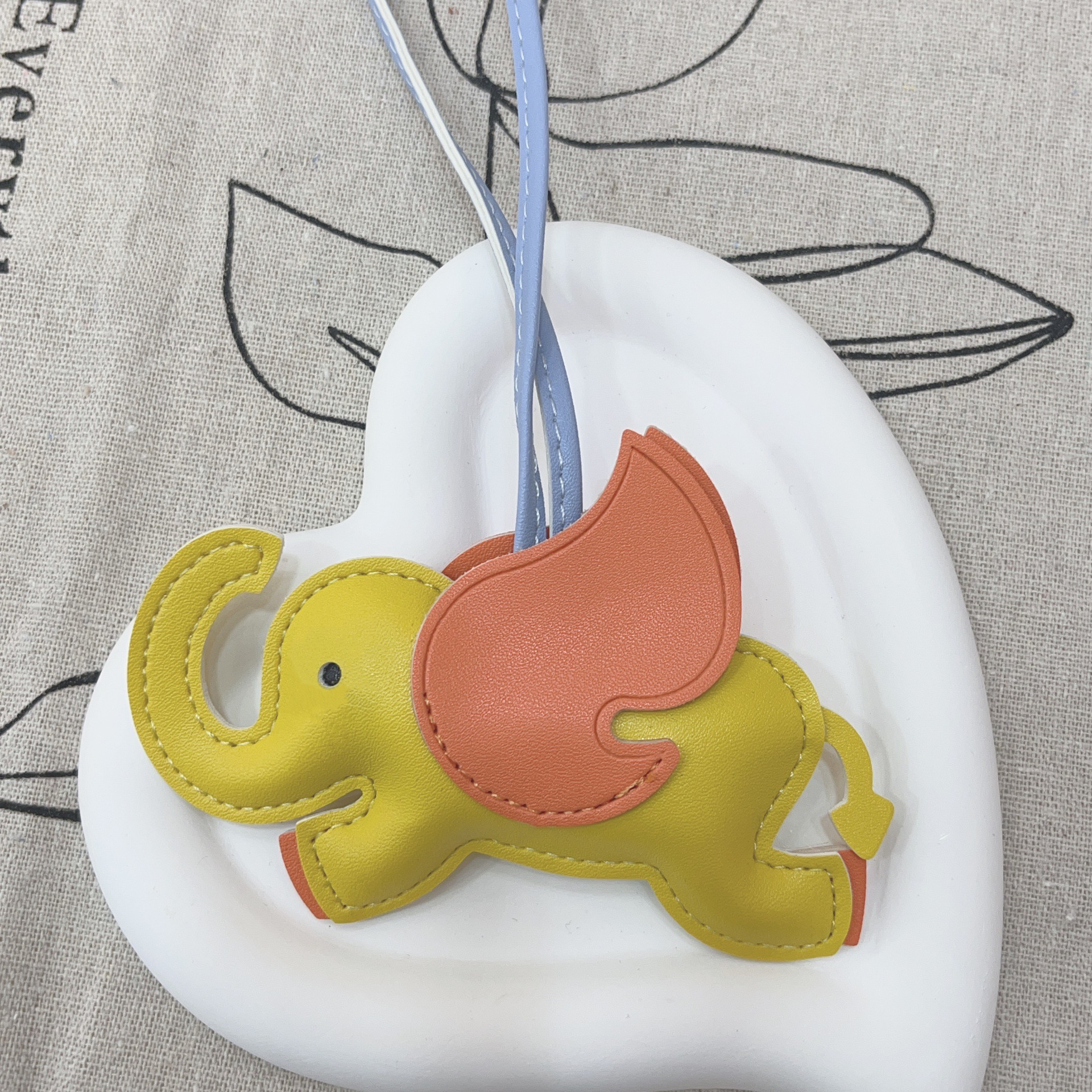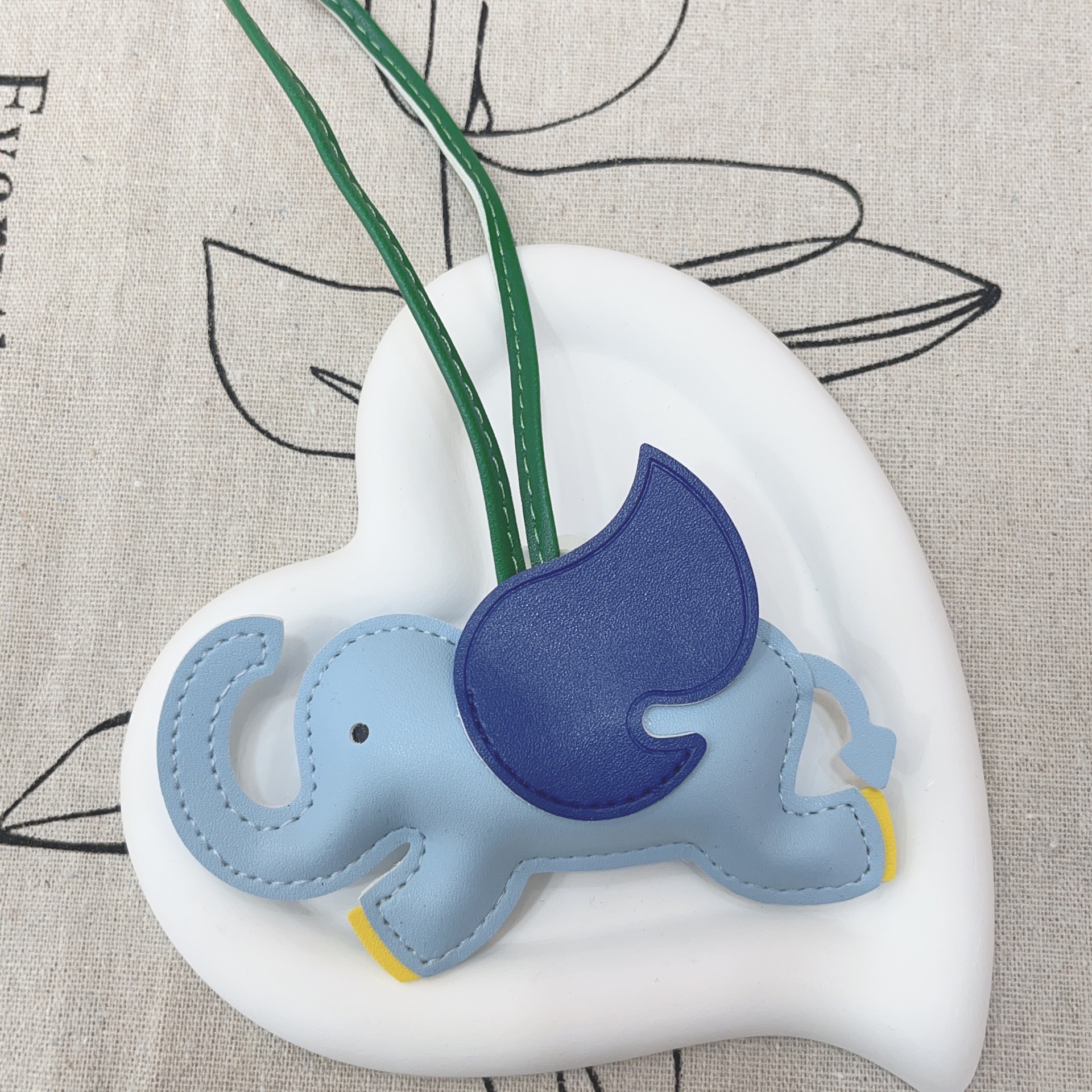 小飞象钥匙挂件小天使翅膀小象可爱包包挂饰皮革配饰