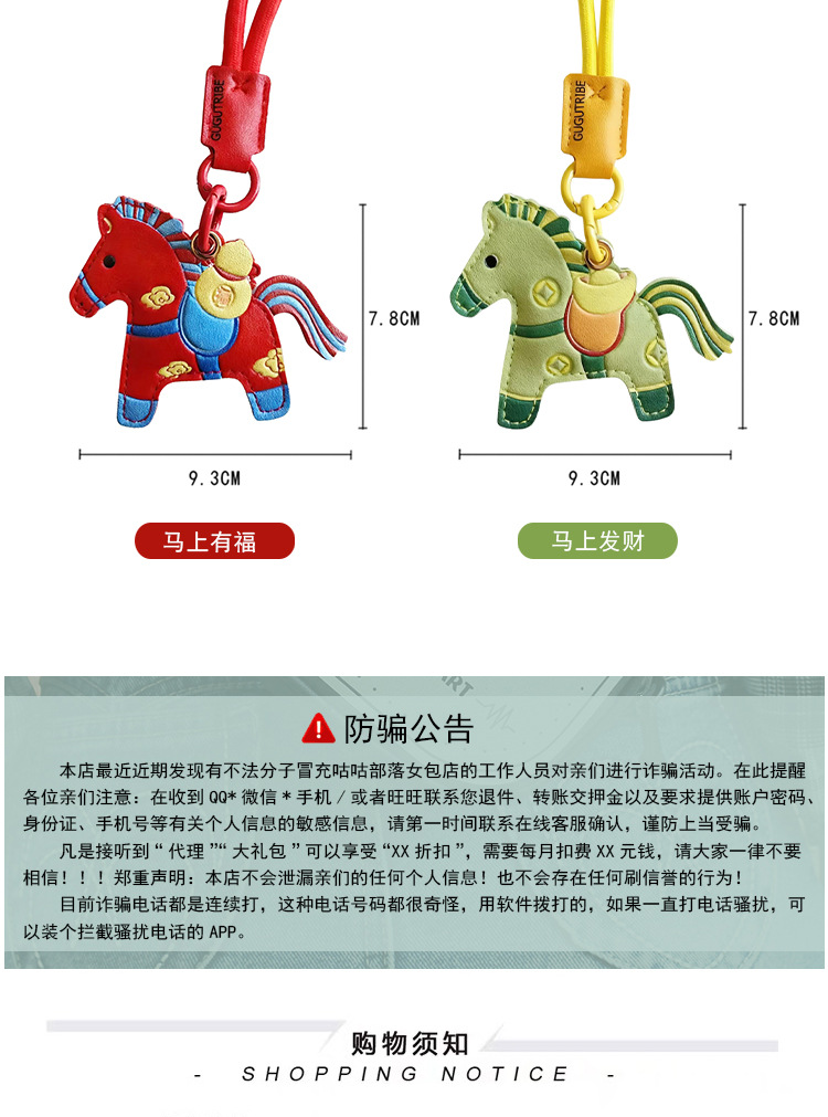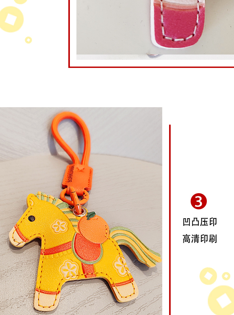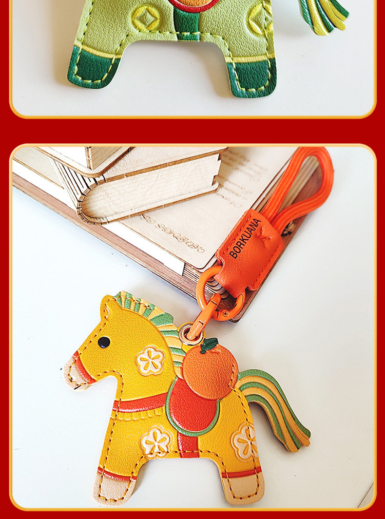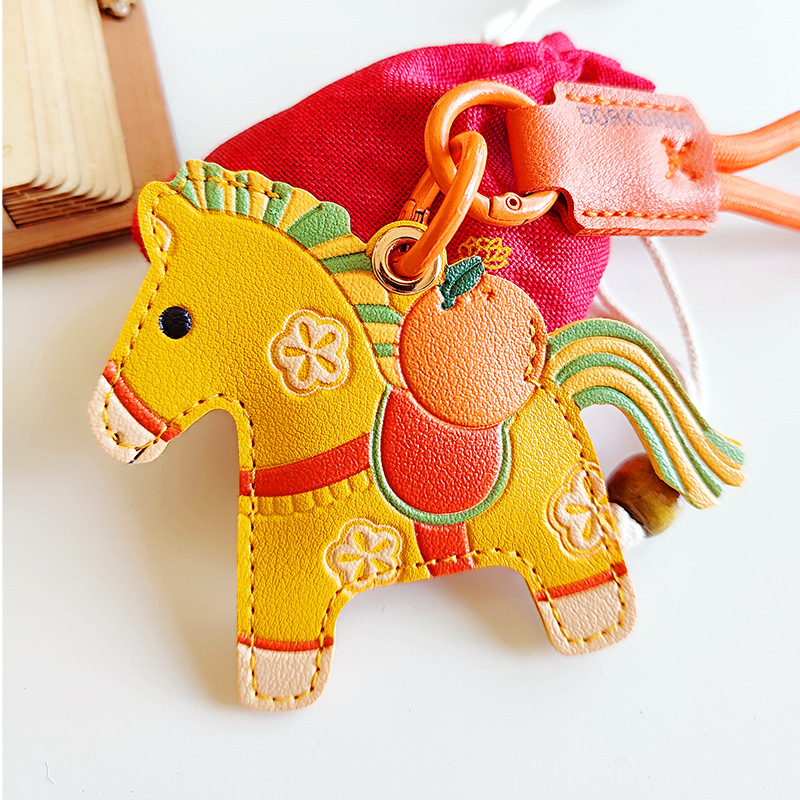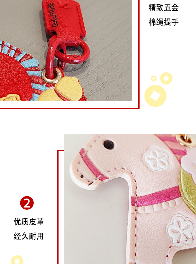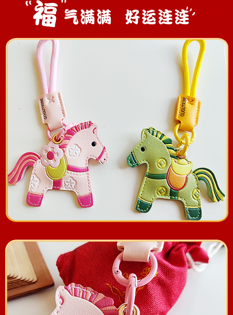 马年双面国风小马挂件pu钥匙扣门禁卡套airtag保护套包包挂饰年礼